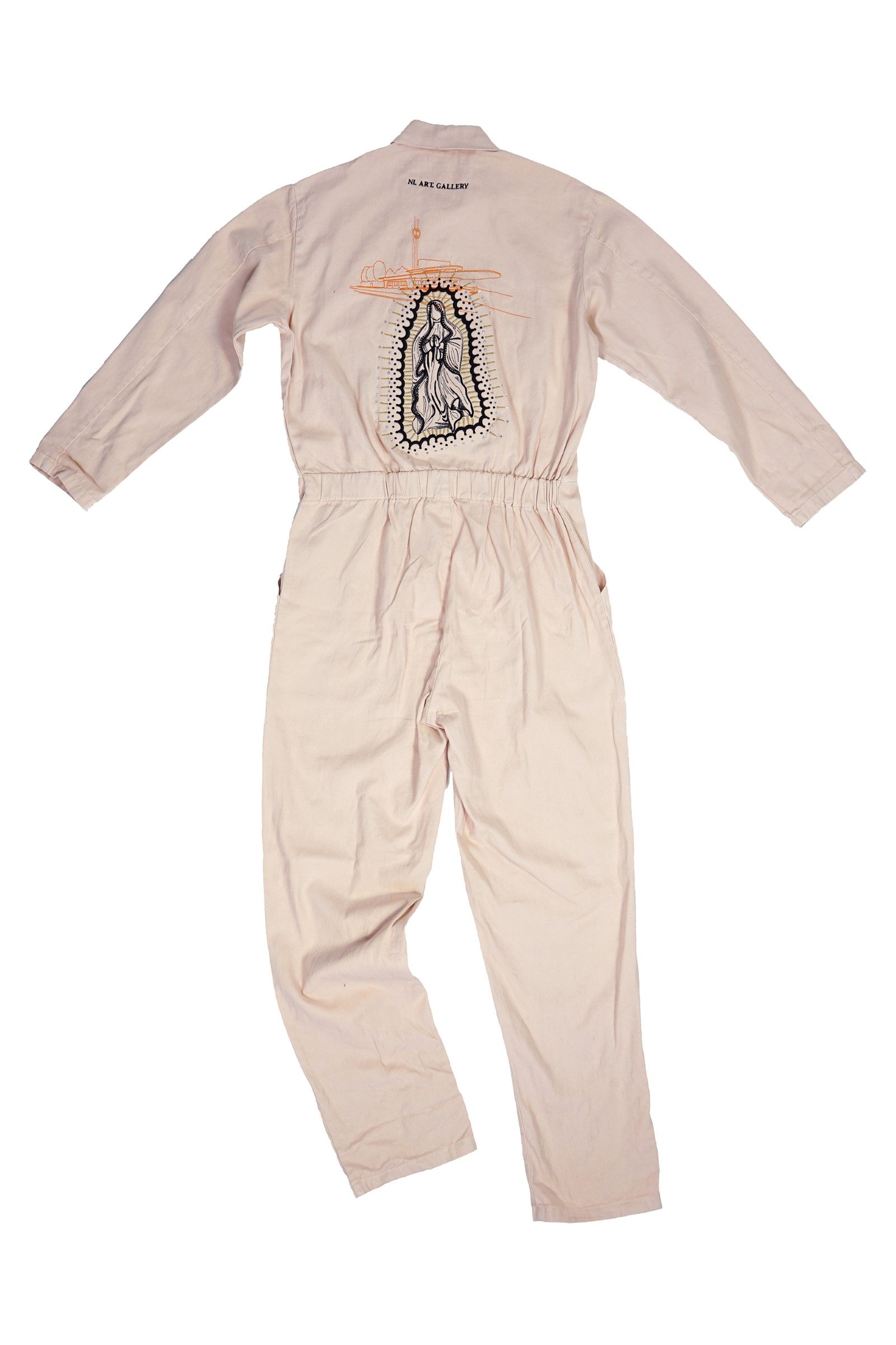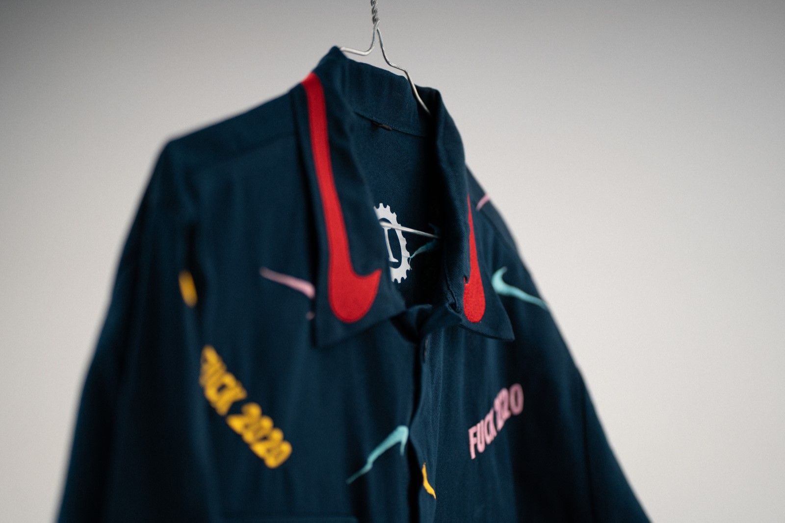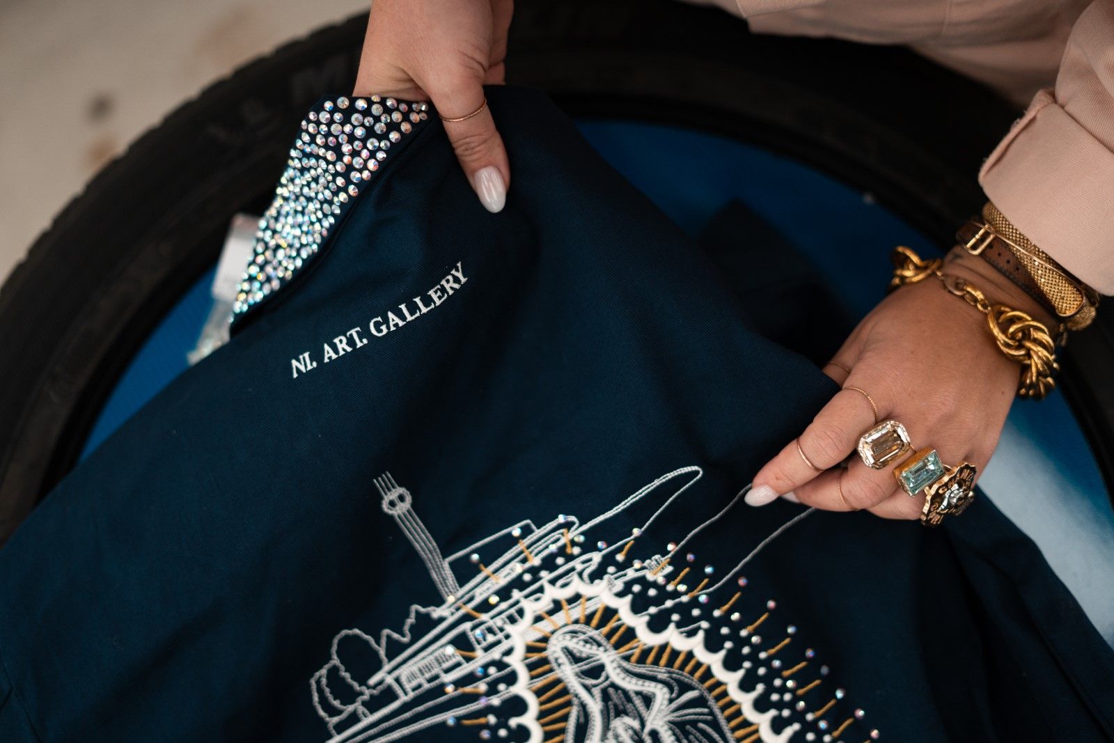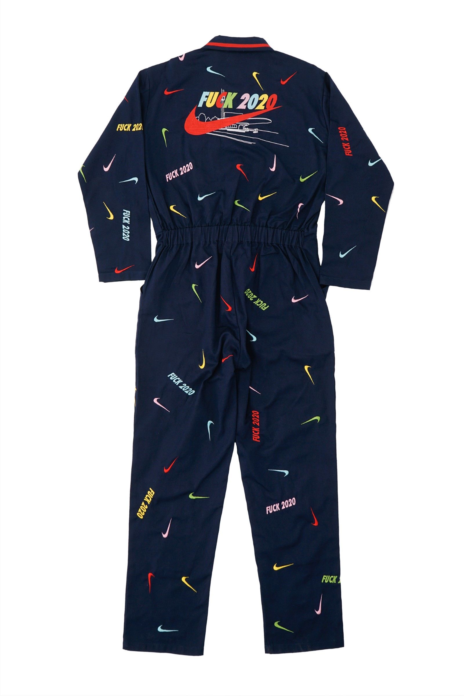 For his jumpsuit, the art director and graphic designer of Cagliari, Davide Perella, already returning from collaborations with brands such as Moschino, Nike, Neil Barrett and Alberta Ferretti, was inspired by his passion for Nike and Swoosh by adding the slogan "Fuck 2020". All the embroidery of his garment, were then made by an embroidery factory in his native Sardinia. Shoe designer and artist Nicoletta Saracco, on the other hand, has brought a more committed imprint to her work, decorating the jumpsuit with the logo and artwork of NI.ART.GALLERY, the creative project she started and directed to tell about her fight against breast cancer and raise funds for the IEO Foundation (European Institute of Oncology). Through the embroidery of the Madonna, symbol of NI.ART.GALLERY, and the logo of her project on the back, Nicoletta brought together the imagination of her world and that of Garage Italia.