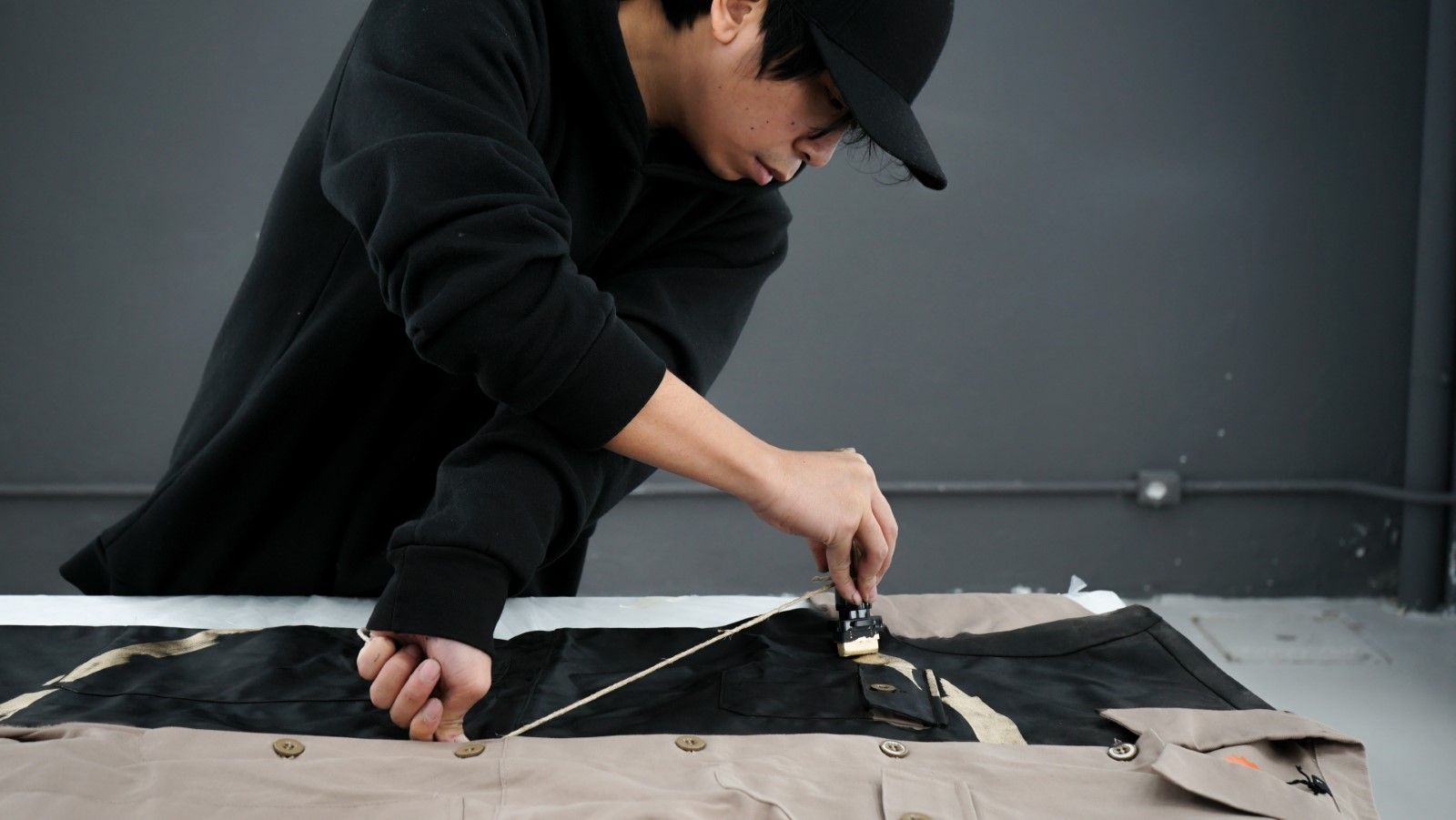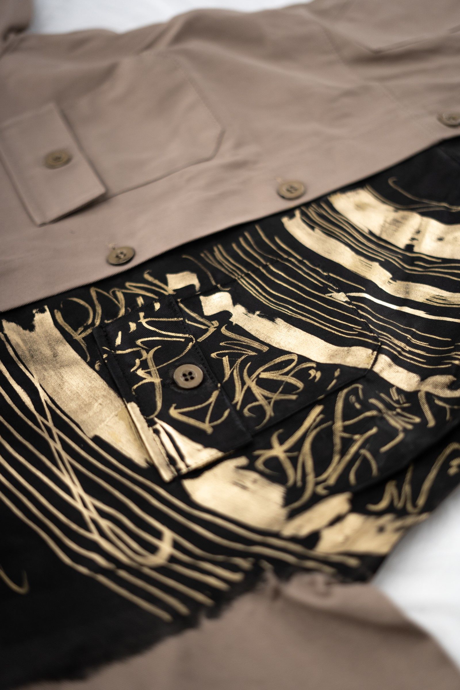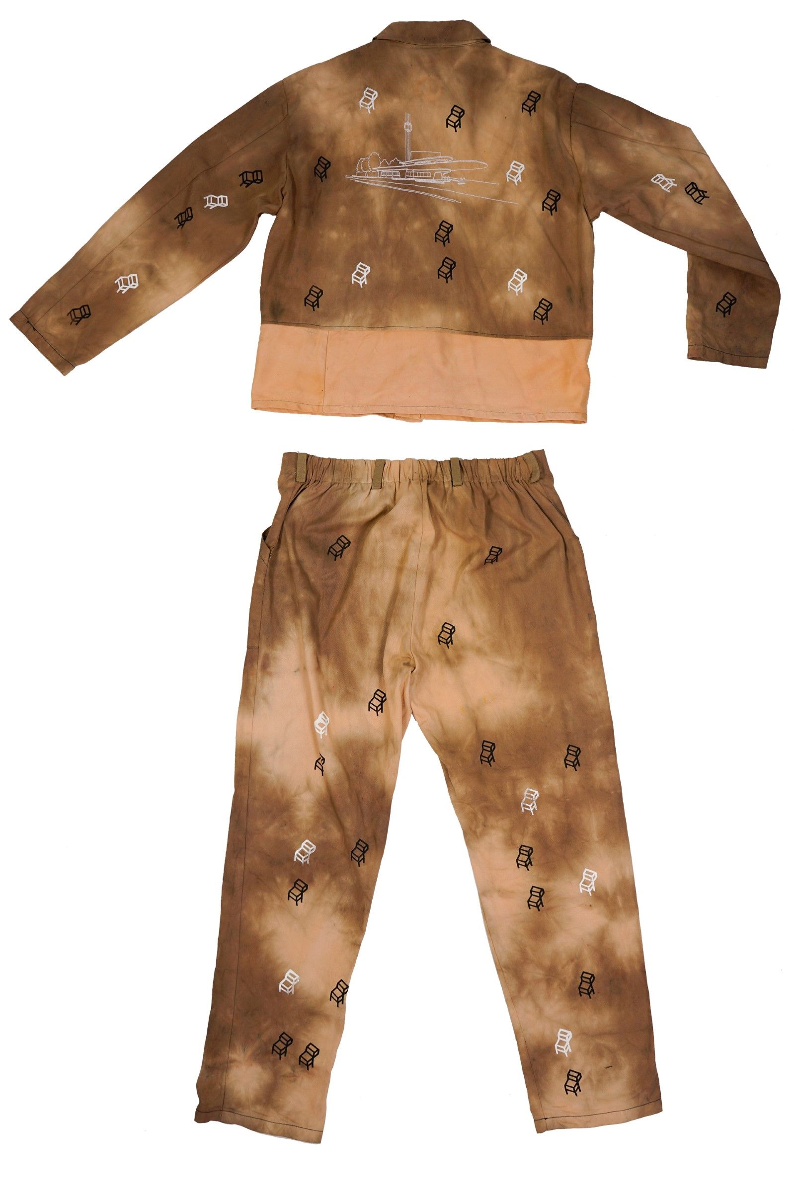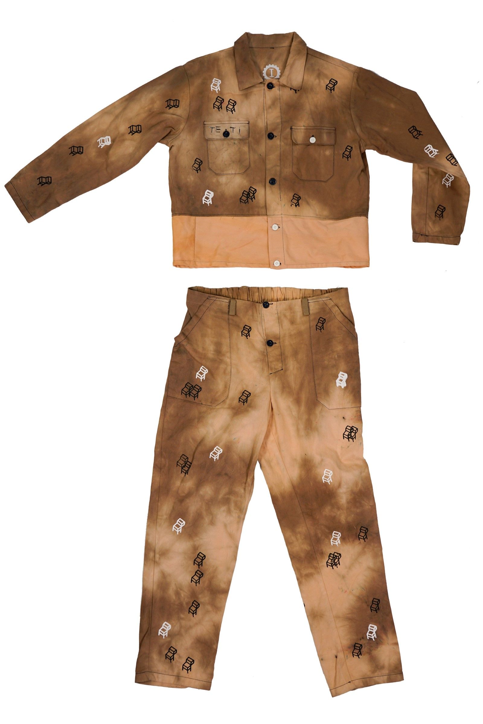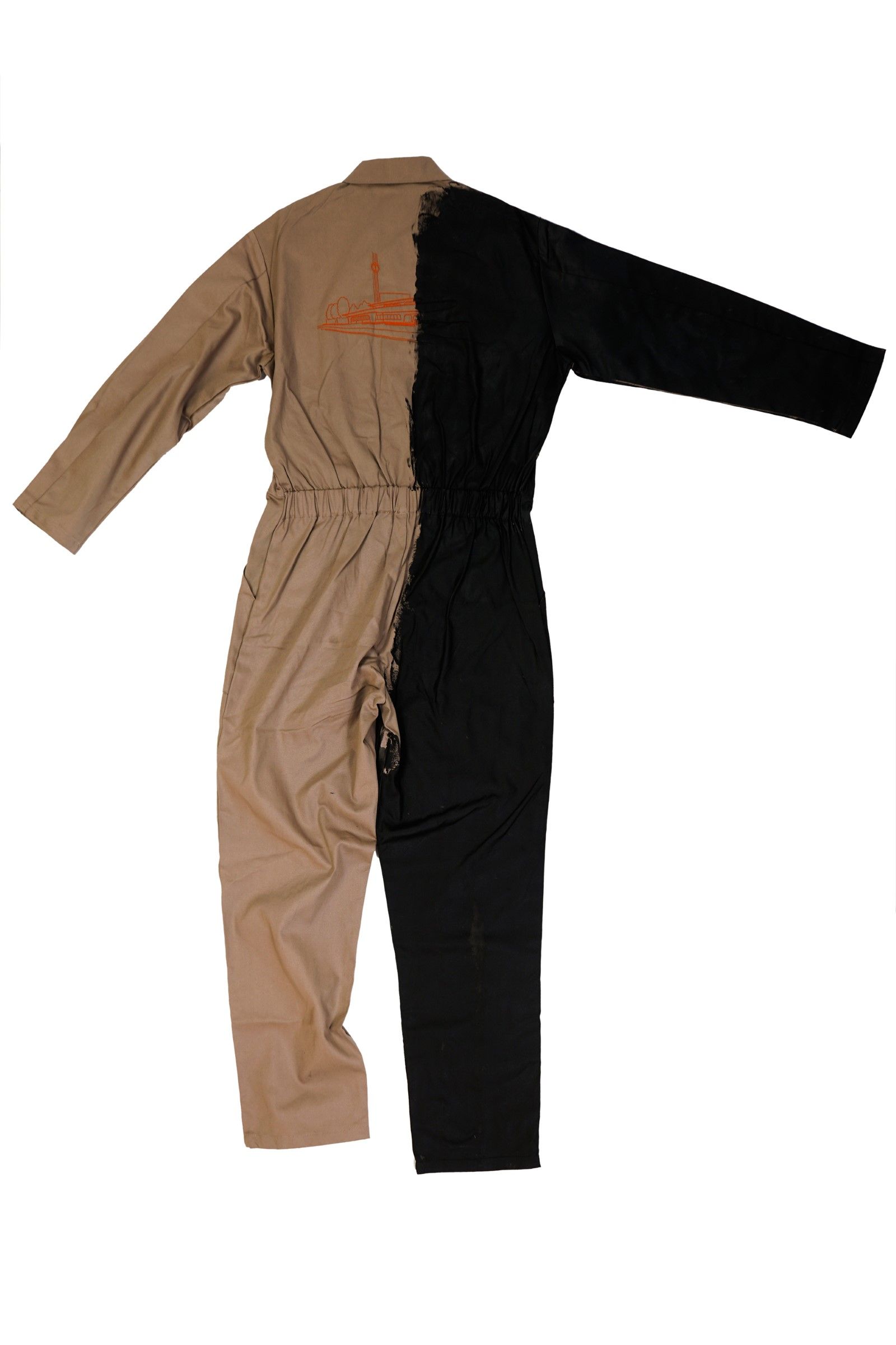 The self-taught artist Matteo Piccolo, aka Teti, instead brought to the jumpsuit his DIY aesthetic, which is expressed both through his abstract and geometric lines, which he called Axonometry, decorating the garment with further details such as unusually shaped buttons, cut-outs and fabric dyes. Finally, the Filipino artist Patrick Eduardo, whose work focuses on a redefinition of the concept of artistic calligraphy, used a base of black acrylic and gold details to convey on the jumpsuit the aesthetics of his paintings, cutting "in half" the garment that is divided into an ornate section and another essential in contrast to each other.
