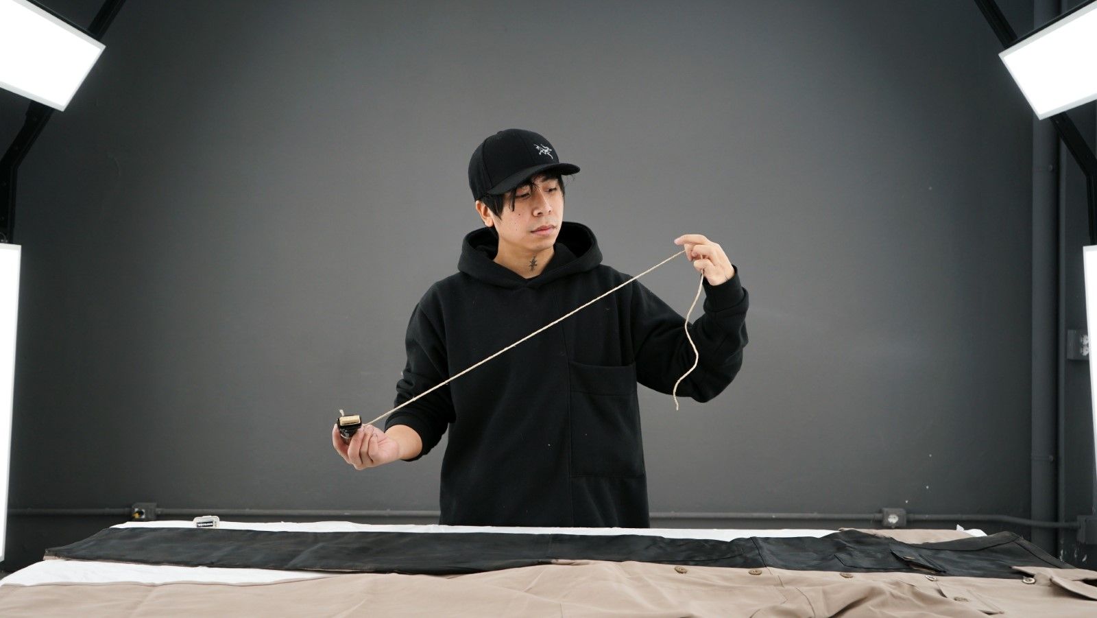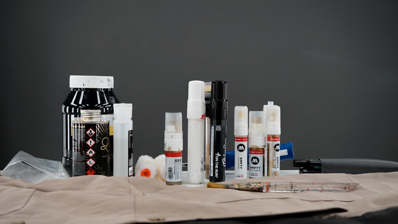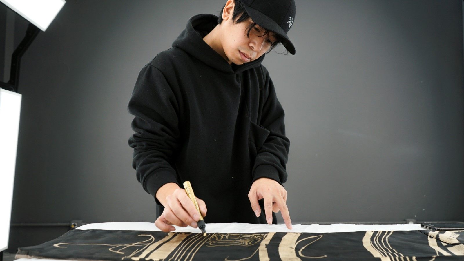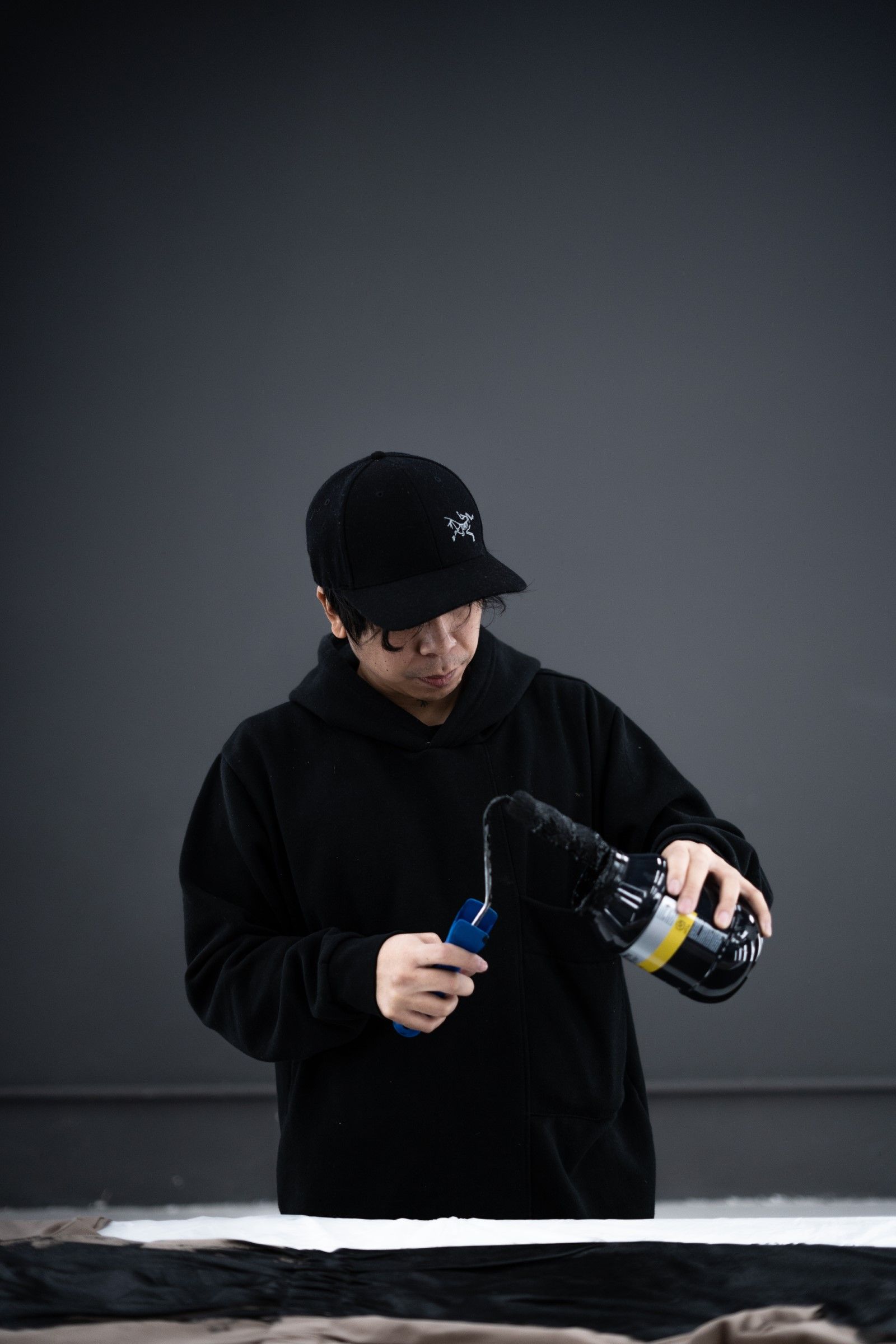 The self-taught artist Matteo Piccolo, aka Teti, instead brought to the jumpsuit his DIY aesthetic, which is expressed both through his abstract and geometric lines, which he called Axonometry, decorating the garment with further details such as unusually shaped buttons, cut-outs and fabric dyes. Finally, the Filipino artist Patrick Eduardo, whose work focuses on a redefinition of the concept of artistic calligraphy, used a base of black acrylic and gold details to convey on the jumpsuit the aesthetics of his paintings, cutting "in half" the garment that is divided into an ornate section and another essential in contrast to each other.
