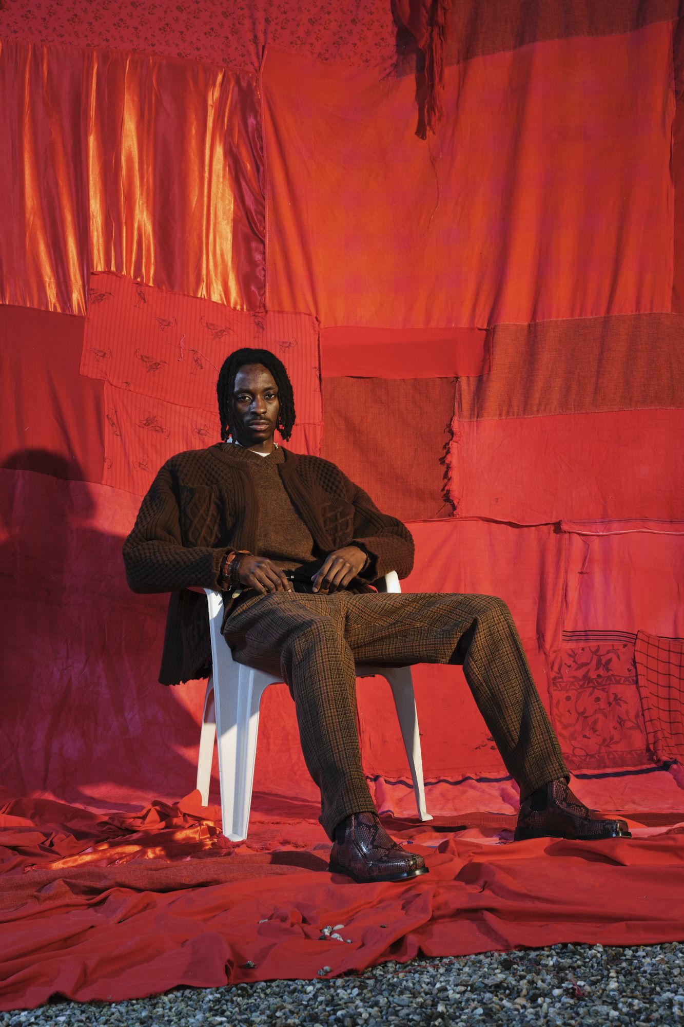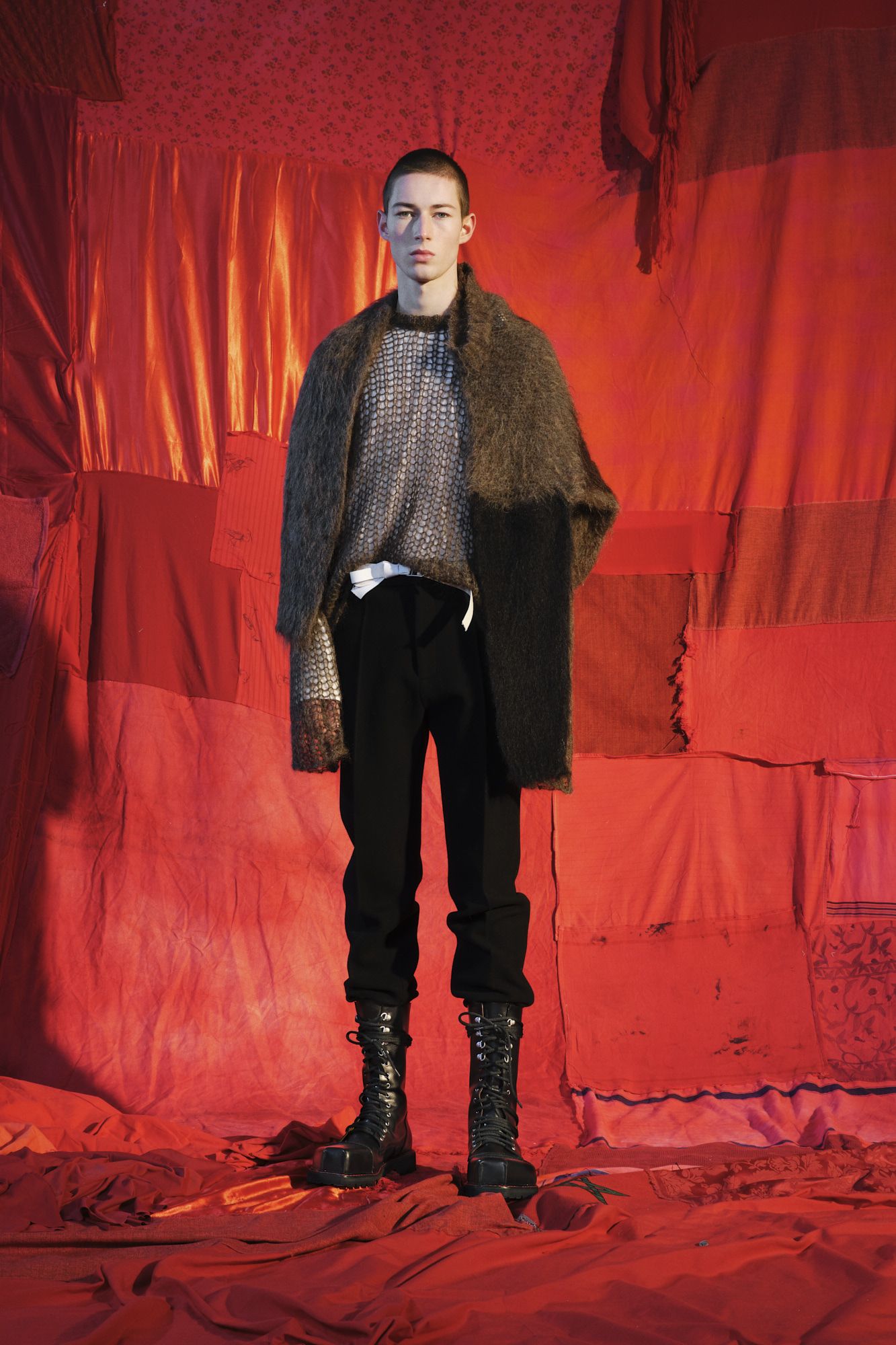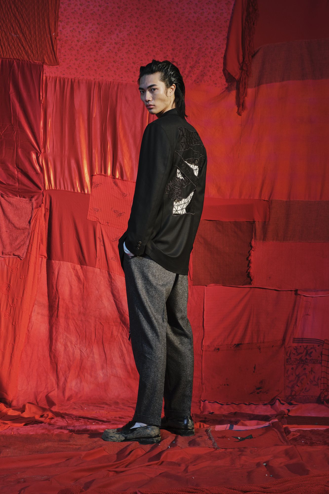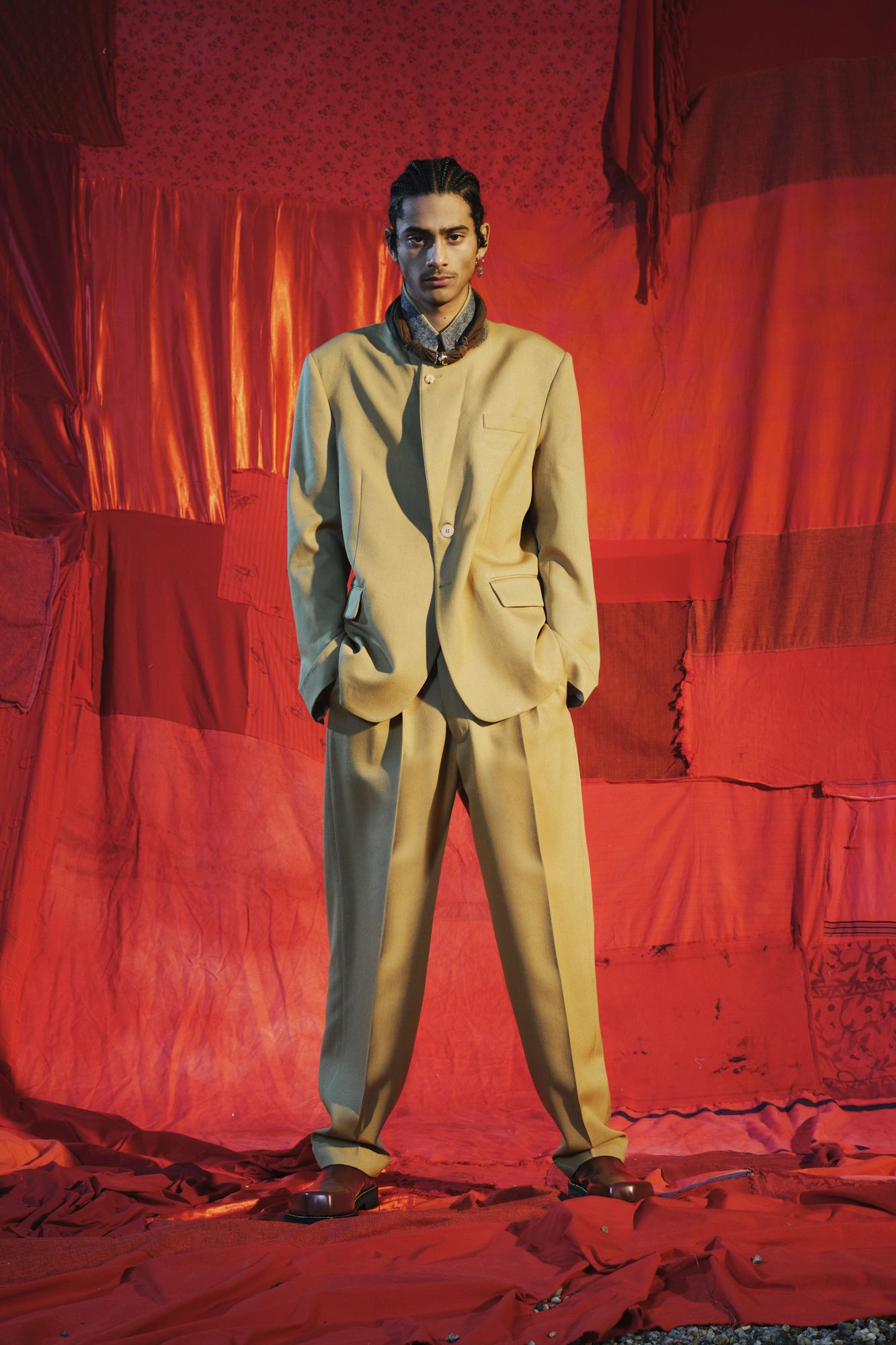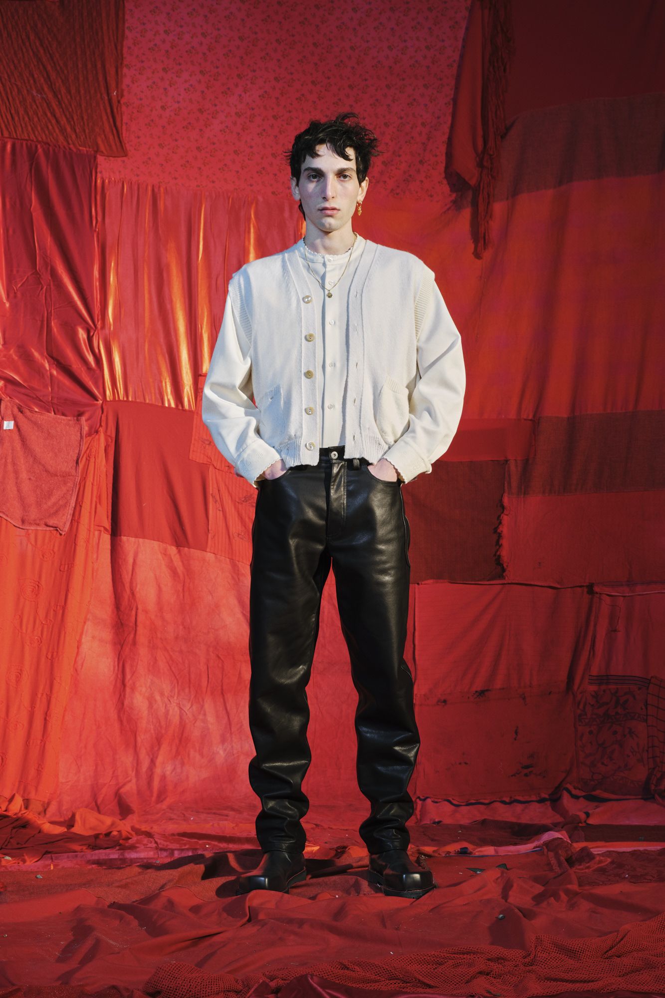 The range of garments is narrow and concise – a collection that wants to evoke pavese's lyrics, suspended between mythology and peasant civilization, but also Le Belle Bandiere di Pasolini and class struggles. A collection therefore on which, in the same words as the designer, «a particular patina, symptom of the time passing, sedimented in the Magliano wardrobe», symbolized by tweeds and almost archaic, durable fabrics, reminiscent of ancient work clothes. Not for this reason, however, Luca Magliano has renounced his usual irony and his innuendos, inserting in the cast of his characters the "Cruiser" and the "Frocialist" alongside workers and peasants, the punk group CCCP, the memories of the writer Yukio Mishima and the activist Angela Davis.