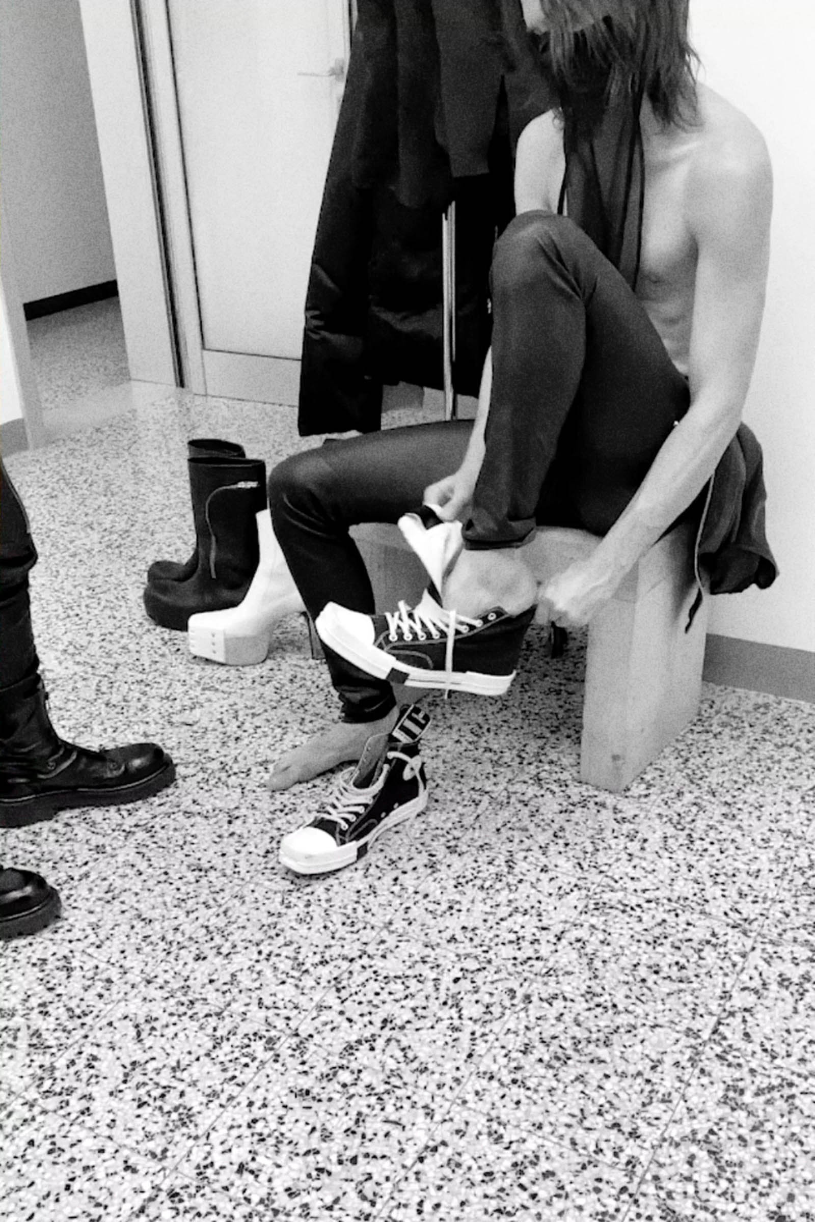 The absolute protagonist, however, was Rick Owens, who after paying homage to Converse aesthetics for years with his Ramones has finally closed the circle by announcing a collaboration with the American brand. While remaining true to Owen's aesthetic, the TurboDrk will be available for $170. Staying on the collabo theme, Wales Bonner gave a taste of her next sneaker created with adidas, while UNDERCOVER unveiled two new Nike Dunk High colourways characterized by the Chaos and Gleichgewicht lettering on the back of the sneaker.