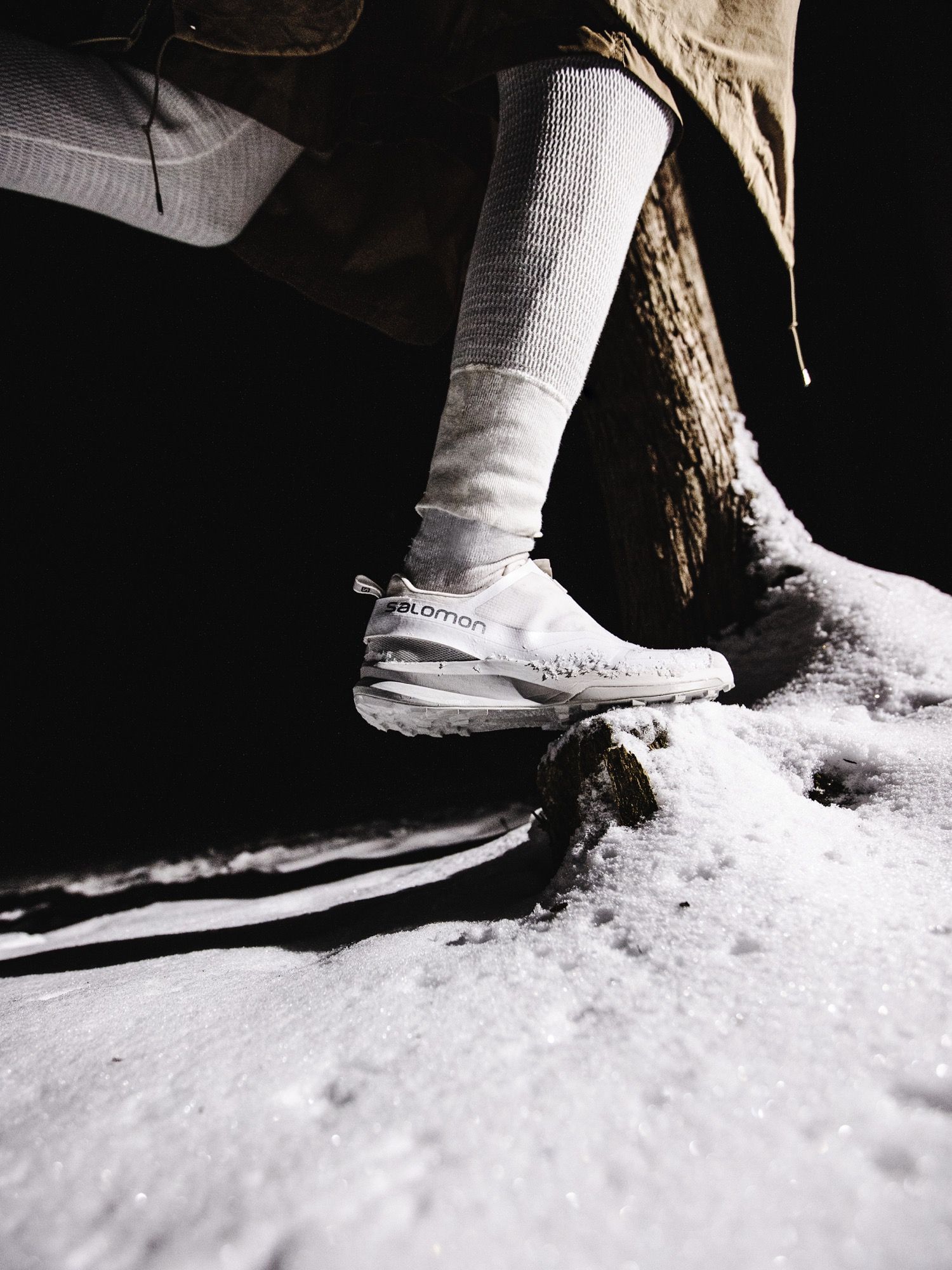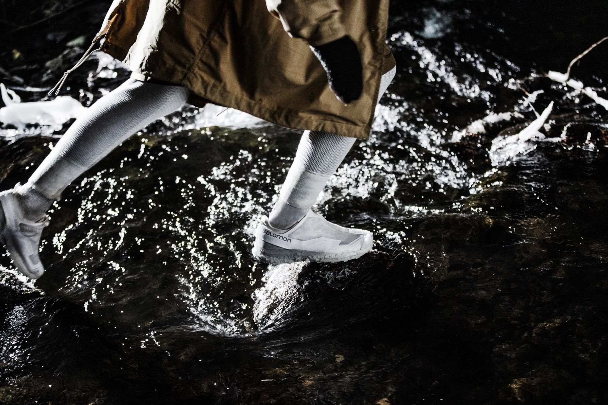 Fumito Ganryu's luxury approach, which has always created an aesthetic that blends the urban environment with nature, meets Salomon's sporting and fashion heritage.