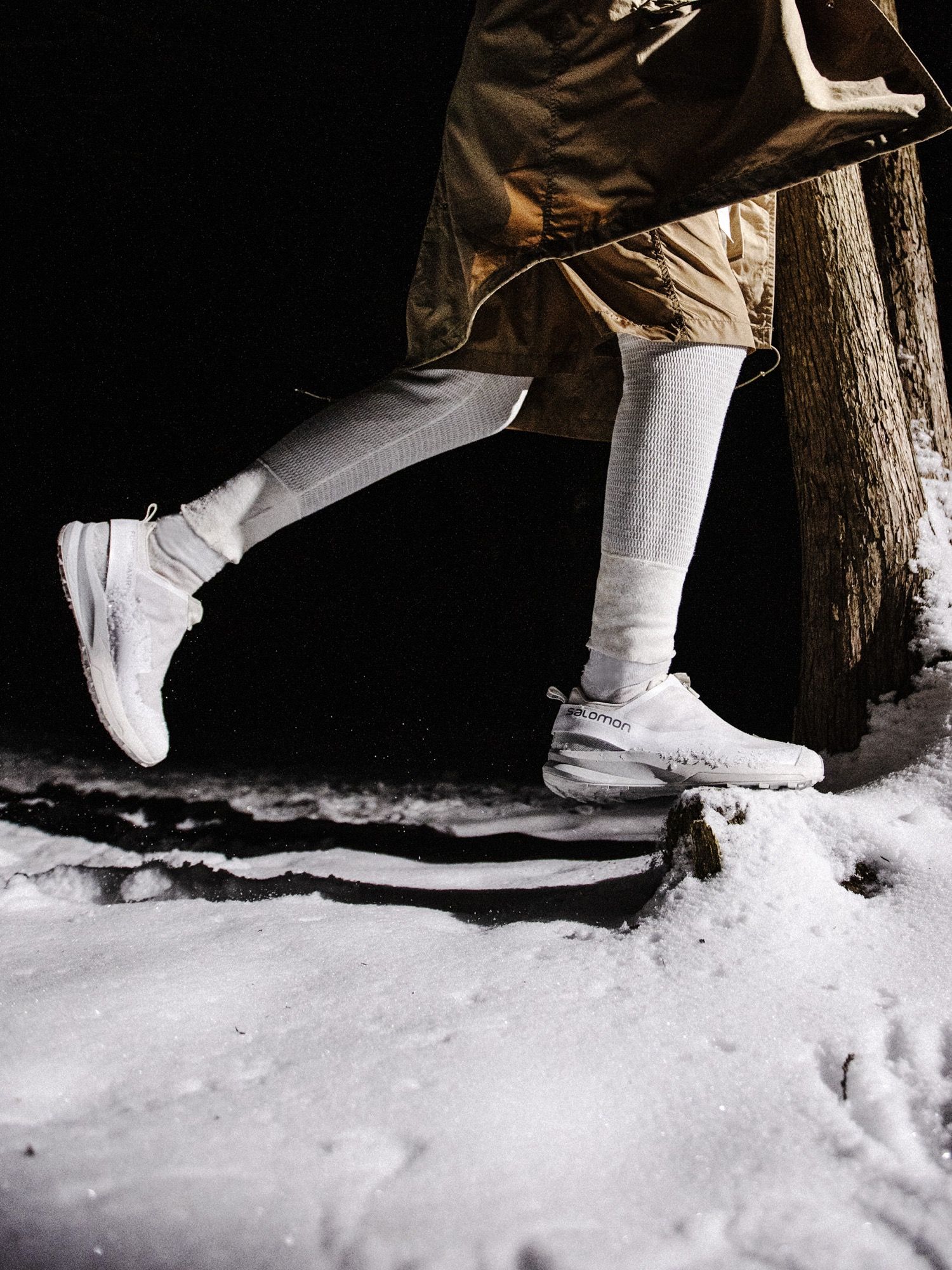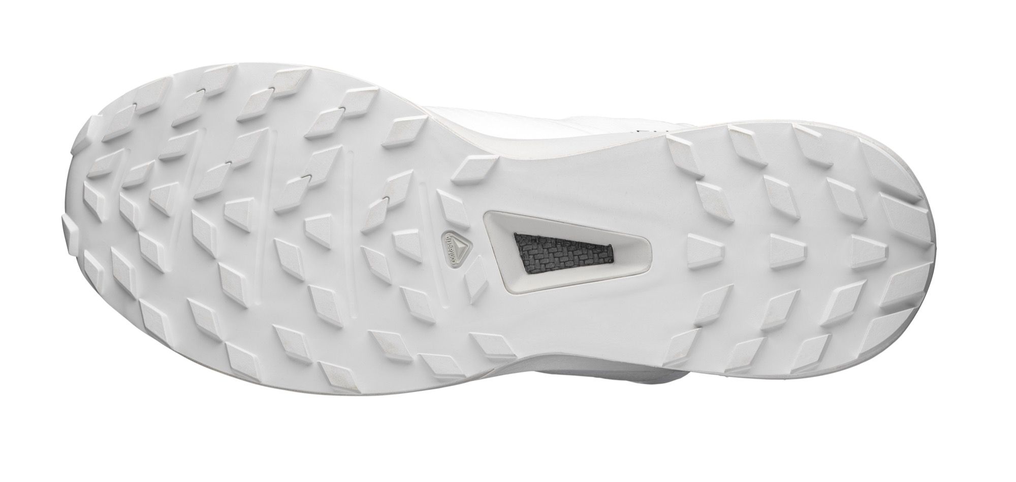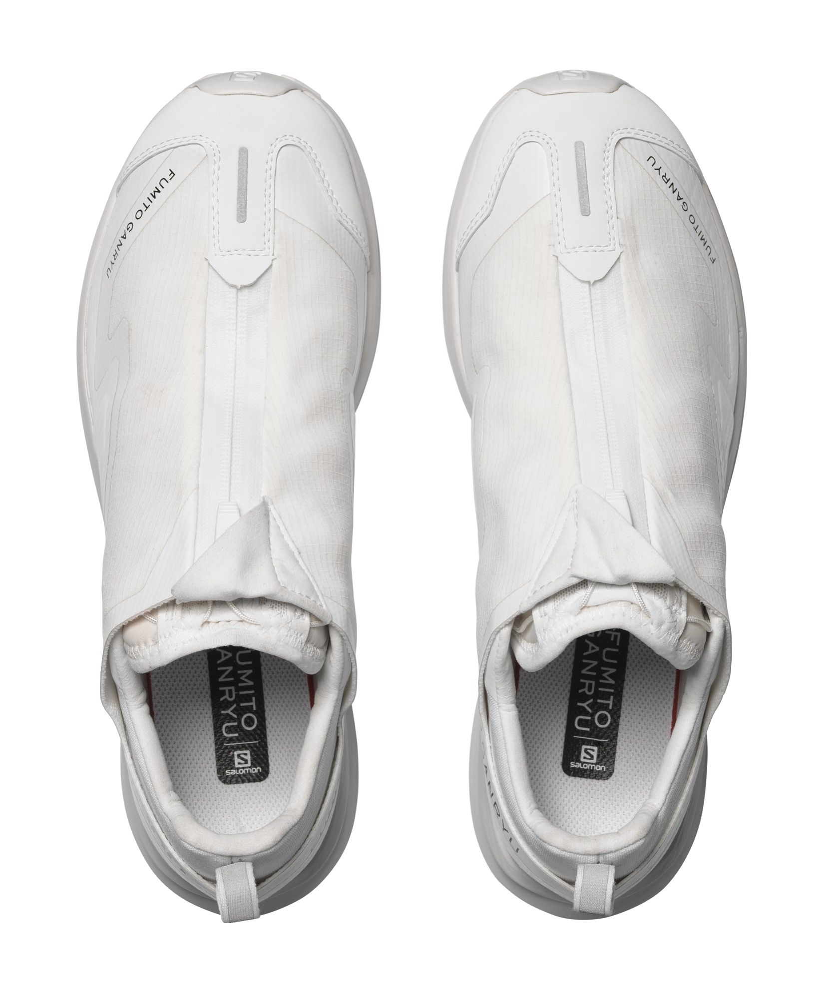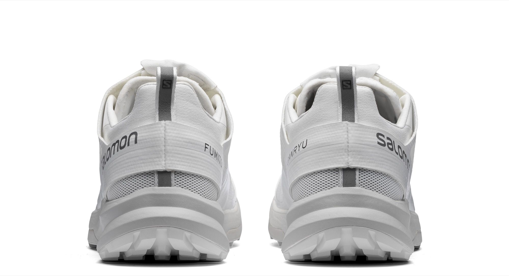 The ULTRA sneaker is characterized by Salomon's most innovative technology, devoted to comfort, quality and designed for long-distance running while embracing the needs of sportsmen who prefer outdoor runs and the more aesthetic needs of those who live in the urban environment. The silhouette is also enriched by a total coverage against rain, which makes it waterproof and usable in any climatic condition. The sneaker takes on a minimal and clean aura thanks to the total white look, interspersed only with the Fumito Ganryu logo on the heel and in the inner sole.