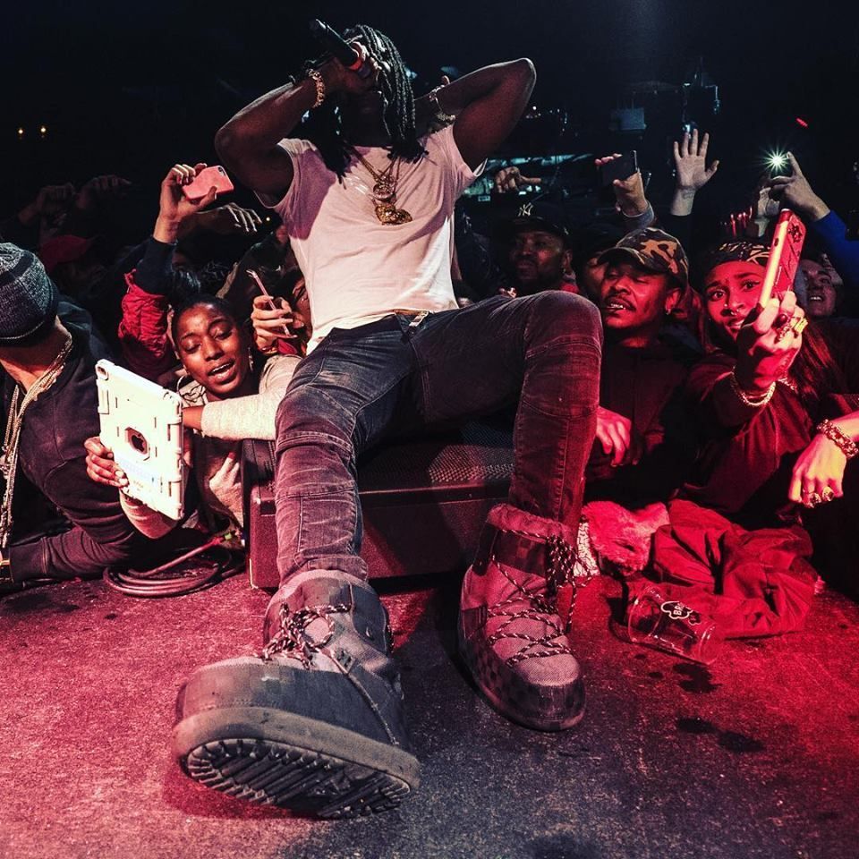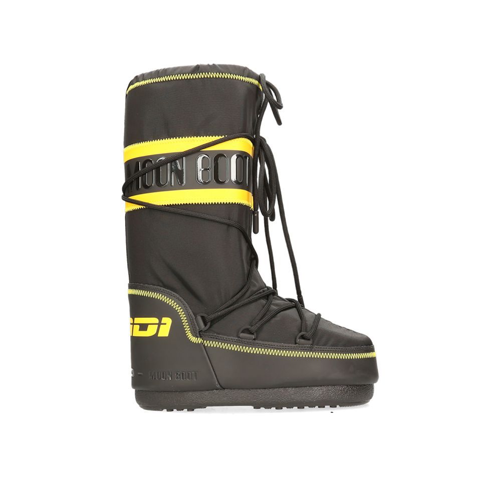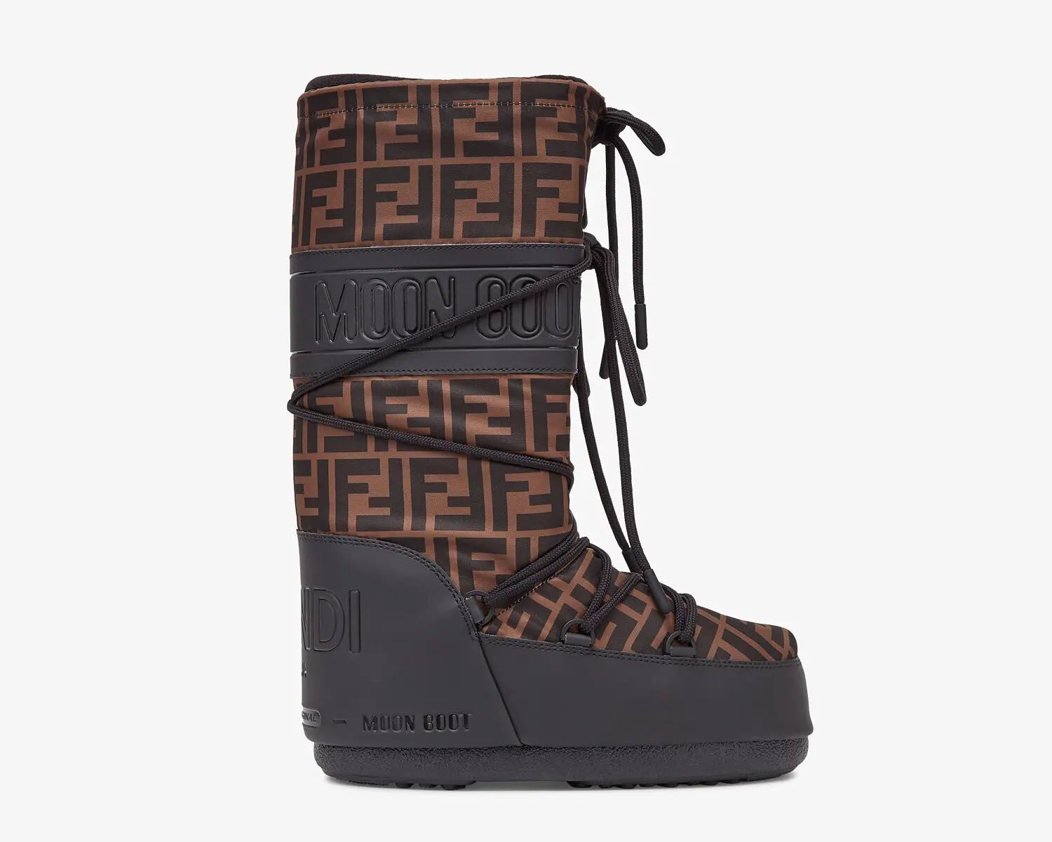 Meanwhile, various collaborative and non-collaborative versions of the Moon Boot began to appear on catwalks around the world. The brand collaborated with Fendi, Jimmy Choo, MSGM, Jeremy Scott and Moncler but Chloè, Dior, Gucci, Prada, Dolce & Gabbana and Louis Vuitton produced their own versions of the so-called snow boot or winter boot recognizable always for the silhouette, the shape of the sole and the trekking laces. The prolific nature of these imitations and collaborations has given Moon Boot the status of quintessential ski boots, whose design has surpassed the universe of a single brand and has become a type of footwear in its own right a bit as it happened to Nike's Dunks, whose overall silhouette was freely taken up by Rick Owens' Geobaskets by BAPE Sta of A BATHING APE and also by the Court Hi of Saint Laurent to name the most famous cases.