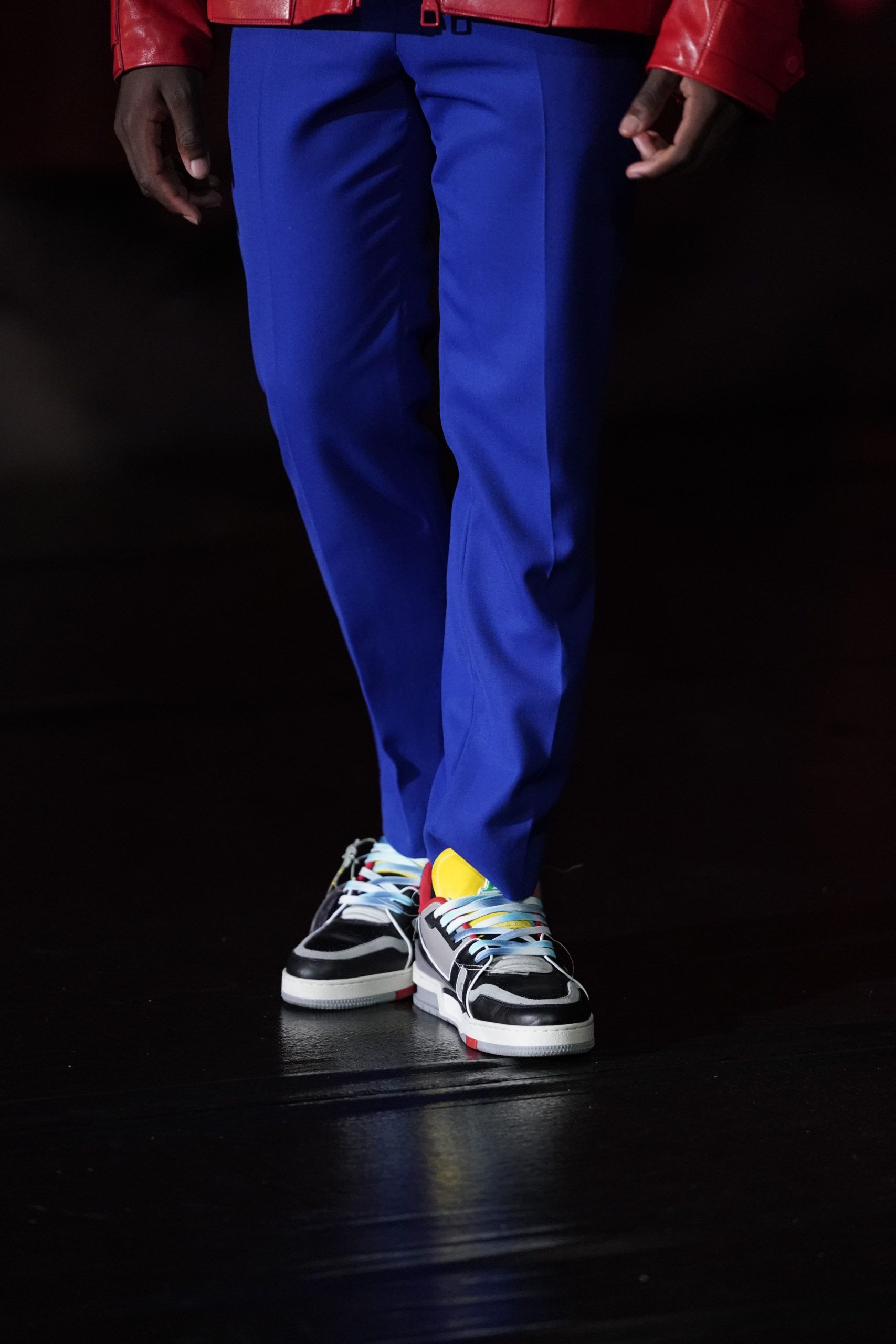 The LV Trainer is undoubtedly one of the highlights of Virgil Abloh's career as a designer, a silhouette that was first unveiled during the historic debut show for Louis Vuitton's FW19 collection. When it was designed, this sneaker represented the perfect synthesis of streetwear and luxury thanks to its inspirations and the refined circular production process developed in Italy, in the Louis Vuitton shoe atelier in Fiesso d'Artico, on the Brenta Riviera, according to a sustainable upcycling approach. Today, the previous line of LV Trainer is literally disassembled and recombined to create the new line of LV Trainer Upcycling presented in the brand's SS21 collection.