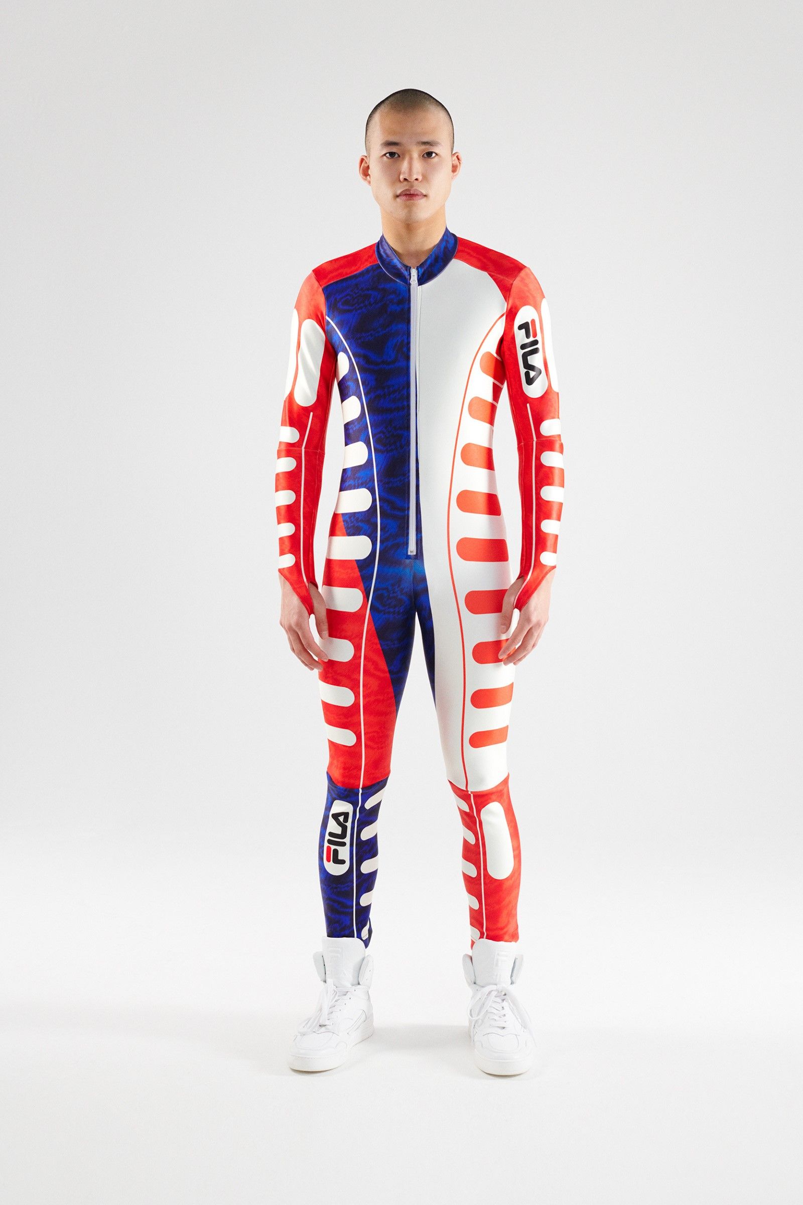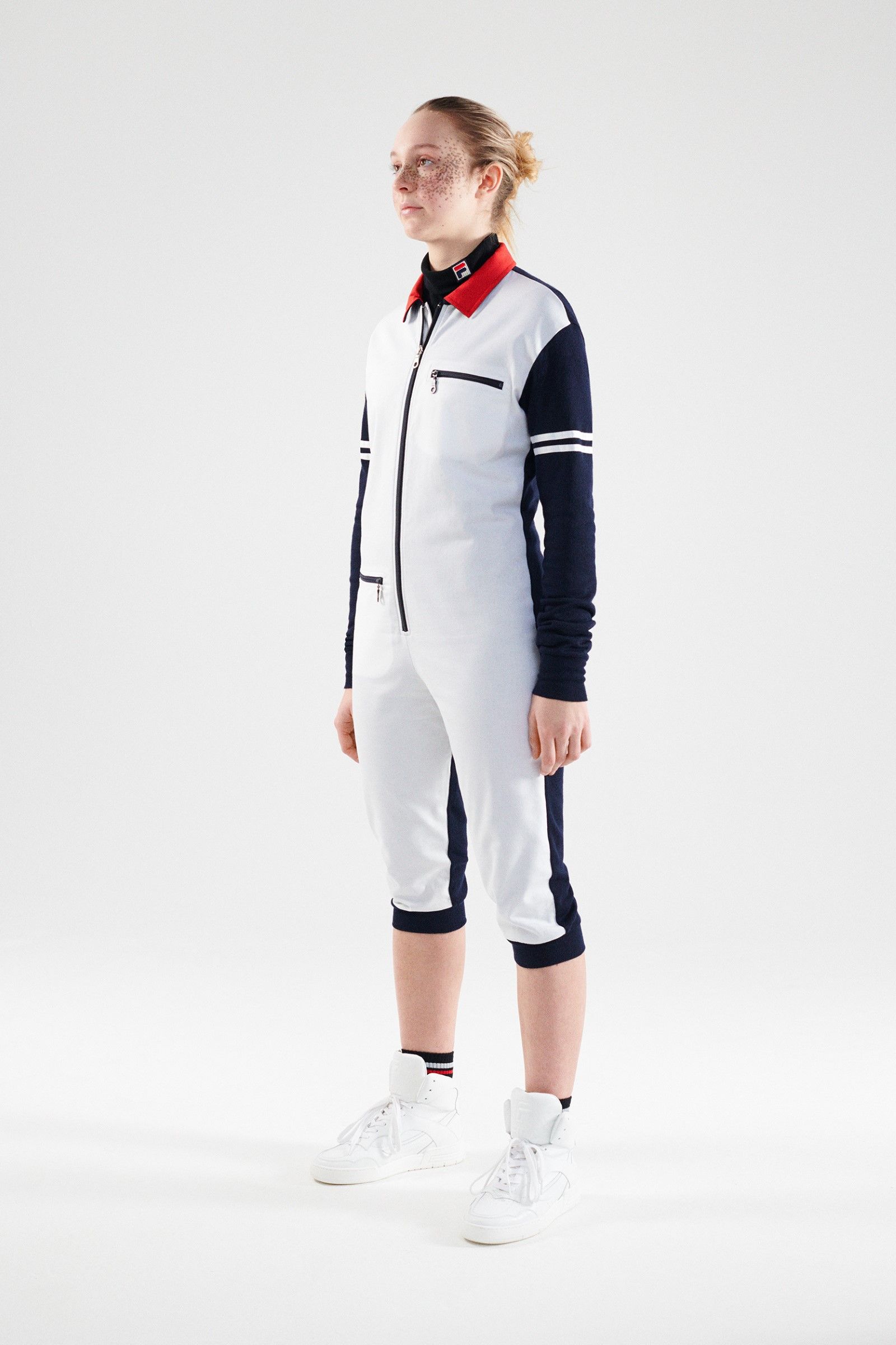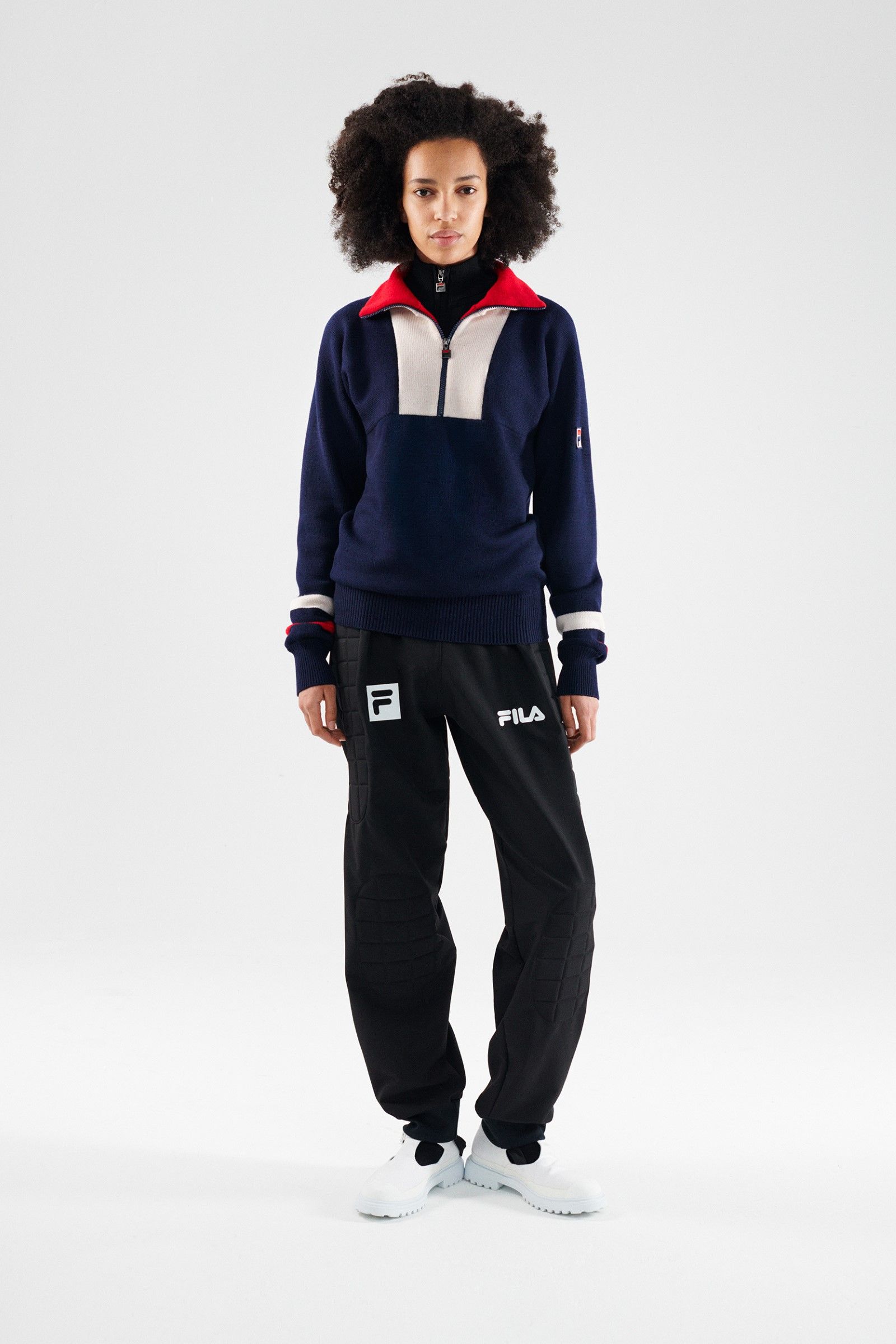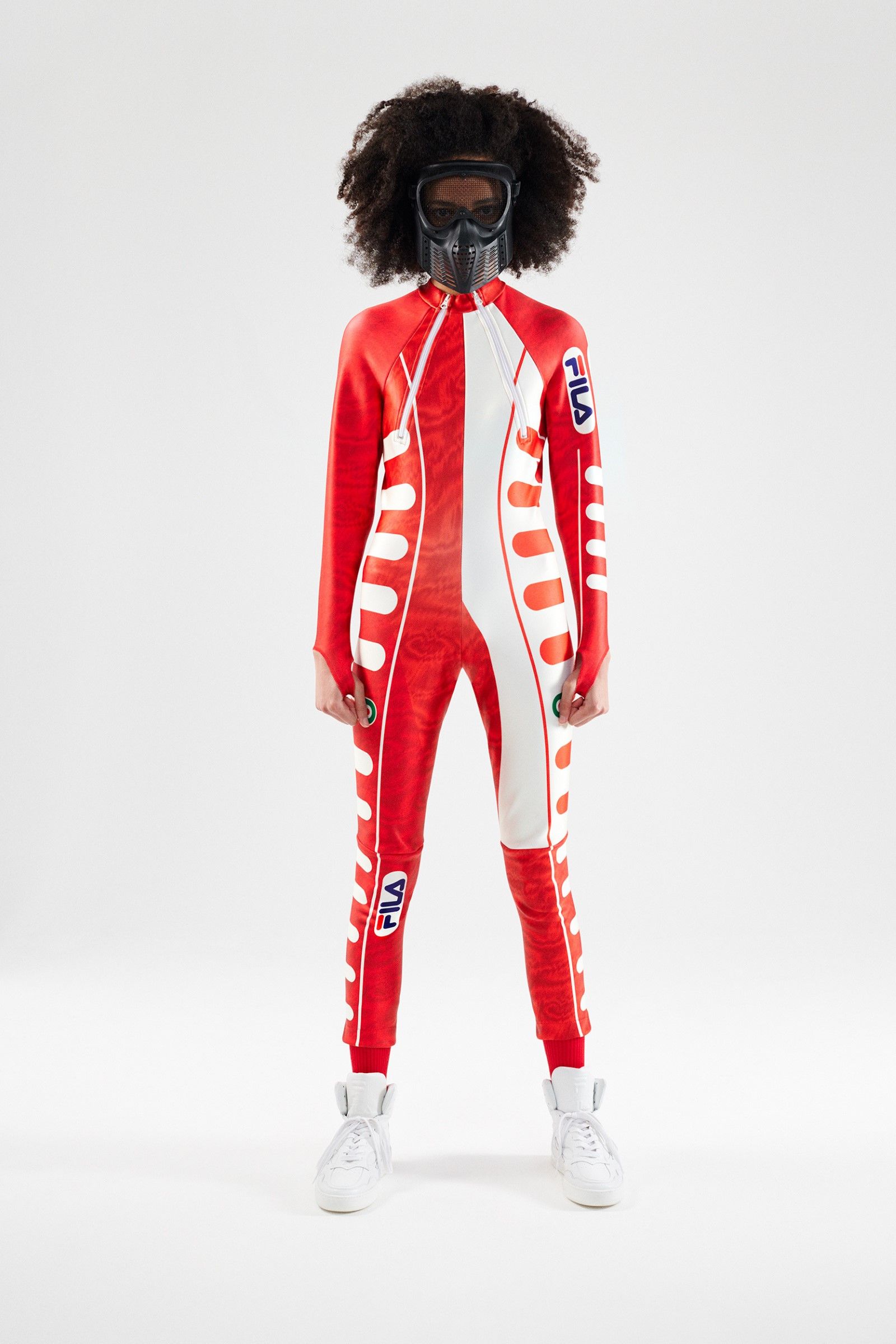 For her selection, Katie Grand has recovered the technical clothing originally born for disciplines such as tennis, basketball and golf but also aquatic and mountain sports. The archive items have been repurposed and redesigned with a modern update that preserves their vintage charm, producing a real compilation of the most iconic sportswear garments produced in the hundred and ten years of history of Fila. Golf jackets and sweaters, swimwear and bobsleigh jumpsuits, jerseys and basketball shorts, aerobics, mountain duvets and race jumpsuits – the entire FILA sports universe, together with its iconic logo designed in 1973 by Sergio Privitera, return in all their splendour showing that the brand will also be its hundred and ten years old but that it still carries them very well.