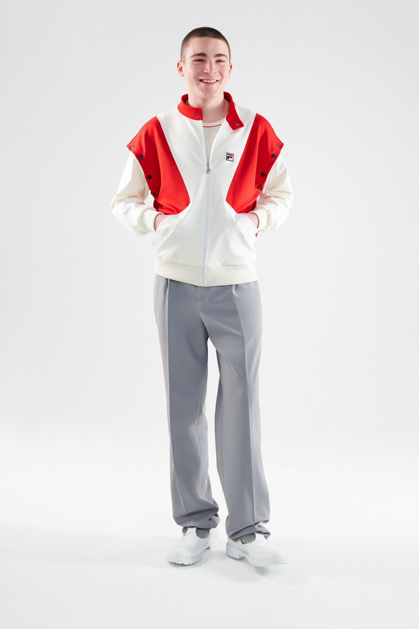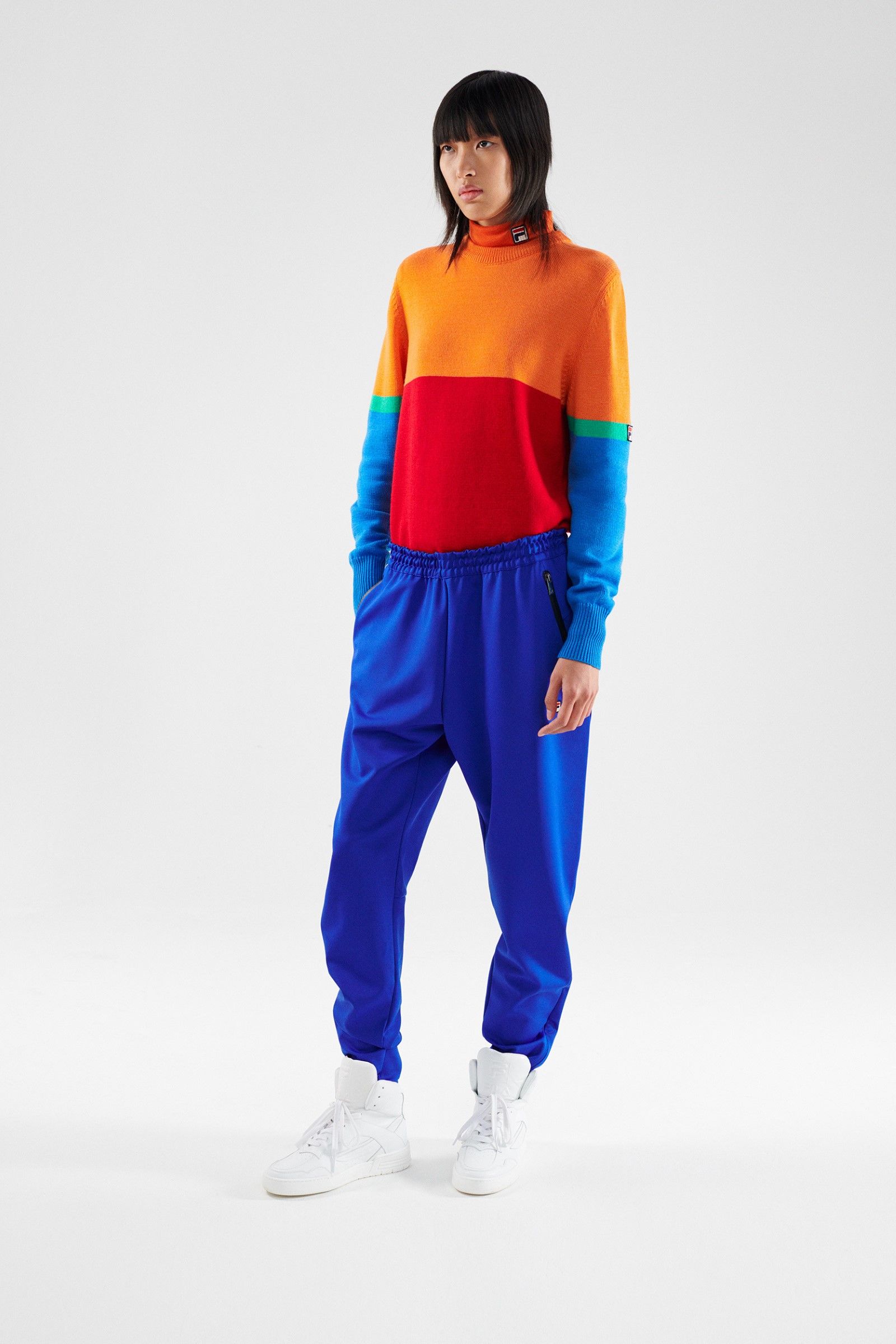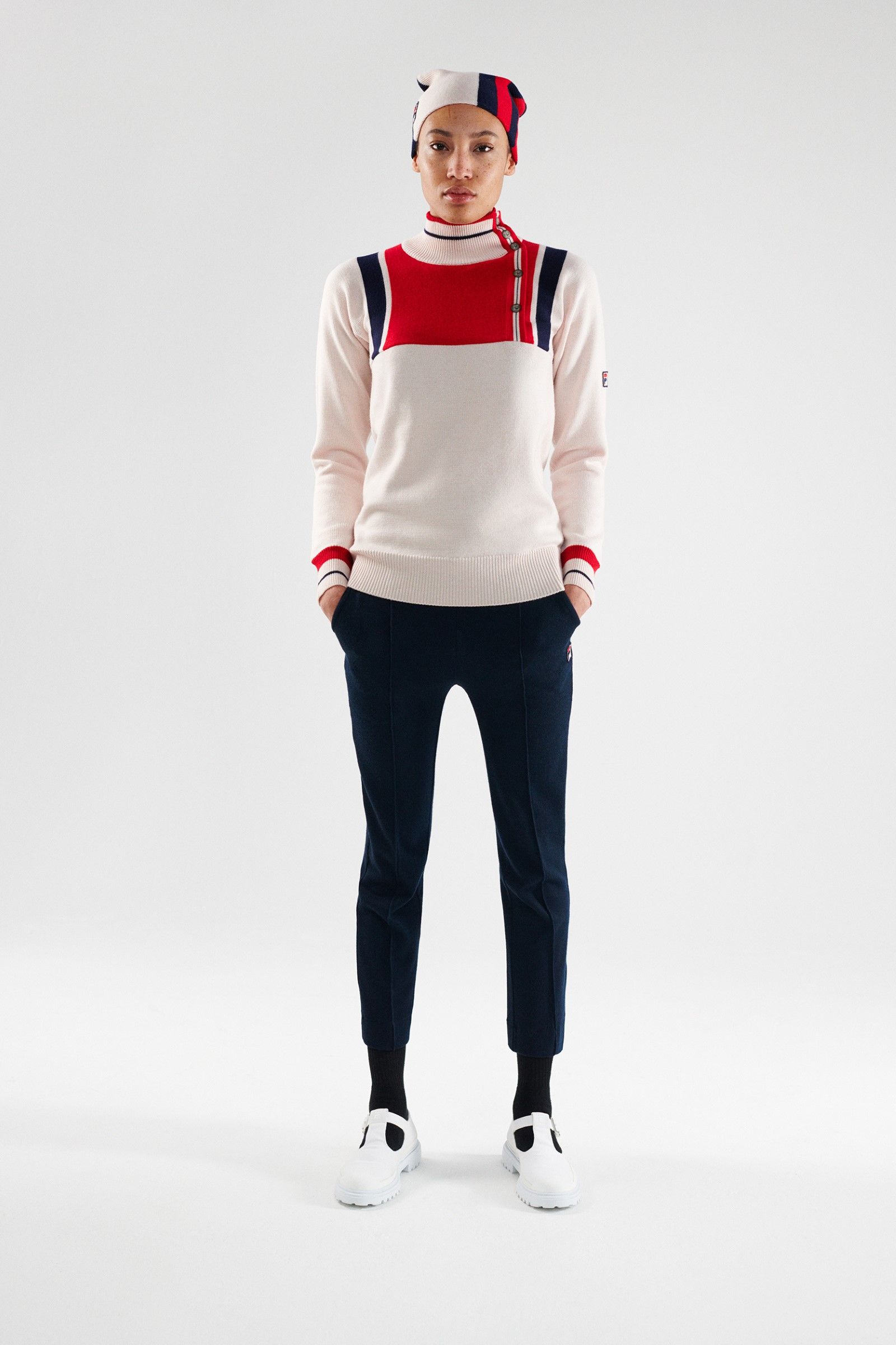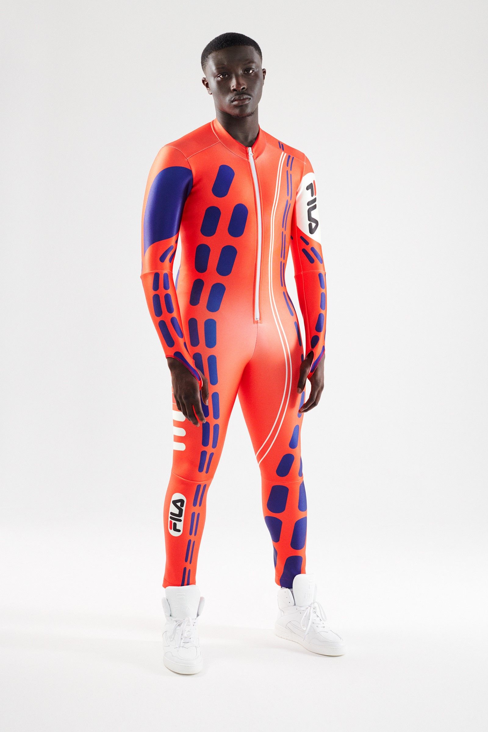 For her selection, Katie Grand has recovered the technical clothing originally born for disciplines such as tennis, basketball and golf but also aquatic and mountain sports. The archive items have been repurposed and redesigned with a modern update that preserves their vintage charm, producing a real compilation of the most iconic sportswear garments produced in the hundred and ten years of history of Fila. Golf jackets and sweaters, swimwear and bobsleigh jumpsuits, jerseys and basketball shorts, aerobics, mountain duvets and race jumpsuits – the entire FILA sports universe, together with its iconic logo designed in 1973 by Sergio Privitera, return in all their splendour showing that the brand will also be its hundred and ten years old but that it still carries them very well.