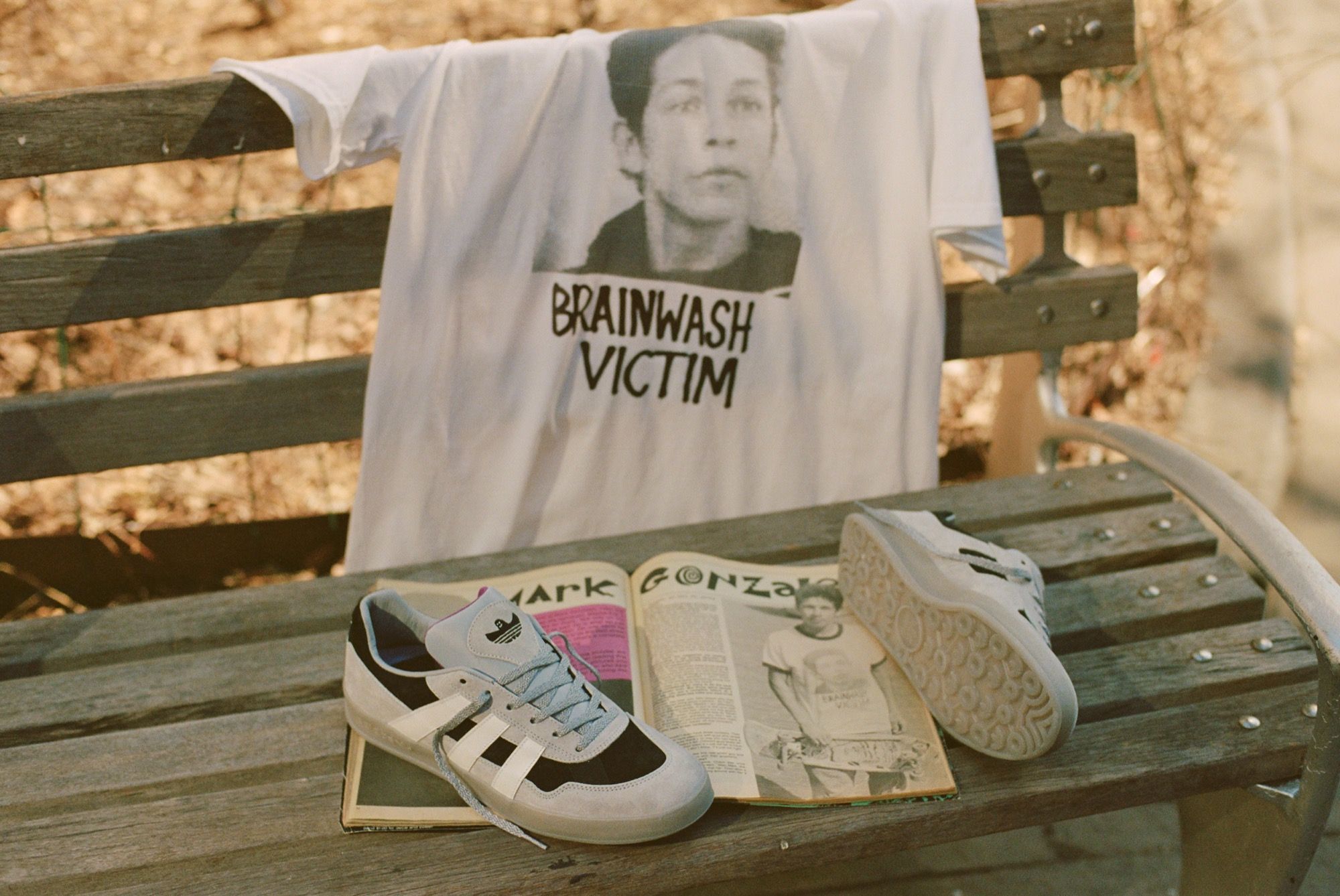 The latest adidas Skateboarding capsule collection by Mark Gonzales Featuring the 'Brainwash Victim' T-shirt and an unprecedented colorway of the Aloha Super sneaker