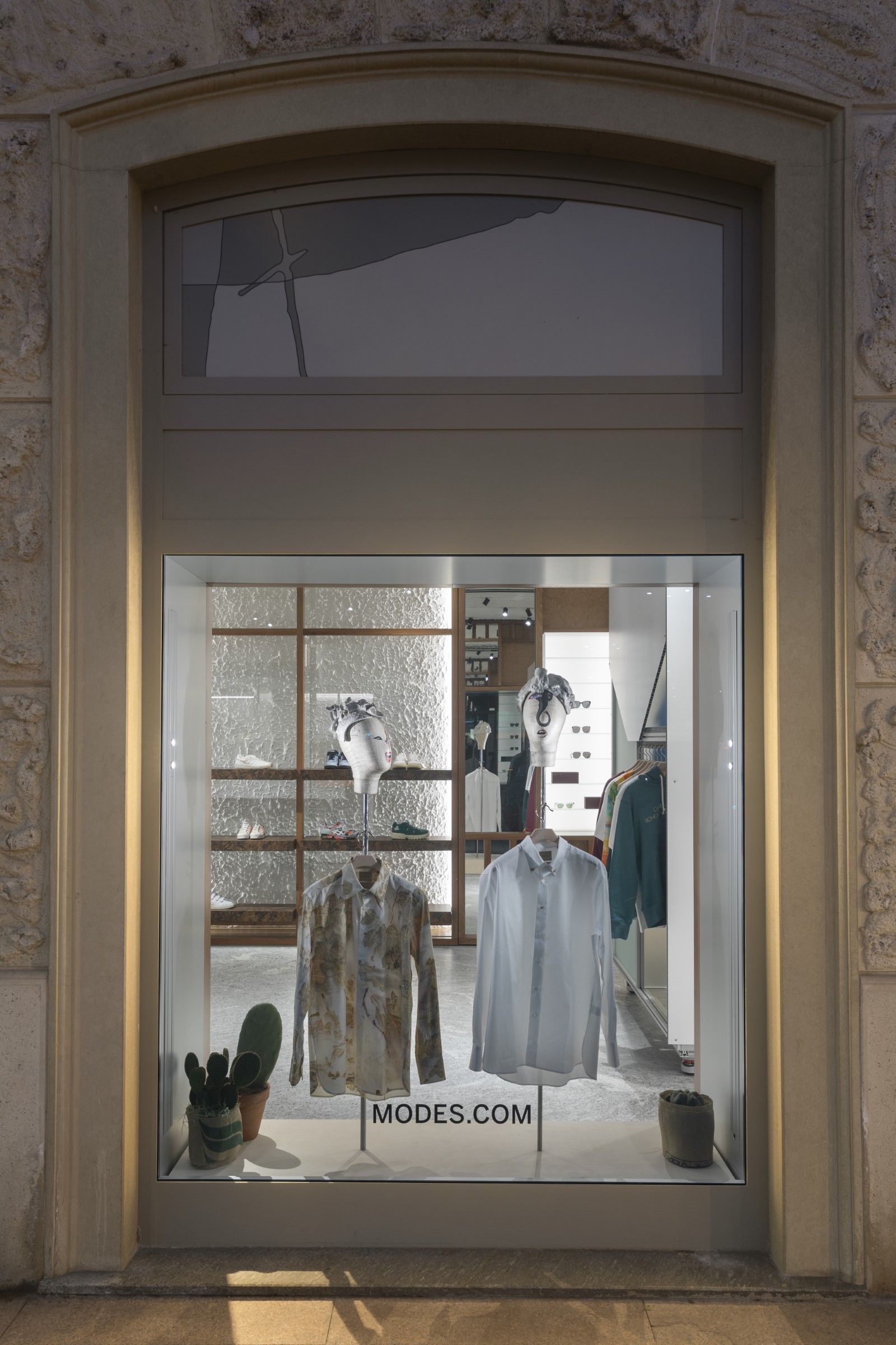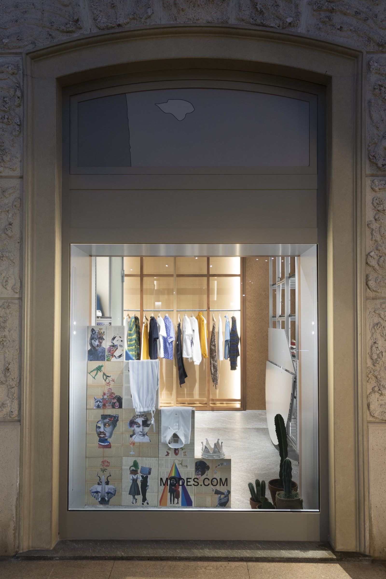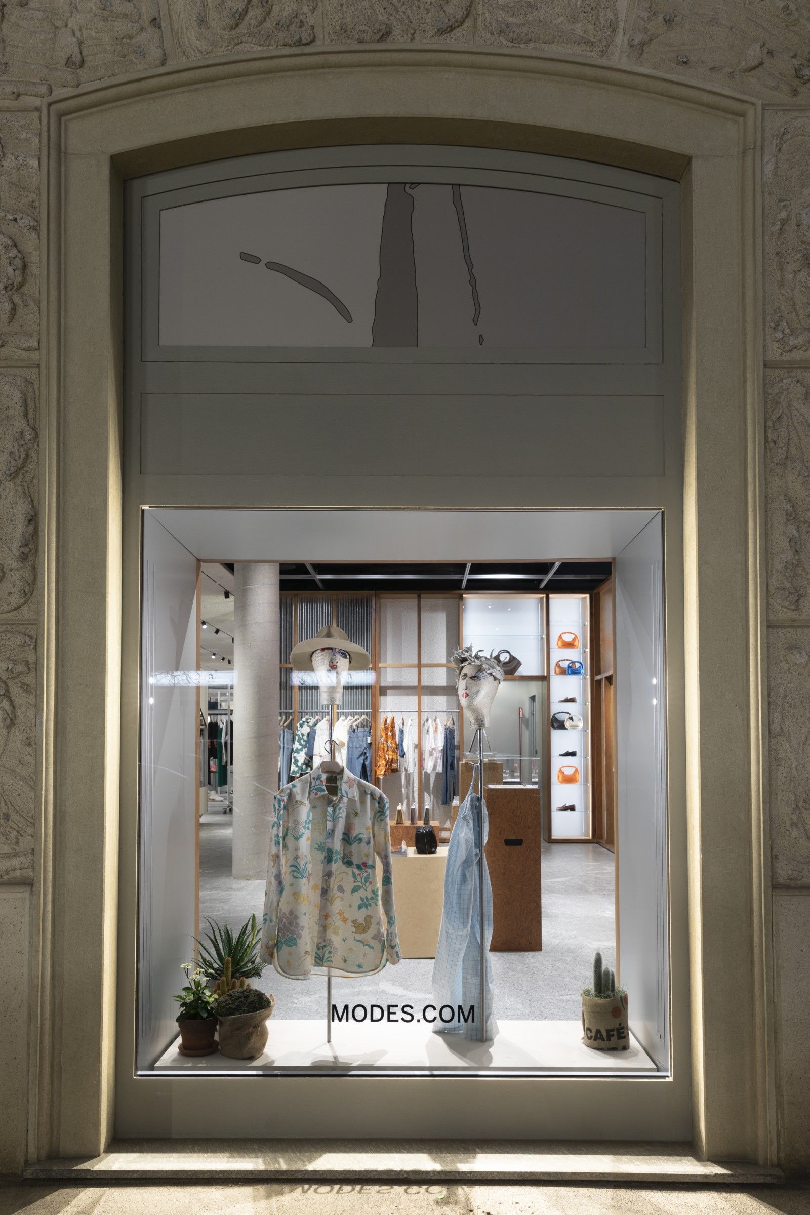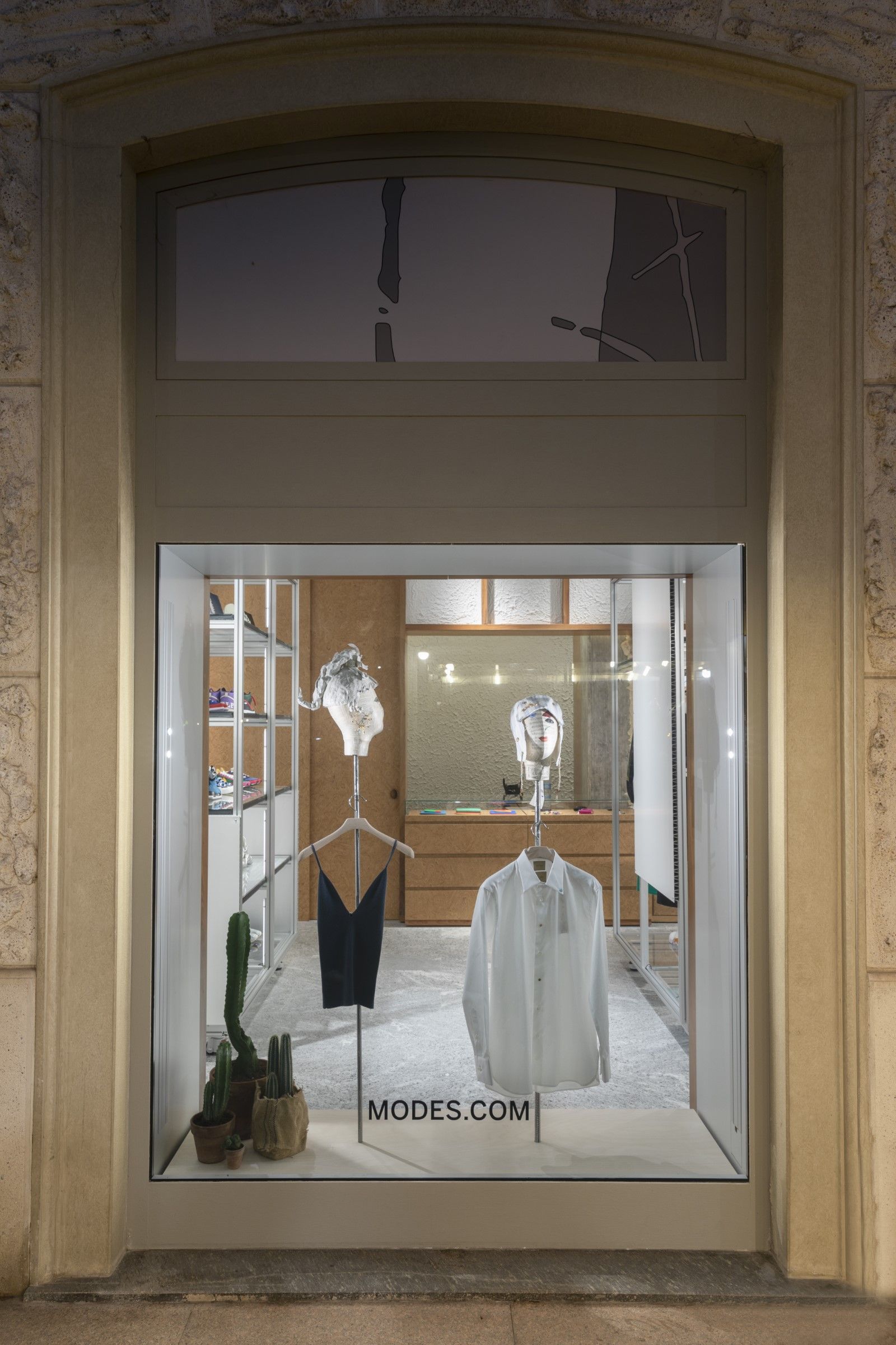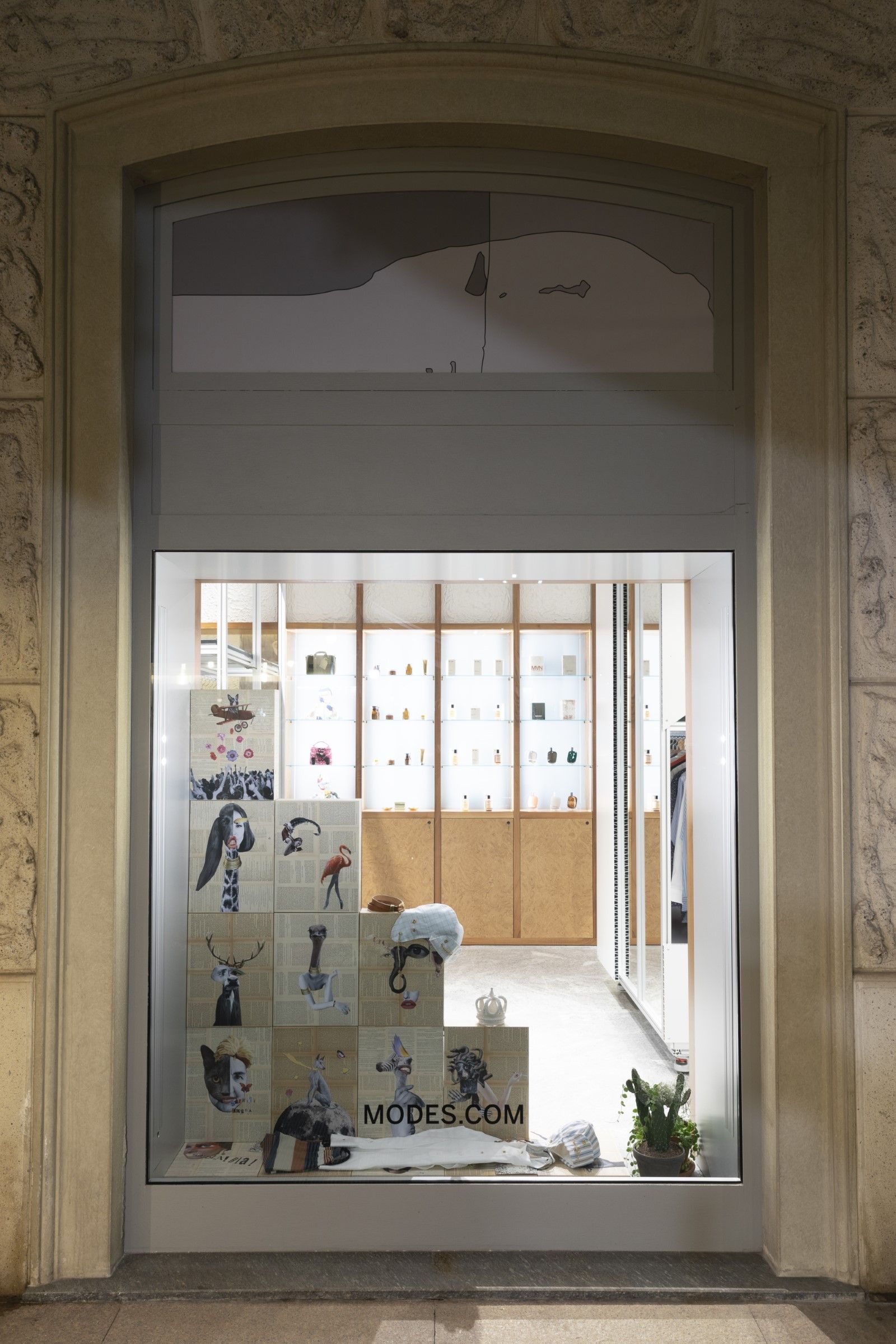 The capsule by Federico Curradi and Nick Fouquet from MODES Milano The first women's collection of the two was presented with an installation in the shop windows of the boutique