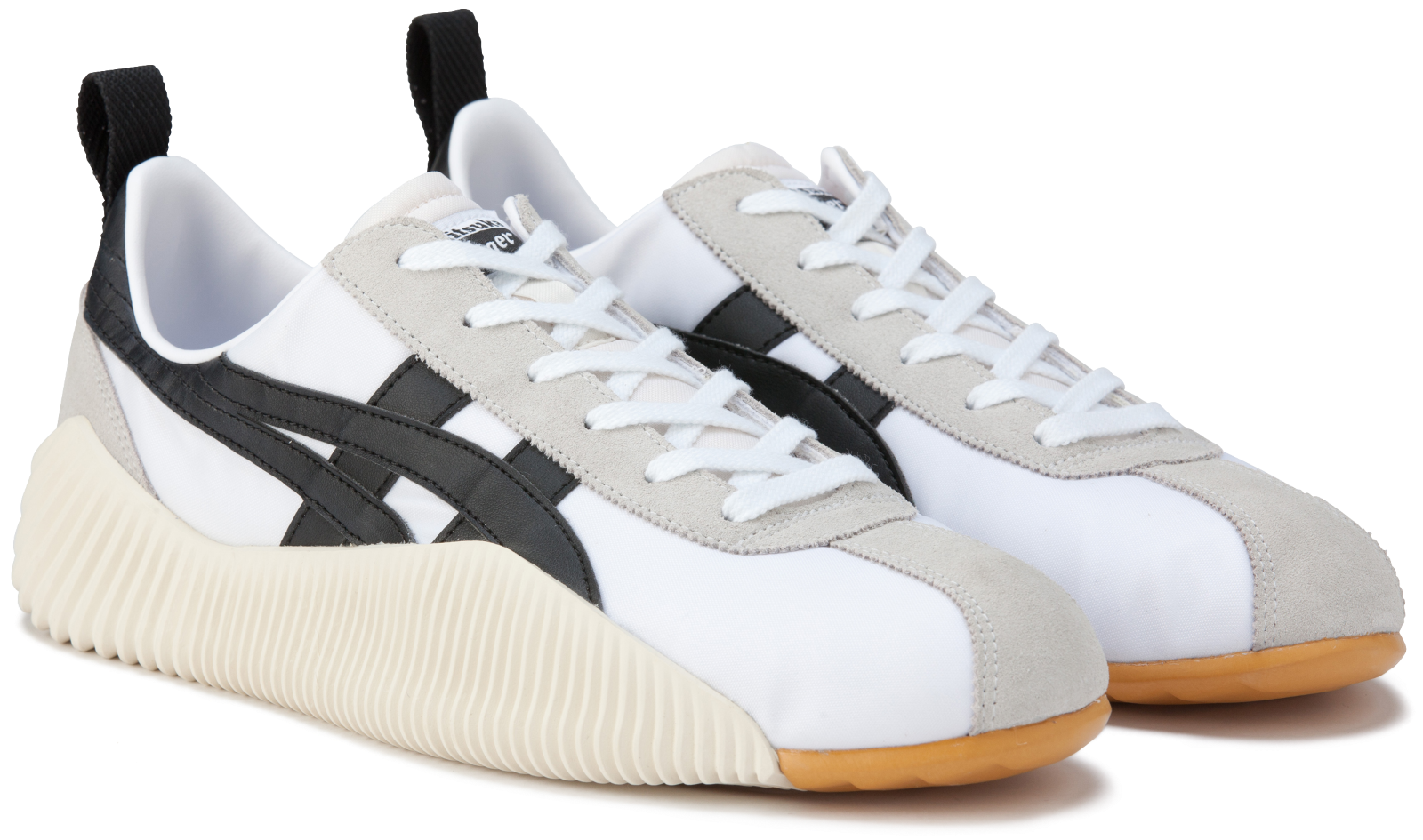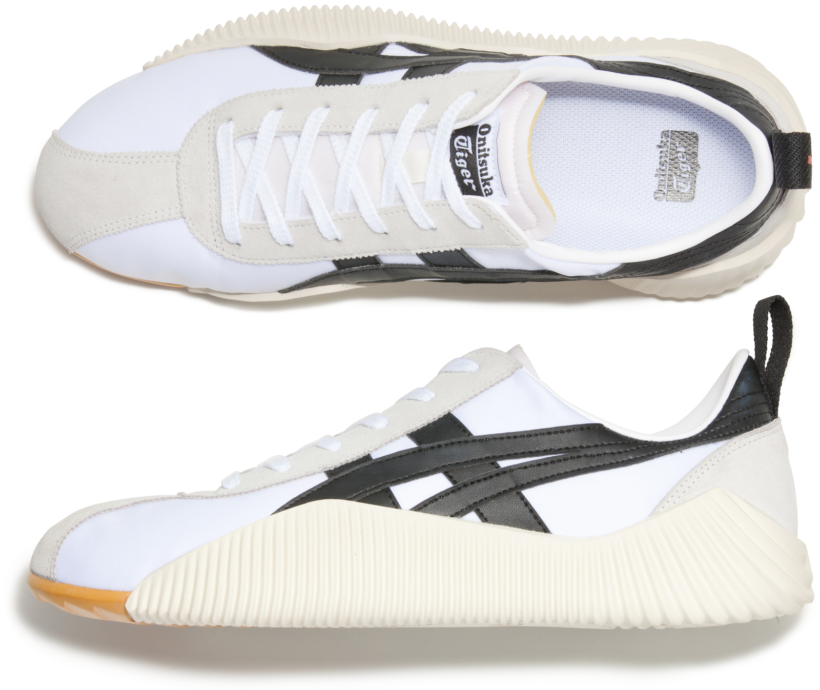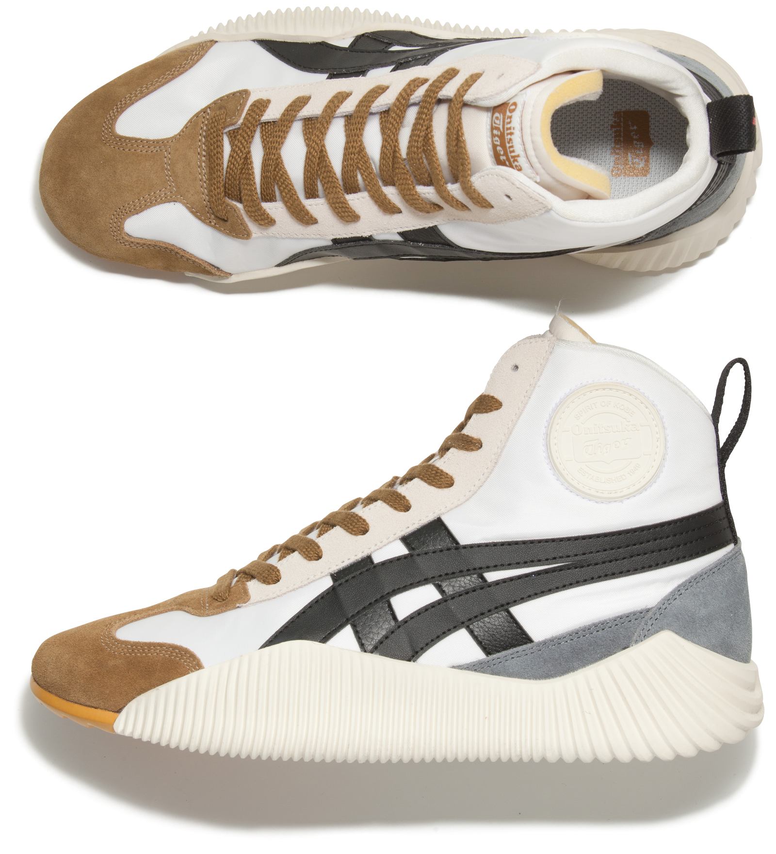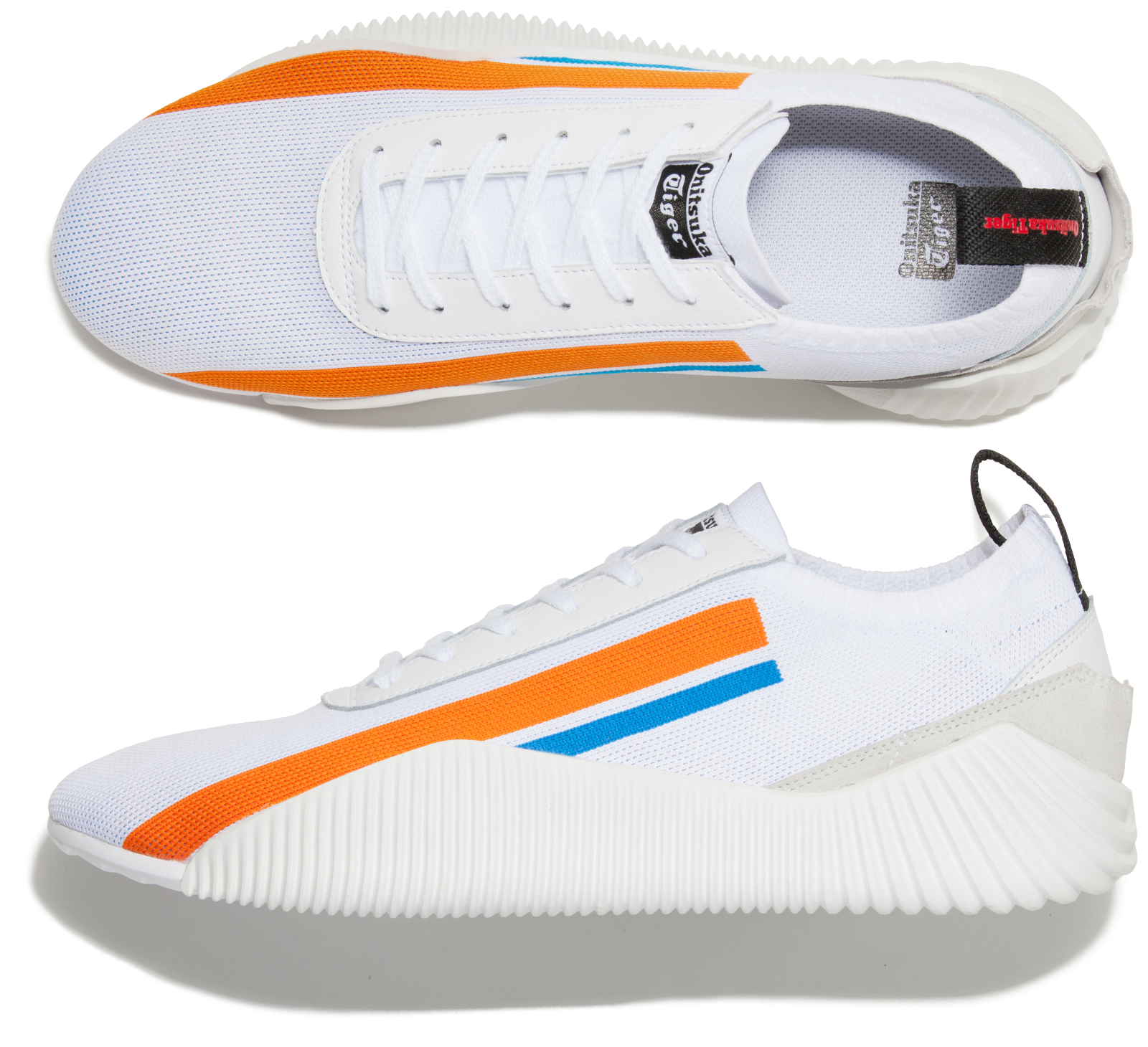 The combination of fabric and leather with a vintage aftertaste is the foundation of the aesthetics of the basic ACROMOUNT™ models with a low cut – related to the ACROMOUNT™ MT models characterized instead by the medium cut and the most futuristic shape. The design of the sole has a thin and voluminous forefoot section, inspired by the shape of the athletics shoes of the 1970s, and has been recombined using a mix of light sponge and rubber. A step further in pompilio's creative reworking is the ACROMOUNT™ KNIT model, equipped with tops composed of woven material that ensures an adaptable and modern fit. The best detail, however, are the lines on the upper, used in onitsuka Tiger's vintage training jackets and applied on the sneaker mixing the heritage with a decidedly more fashionable optics.