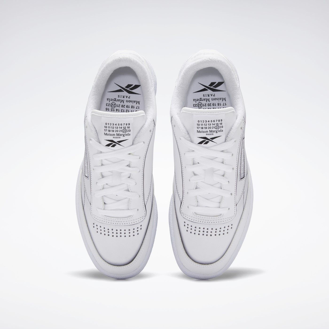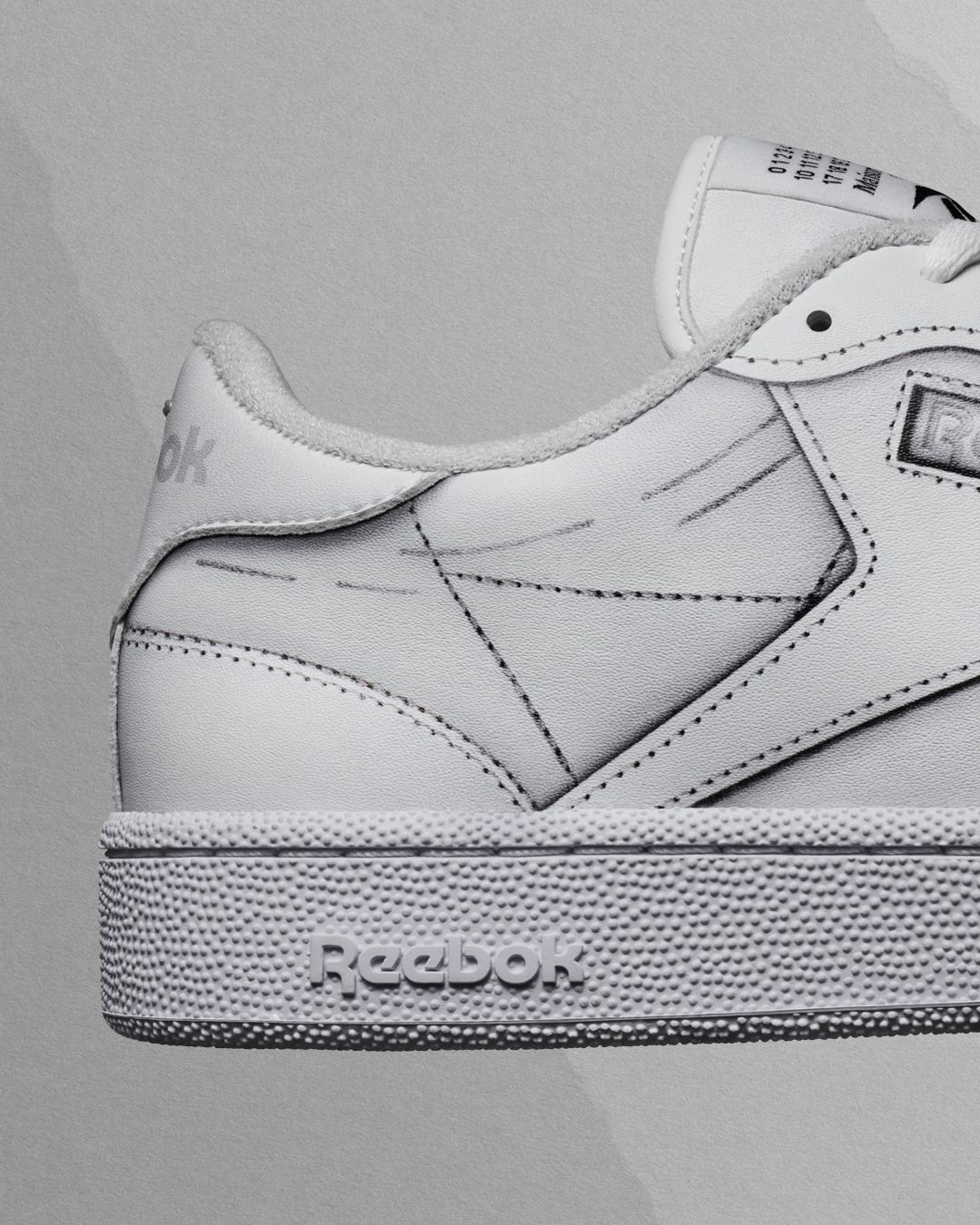 The optical illusion of the new Maison Margiela x Reebok Club C Printed all over with the "trompe l'oeil" technique