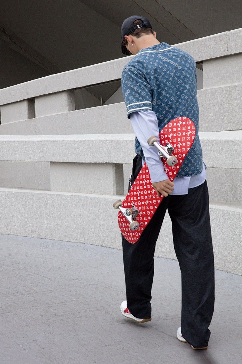 The first chapter of this story begins, like many love stories, with an apparent quarrel. It was 2000: at the dawn of the new millennium the myth of Supreme was already shining in the streetwear world but the world had not yet noticed. After the dark beginnings, the birth of the cult status of James Jebbia and, above all, the 90s, the brand was not yet the power it is today. The whole streetwear world of the time lived in a mirror dimension in which the dialogue with fashion was decidedly one-sided: these were the days when Stussy made the verse to the Chanel logo and Dapper Dan redesigned Gucci's creations for the youth of Harlem. Supreme also did something like this, creating a series of skate boards decorated with the Louis Vuitton monogram, with the "S" instead of the "LV". It was an iconoclastic operation but also the beginning of a cultural assimilation that would lead, 17 years later, to one of the pivotal moments in fashion history. For the time being, however, the time was not ripe and the first phase of the romance ended badly: Louis Vuitton sent Supreme a dry "cease-and-desist" threatening future legal action. The skate boards disappeared but the ice had been broken.