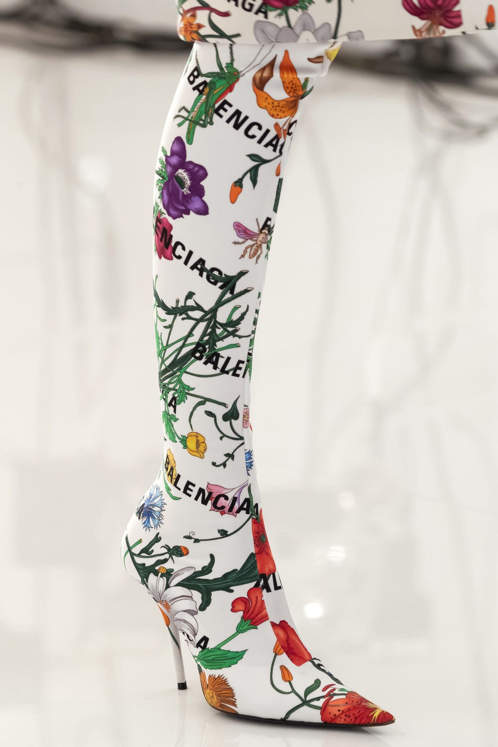 The creative hacking of Gucci and Balenciaga, seen in the recent Aria collection show, was perhaps the most important fashion moment of the season, with all its power being conveyed through a maximalist use of the juxtaposed logos of both Maisons. There was a rhinestone suit with the two logos in oblique lettering, the same lettering of Balenciaga's logo alone was printed through a second suit covered with Gucci Flora print, a third black men's coat with a very Balenciaga-esque cut was in turn covered with Gucci's Monogram in blue rhinestones and so on.