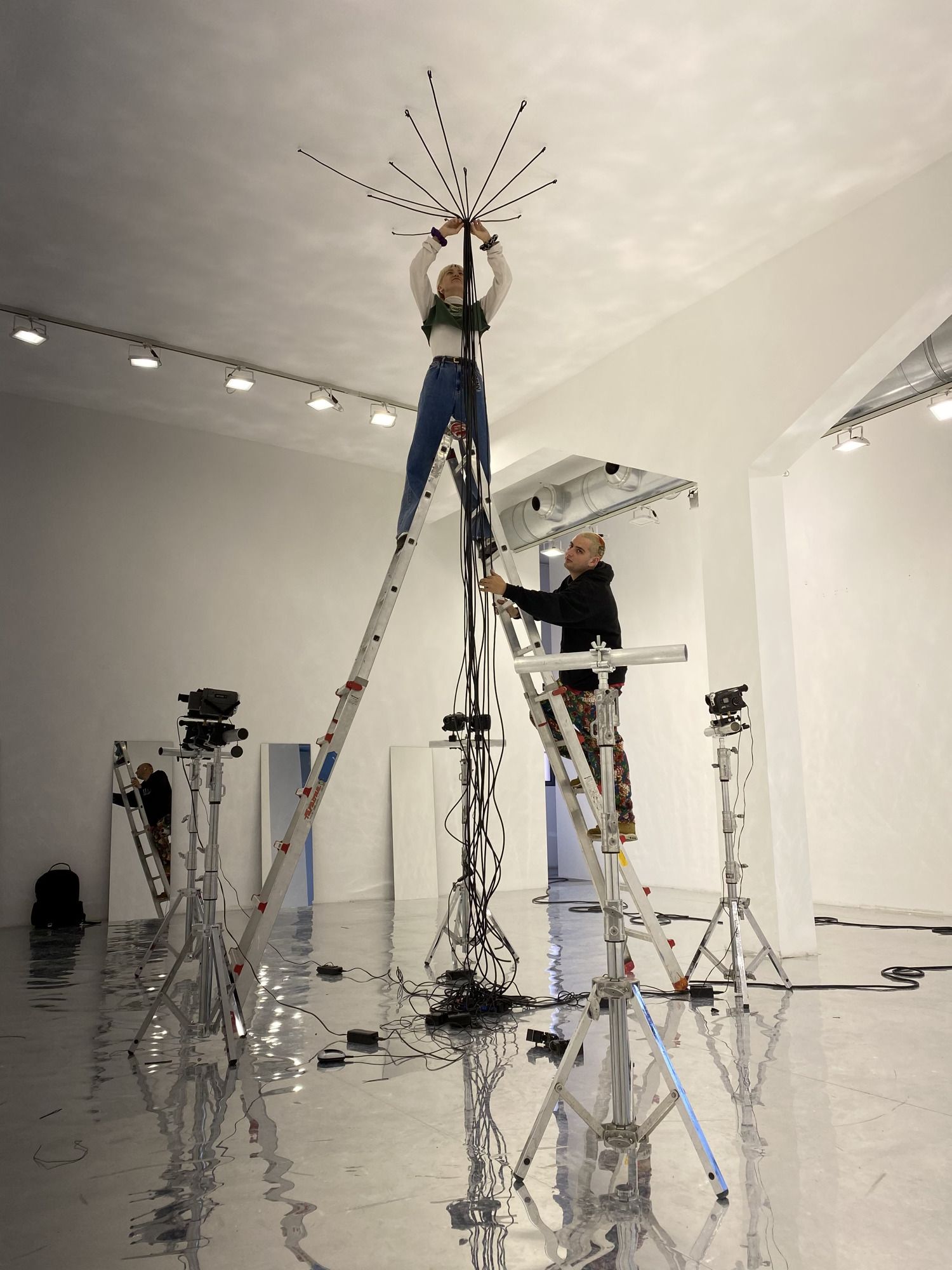 Last April 16, in fact, Formy Studio gave life to an exclusive event in collaboration with Marco Petrus and set up inside the M77 Gallery in Milan, a unique space in the world of art, which embraces and blends different disciplines. The installation was put together with the aim of creating a fluid alternation between fashion pieces and virtual and analogue works of art designed by Ent TV.