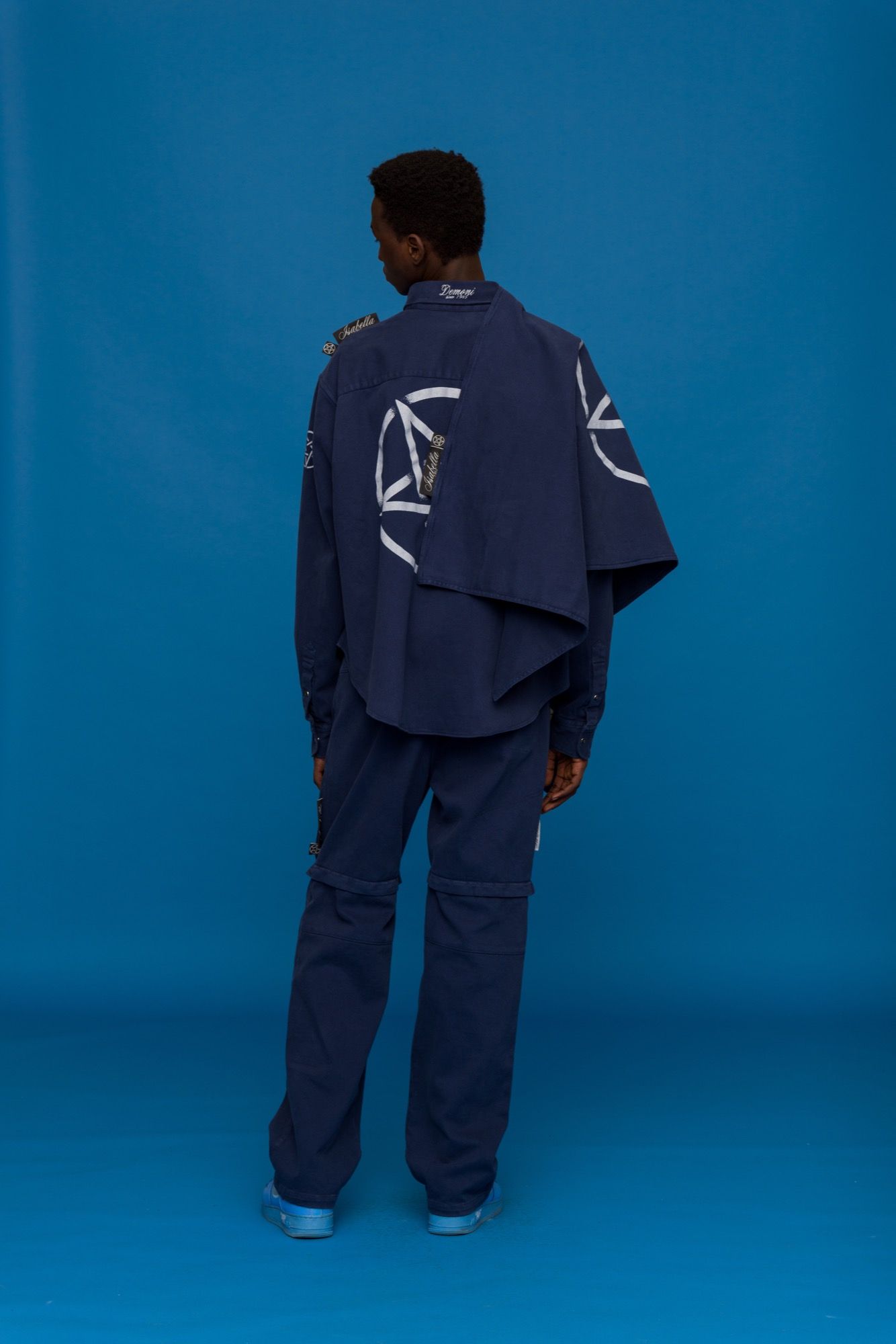 The brand is based on the desire to offer an intimate and personal vision of fashion through the search for cuts and volumes, in a mix of inspirations that investigates the mystery of identity in the digital age. This is why each garment wants to be the expression of the dualism that lives in the world of ISABELLA1985, a symbolism that also translates into the pentagram, the brand logo, a representation of the process of transforming the meaning of symbols in the era of Internet 3.0 in which everything can become logo and icon. Garment-dyed cotton and canvas garments find space in the collection, while the muted palettes and low-key aesthetics hide references to pastel goth, norm-core and other subcultures. Finally, the external labels, present on each garment, represent ISABELLA's desire to tell a world in which every perceptual balance can be subverted.