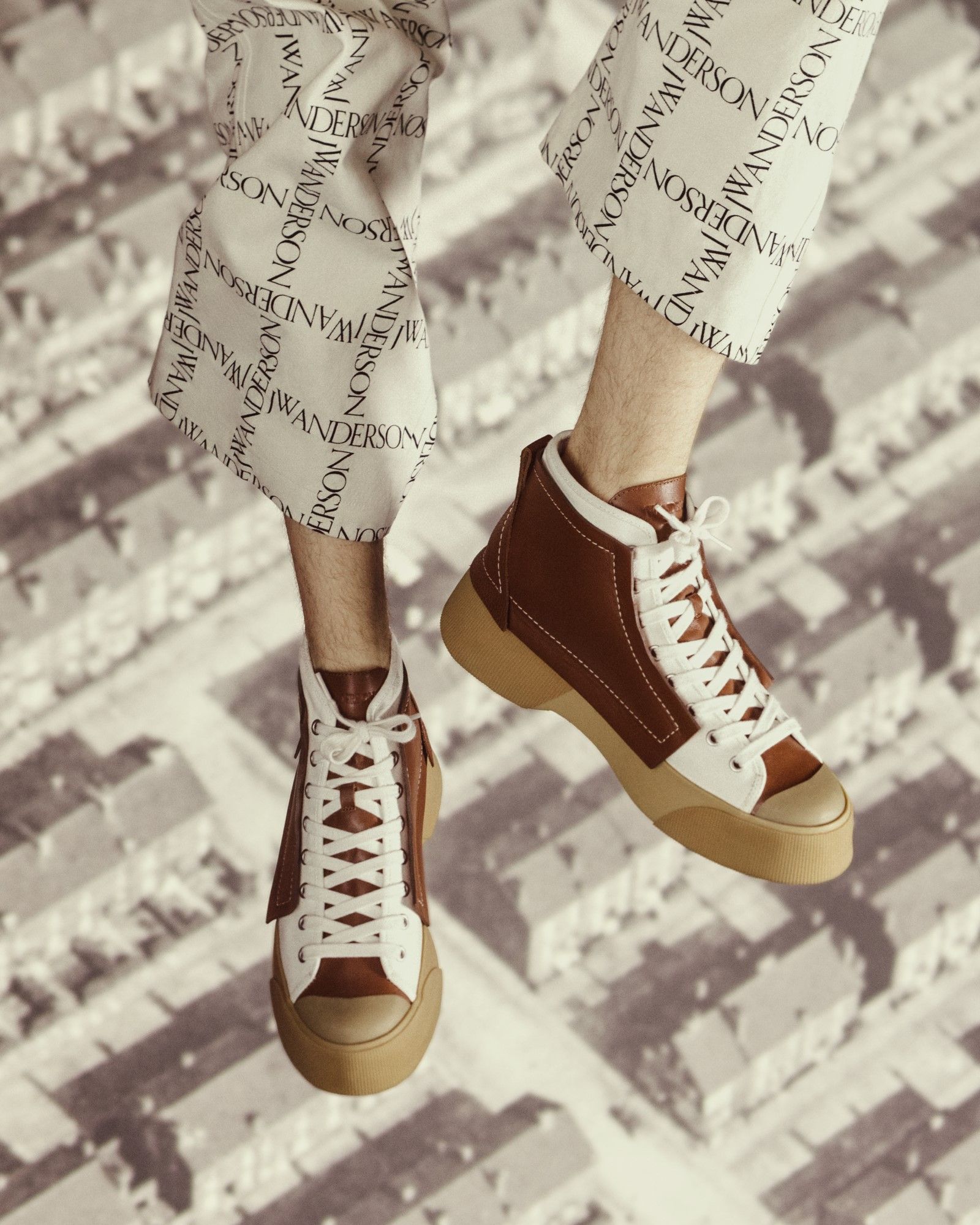 JW Anderson presents his first line of sneakers A new deconstructed silhouette that combines leather with canvas