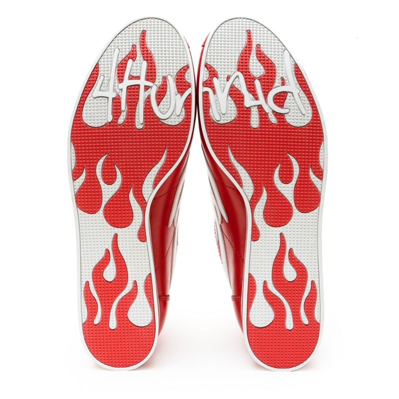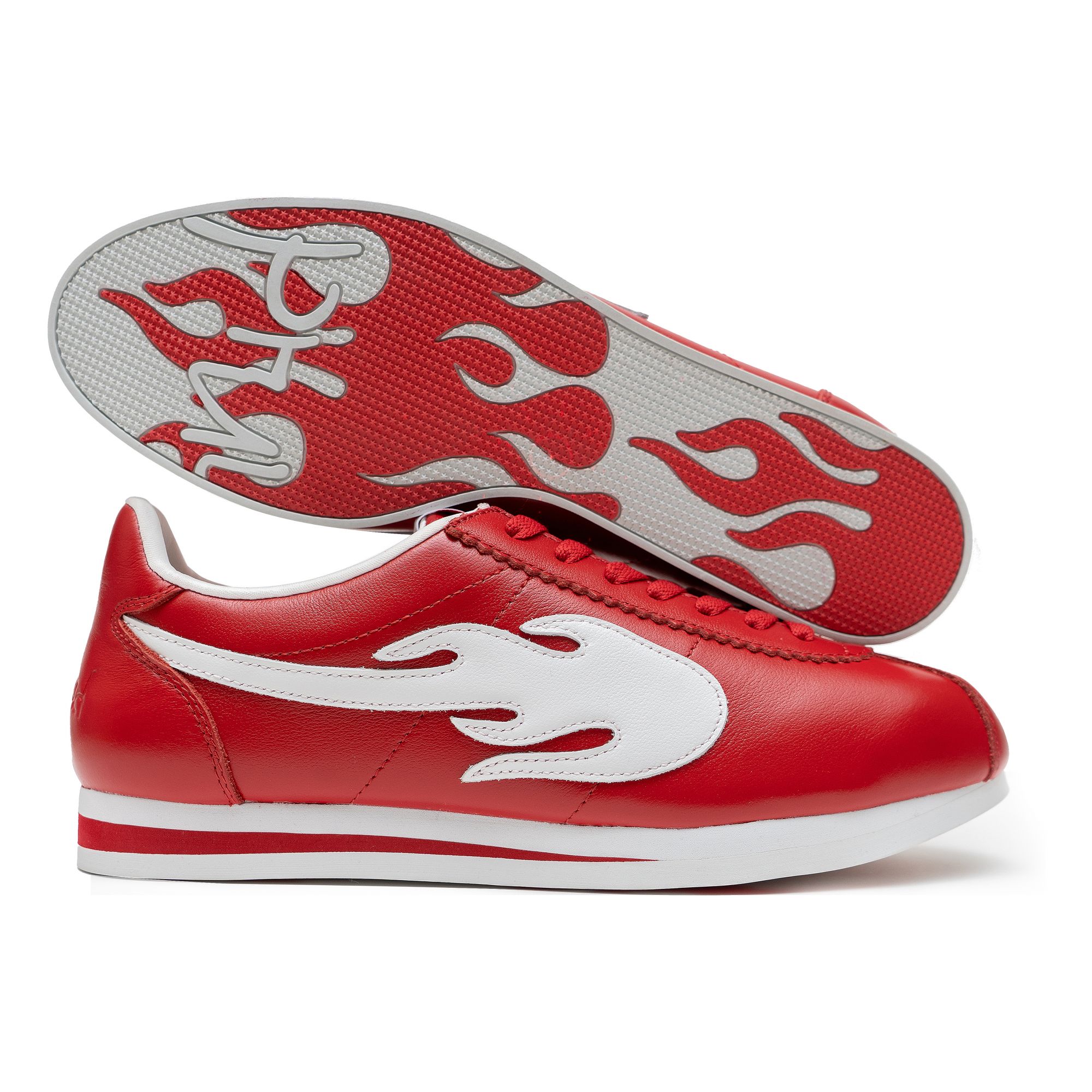 Born and raised in Los Angeles, YG always wanted to create a sneaker that represented West Coast style. Inspired by the Nike Cortez, the sneaker boasts a custom sole and red leather with contrasting white inserts, while The Flame logo adorns the side of the sneaker.