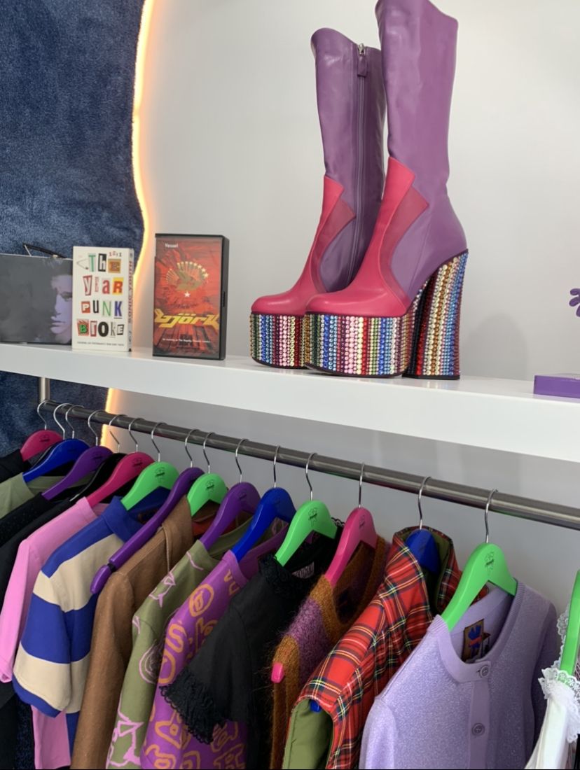 Very new age, they do not accept cash, so hopefully, you are Apple Pay/Card ready for the iconic Marc Jacobs runway platforms lined around the perimeter of the store in various hues, leathers, and bedazzlement. In unsolicited opinion, the perfect encapsulation of this store is written on paper at the entrance saying: