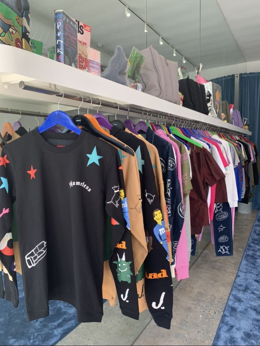 A 20-something walks in with her cool LA mom, and asks for a blue hat that she saw an hour ago, but couldn't commit to at the time. "Oh babe, we sold that hat! Things go so fast here!" *tilts head, and pokes out bottom lip for a totally LA sad face*. "Damn! It's sold out online too! I should've got it earlier!", she laments. The associate responds "Yeah babe...sorry about that!". I notice she's wearing a silver sweater vest that is part of Heaven's collection...she's clearly a return shopper. She informs us she's on her way to stand in the ridiculous line outside of Supreme for the Emilio Pucci x Supreme drop. It's 4 pm and I'm certain the collection is almost all sold out because I heard two hypebeasts, ranting about how they couldn't get anything they wanted. It wasn't really a rant, more of a weed enhanced, "Yo fool, you think they have anything left on the app?" *Hits weed pen* Surely to face a double disappointment (who knows how many she's had today), I suggest maybe she'll find the Heaven hat she’s looking for on Grailed?
