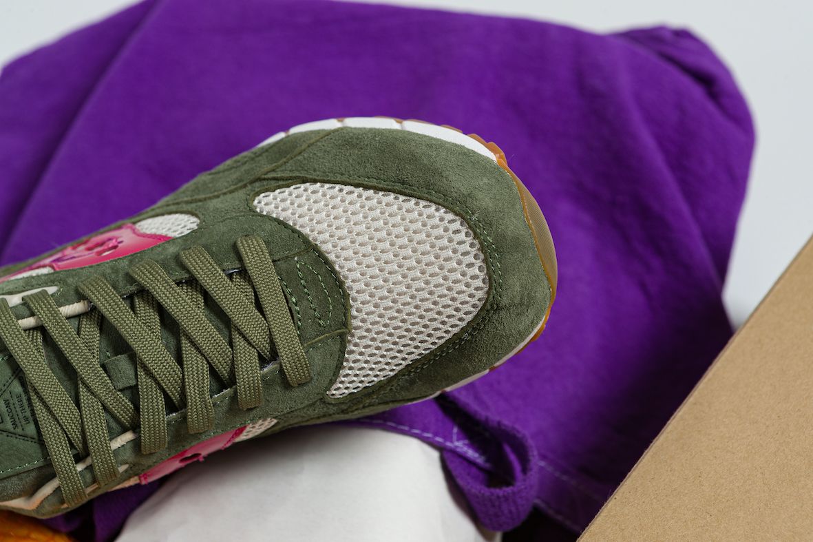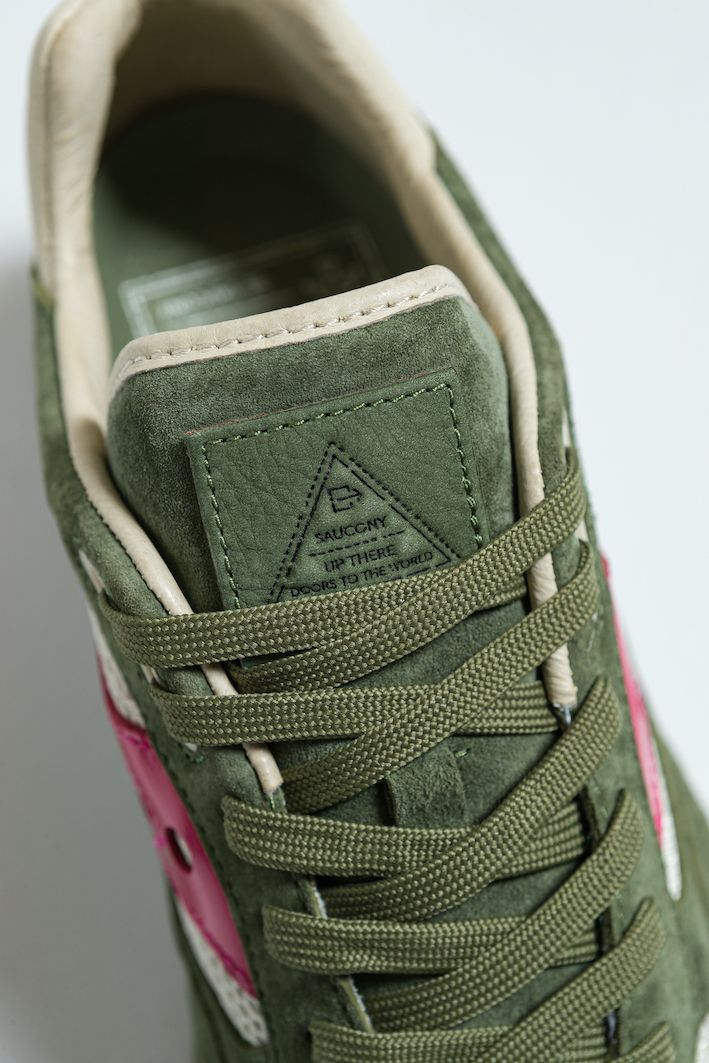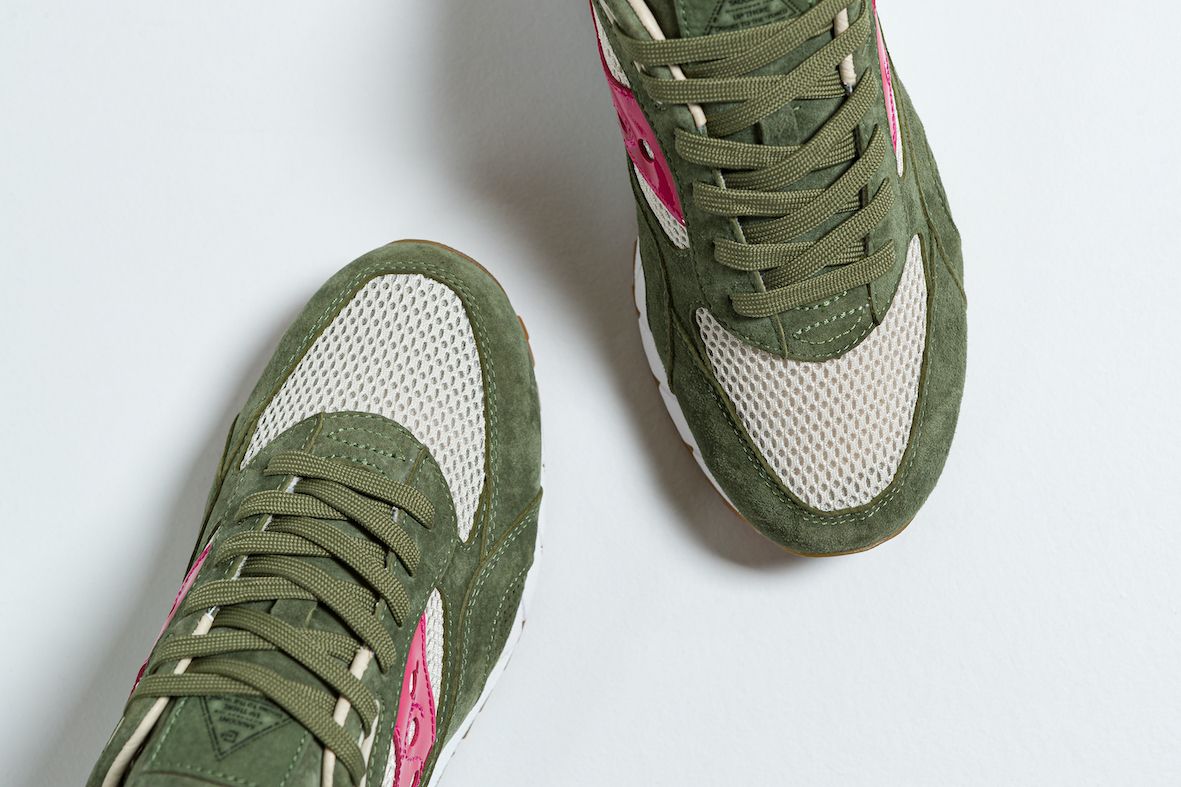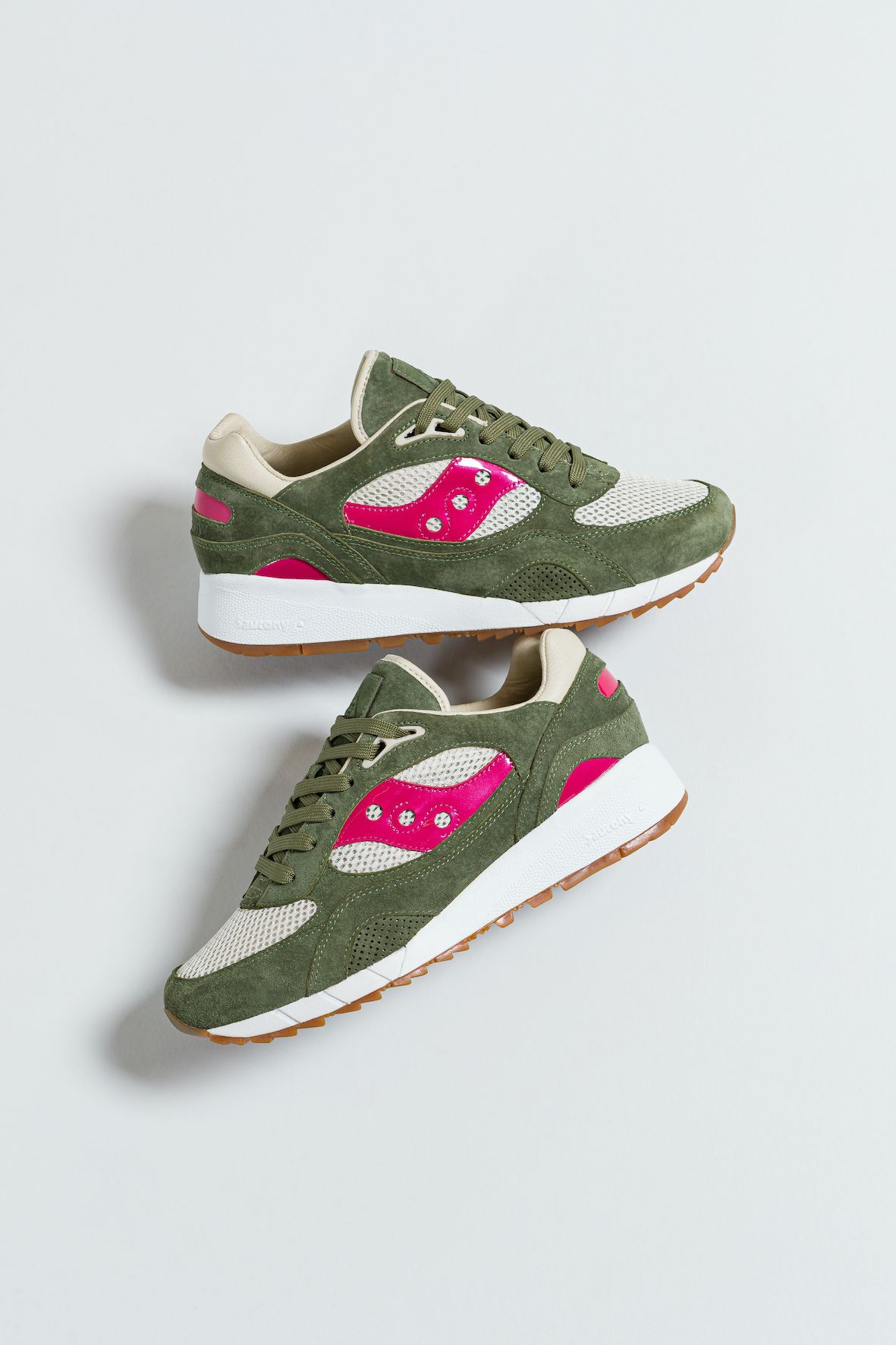 Olive green is the dominant color of the Wolverine premium suede upper with premium mesh inserts on the toe and side panels, while midsole and rubber sole are white. The brand's side logo, the iconic S, is instead colored leather with a bright shocking pink while all around the shoe there are subtle details that recall the stamps of passports. Finally, the sneaker is accompanied by an exclusive packaging with four sets of laces, a mesh sneaker bag and tissue paper inspired by passports.