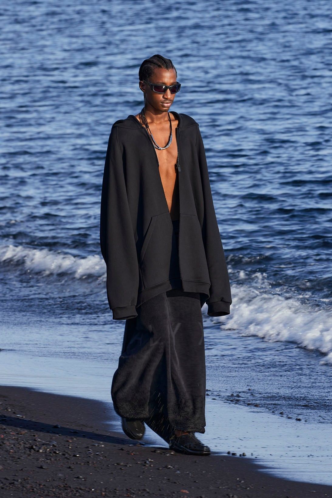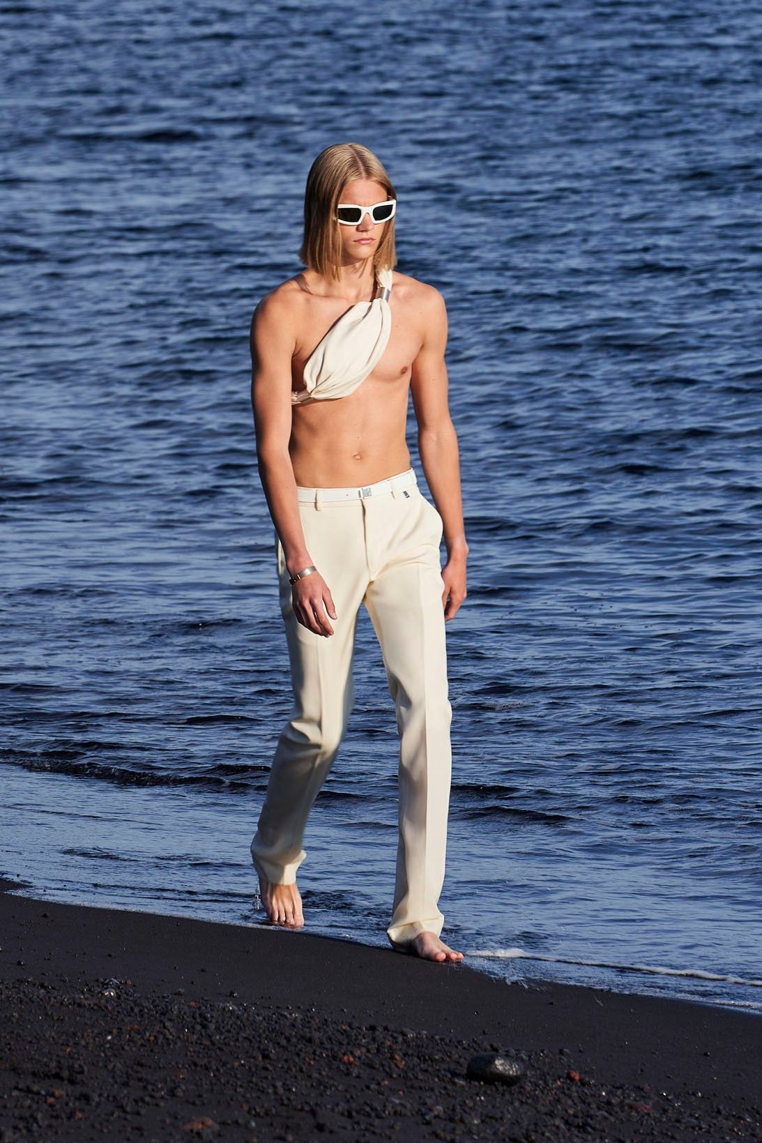 After Prada, which set its most recent show on the beaches of Sardinia, 1017 Alyx 9SM and Matthew Williams, in the final act of Paris Fashion Week, also shifted their gaze to the Mediterranean. The 41 looks of the SS22 collection of the brand born in New York and then moved between Italy and France, together with its founder, were shown to the spectators against the background of the beach of Stromboli, Sicily. The location is quite unusual for the brand, which had accustomed us until now to decidedly industrial locations filled with cement and steel, but the change is more welcome given the season and, above all, the way in which the black volcanic beaches of the Aeolian Islands frame a collection composed of monochromatic designs, which further refine Williams' design language that is minimal, aggressive and Helmut Lang-esque at the same time. However, the way in which the Mediterranean is painted remains noteworthy: no longer as a nostalgic resort destination or symbol of a simple and opulent life, but as a mirror of an uncontaminated and "brutalist" nature in which to immerse yourself and to get back in touch.