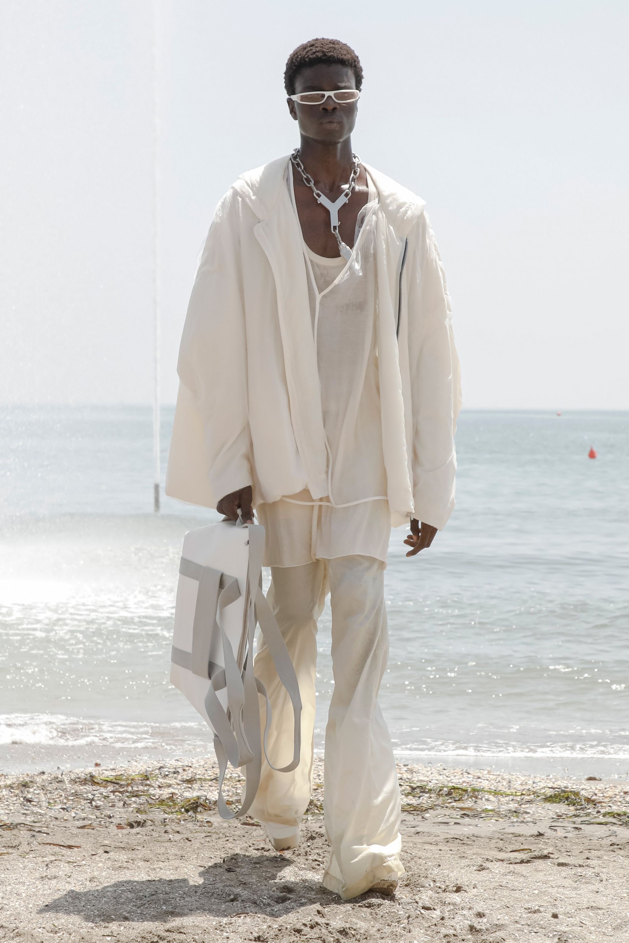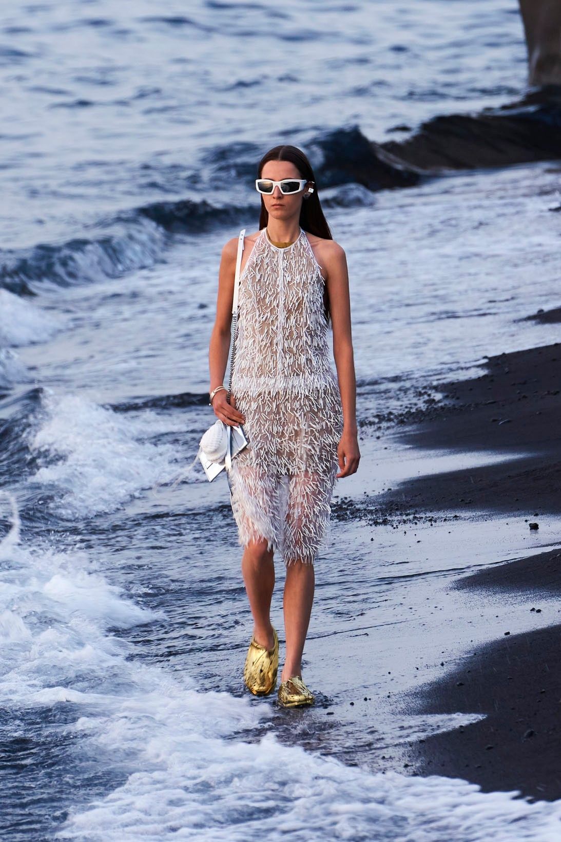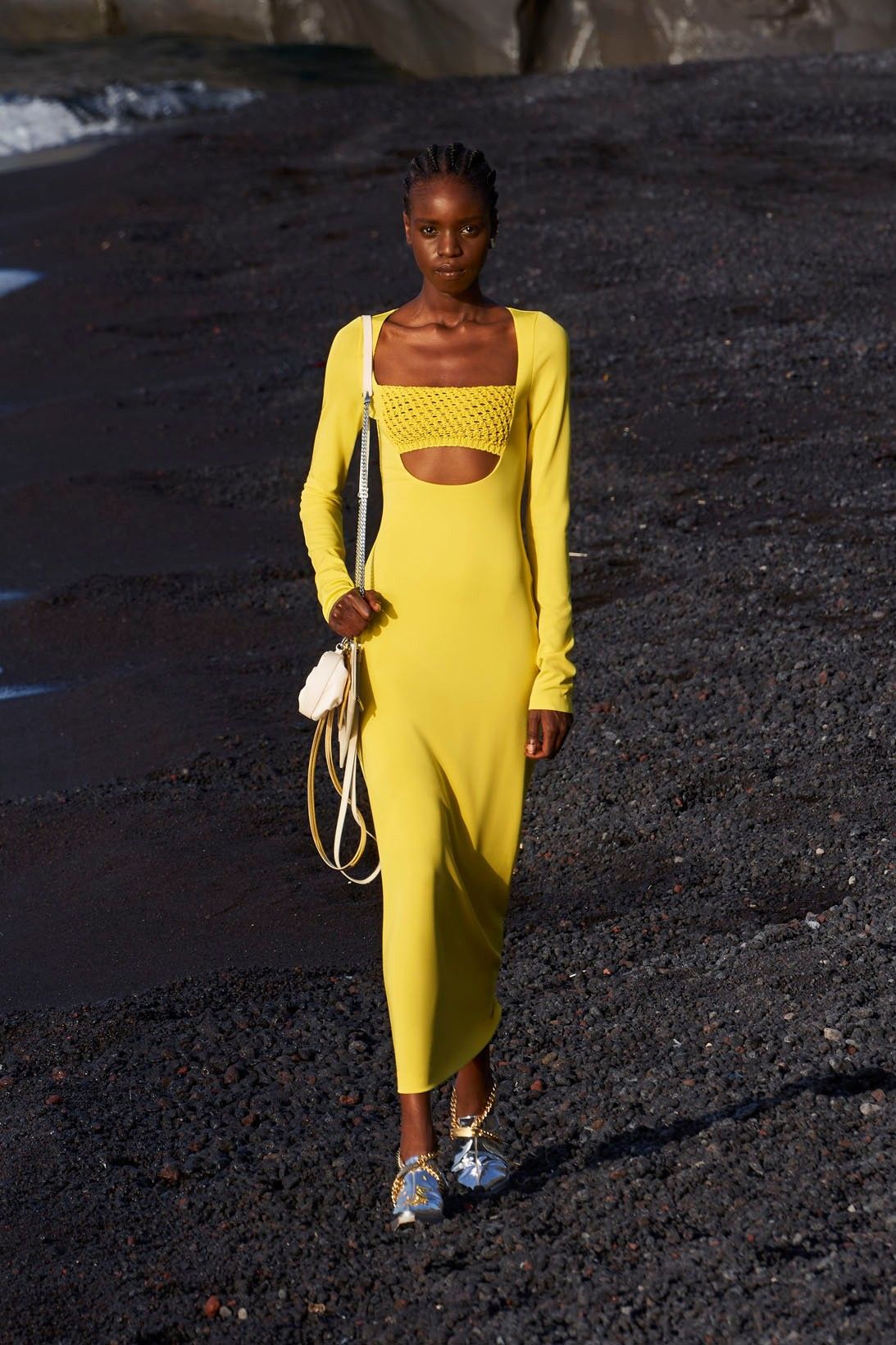 After years of painted carts, town squares with old men playing cards, geraniums and procacious women in lace or polka dresses, Williams' Sicily is almost refreshing and shows that the Mediterranean aesthetic still remains attractive for fashion even if its main spokesperson, Jacquemus, chose to set his show in the mountains this summer. Among the recent collections that had the Mediterranean as a backdrop, there was, in addition to Prada, also the last show of Rick Owens' "Venetian chapter", held on the beach of the Lido; the capsule co-signed by Lacoste and Julien Boudet and also part of the lookbook of Loewe's SS22 collection. If anything can be seen, compared to the "Mediterranean" collections of last year it is perhaps an evolution of the visual language of this aesthetic: if a brand like Jacquemus in recent years had embroidered on a fresh take of the classic maritime-summer iconography, the designers of this season turned for their shows on the one hand to an almost brutalistic reading of the uncontaminated nature of seaside resorts.