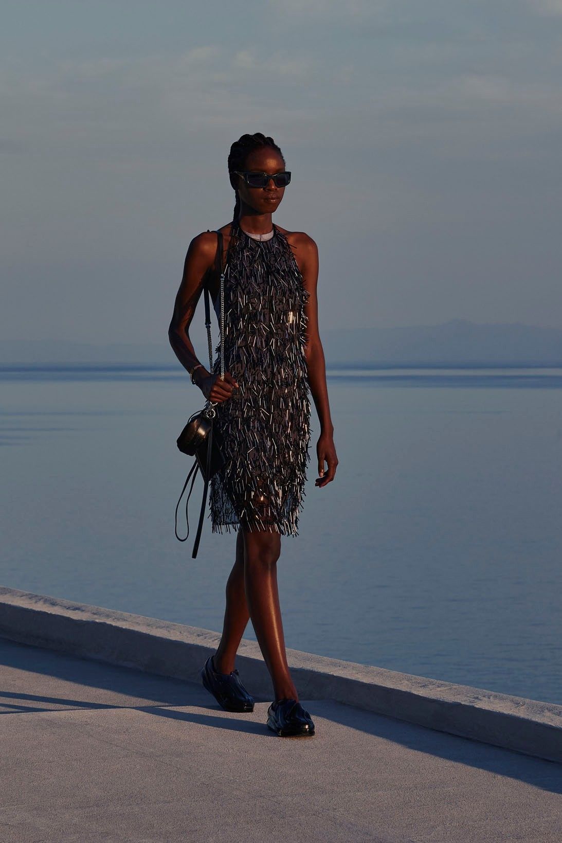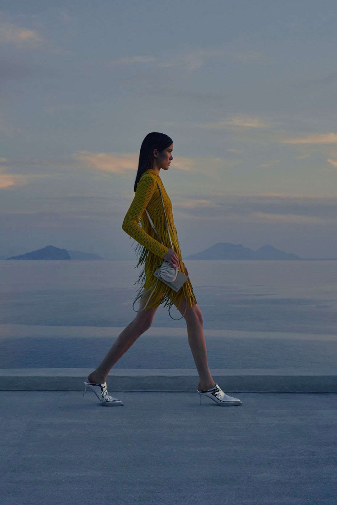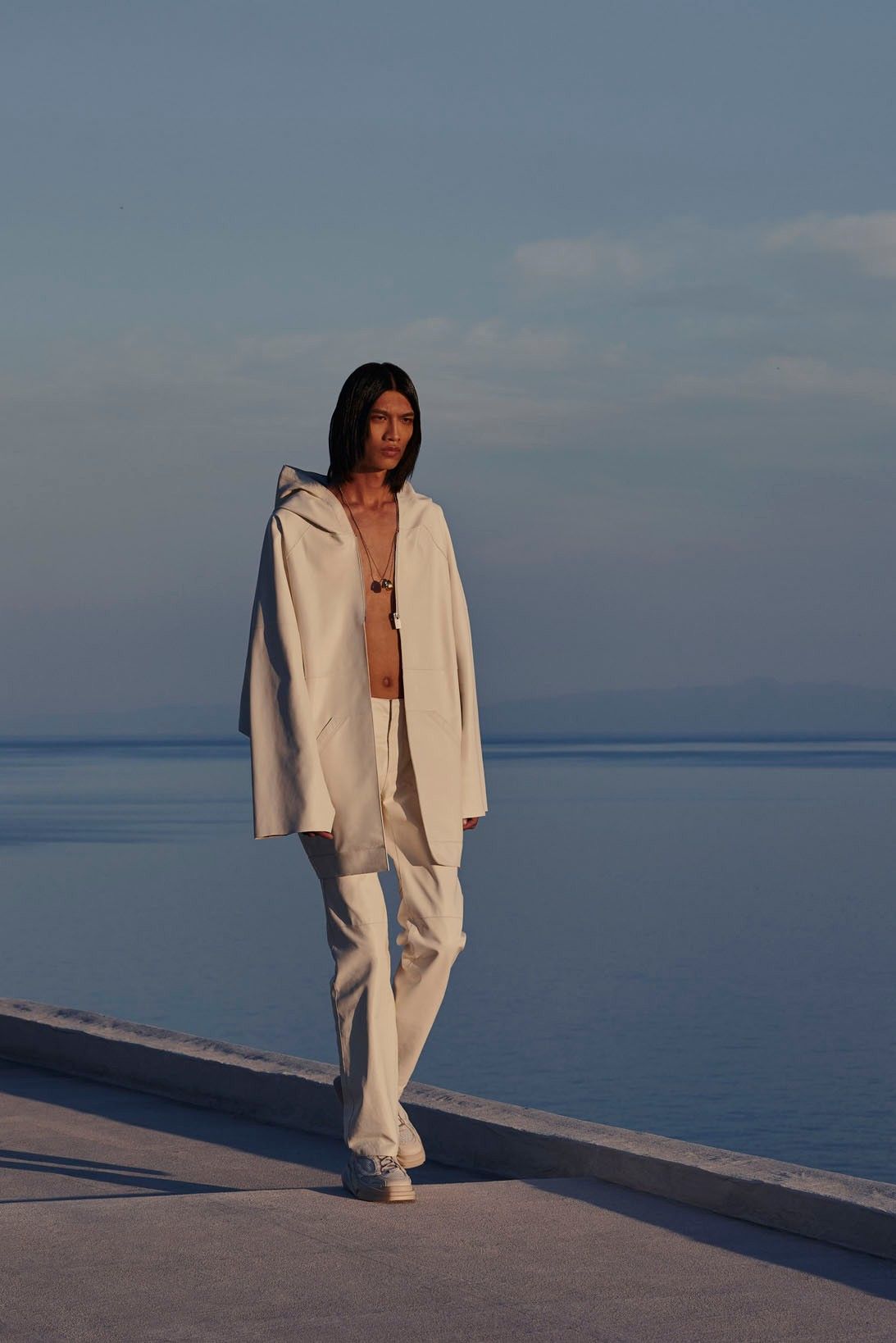 After years of painted carts, town squares with old men playing cards, geraniums and procacious women in lace or polka dresses, Williams' Sicily is almost refreshing and shows that the Mediterranean aesthetic still remains attractive for fashion even if its main spokesperson, Jacquemus, chose to set his show in the mountains this summer. Among the recent collections that had the Mediterranean as a backdrop, there was, in addition to Prada, also the last show of Rick Owens' "Venetian chapter", held on the beach of the Lido; the capsule co-signed by Lacoste and Julien Boudet and also part of the lookbook of Loewe's SS22 collection. If anything can be seen, compared to the "Mediterranean" collections of last year it is perhaps an evolution of the visual language of this aesthetic: if a brand like Jacquemus in recent years had embroidered on a fresh take of the classic maritime-summer iconography, the designers of this season turned for their shows on the one hand to an almost brutalistic reading of the uncontaminated nature of seaside resorts.