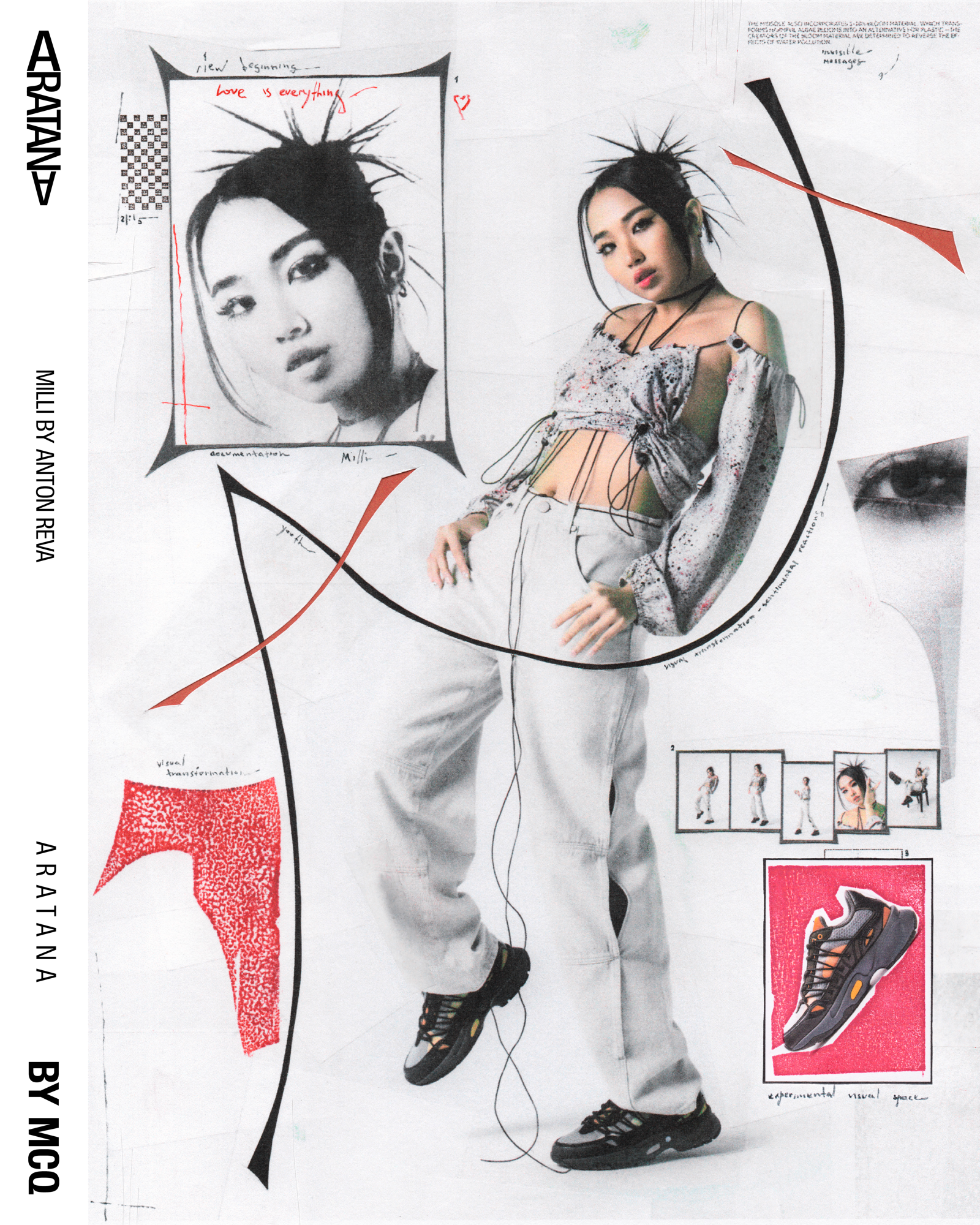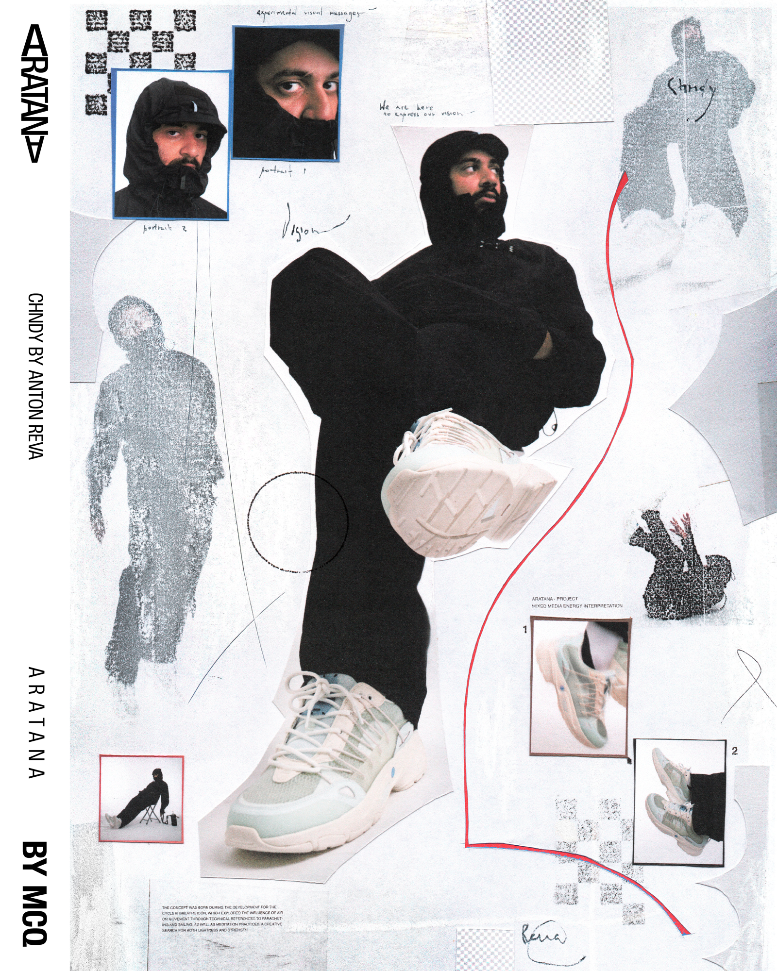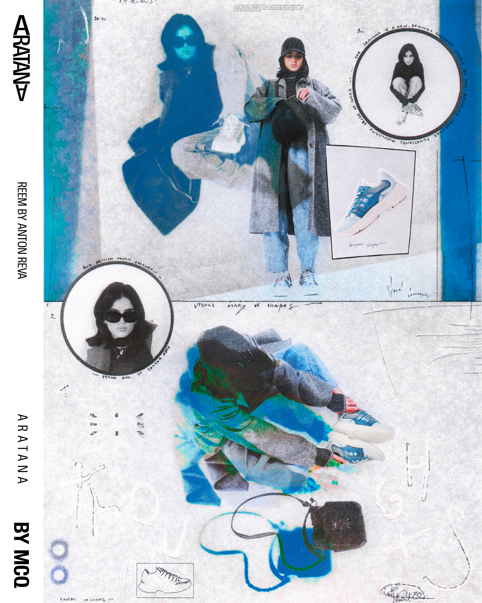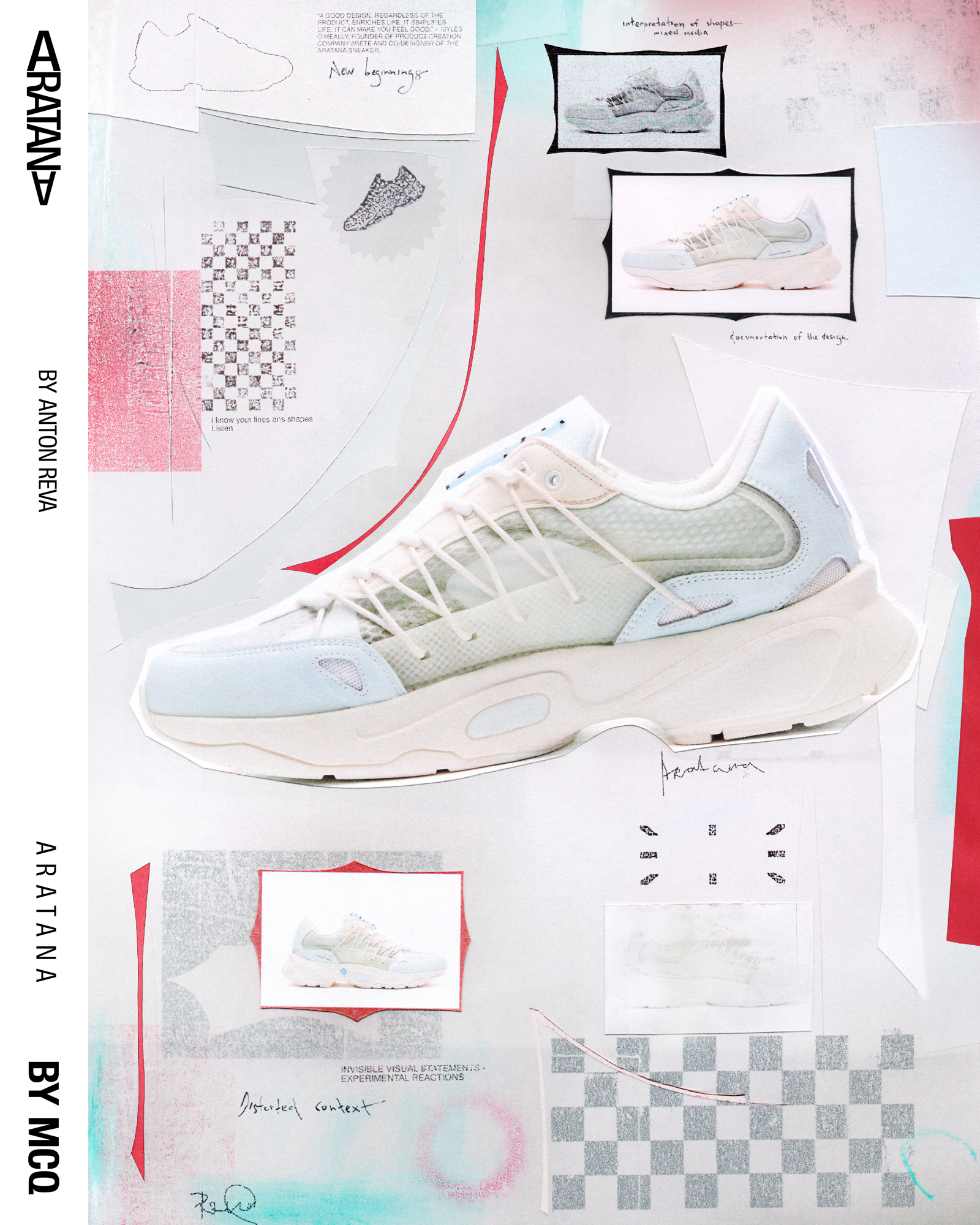 Designed by Myles O'Meally and Slimane Cherif Khaldi, the Aratana extrapolate the idea of the impact of air and aerodynamics on the movement and shape of a sneaker. A study passed through the analysis of the relationship of air with various elements, such as the parachute and the sail, and ended with the creation of a multilayer structure in microfibre suede and mesh capable of giving the shoe a shape that combines the trend of sneakers more chunky with the comfort and quality of MCQ.