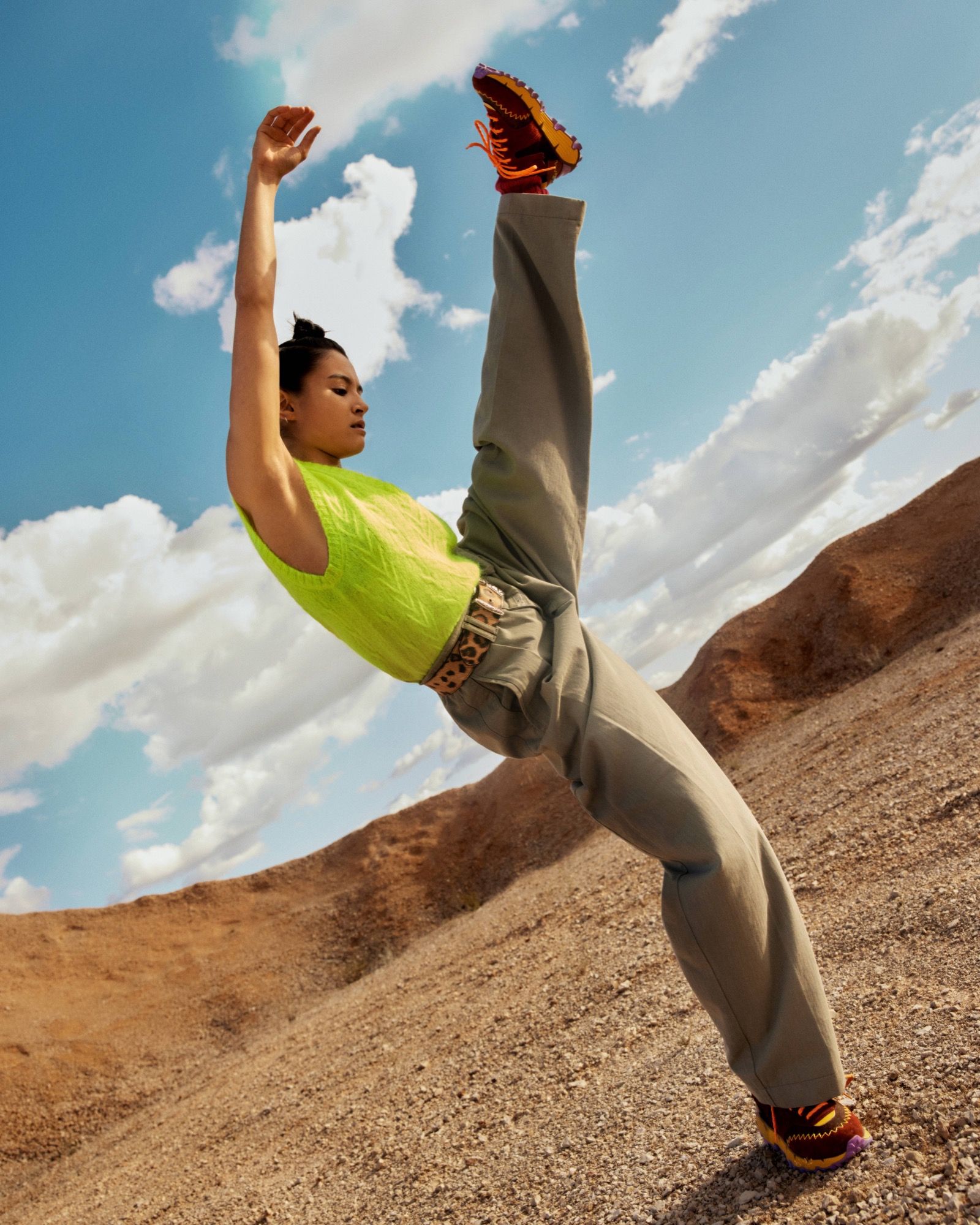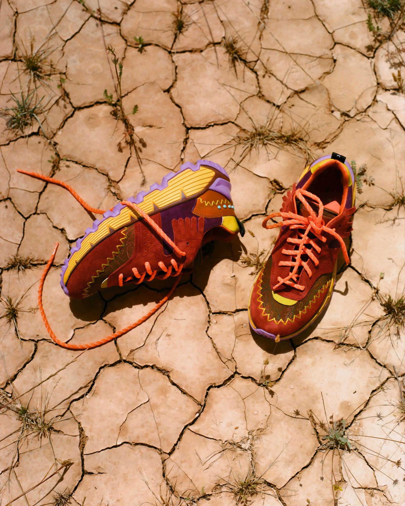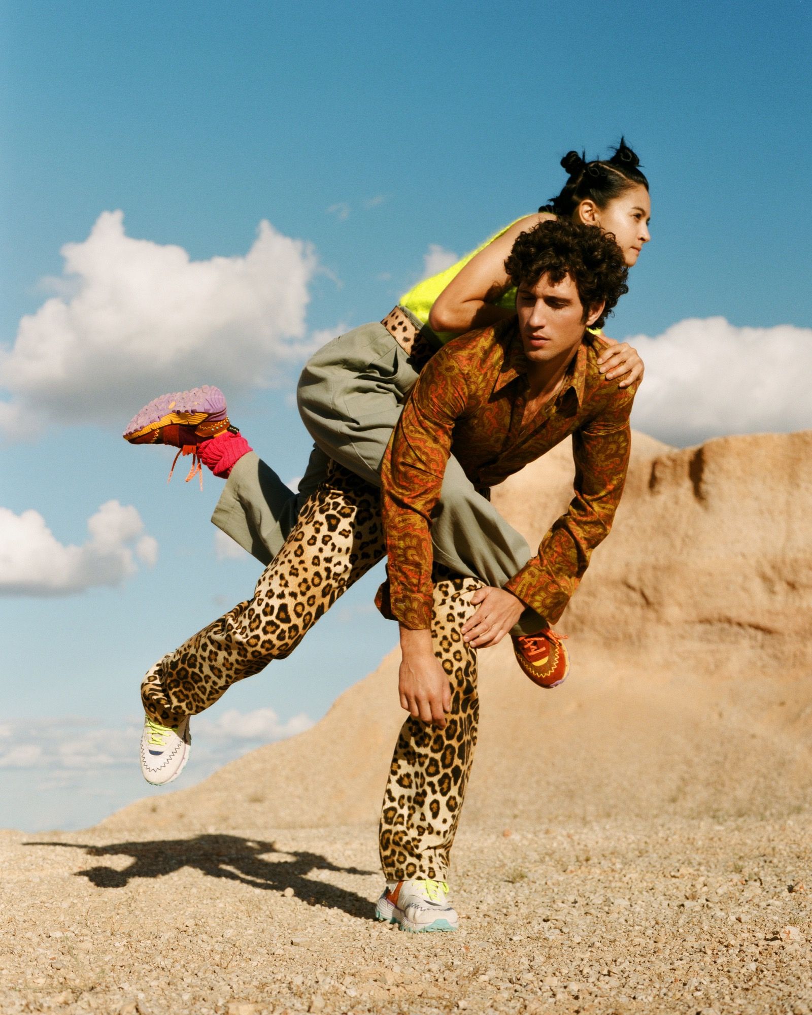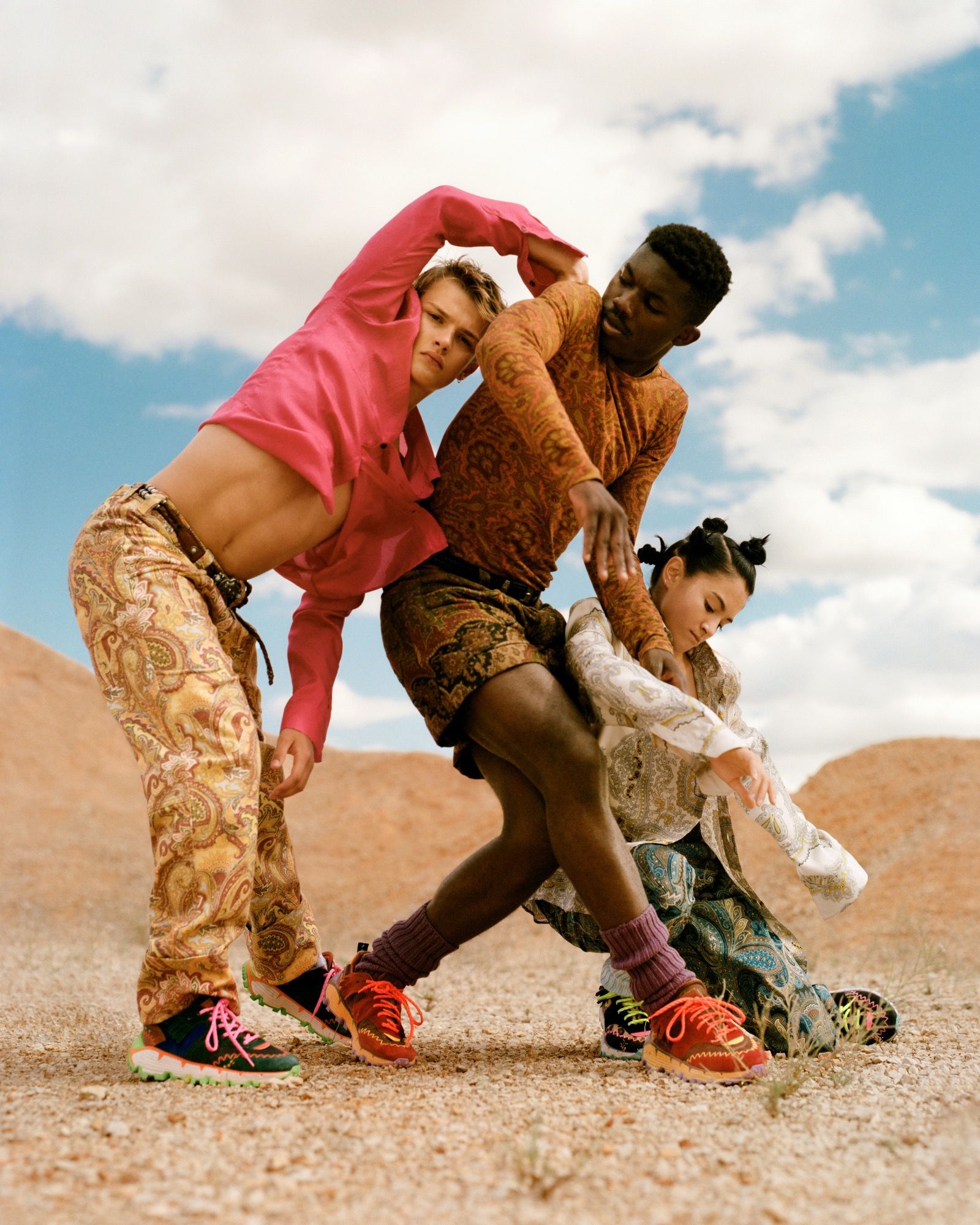 Characterized by a mix of suede, Paisley and jaquard, the sneaker is embellished with some characteristic details, such as fringes, neon laces and studs, in addition to the ETRO logo embroidery on the tongue. The rubber midsole, created with Vibram, gives the shoe a chunky look that enhances its anatomical and dynamic lines. Furthermore, the EARTHBEATs are the protagonists of a campaign created by Francesco Sourigues and David Vivirido, directed by Mario Abadia and the shots by Jorge Perez Ortiz, in which the dancers of the Spanish company KOR'SIA are portrayed in a pristine landscape that represents the connection with the planet evoked by the name of the sneaker.