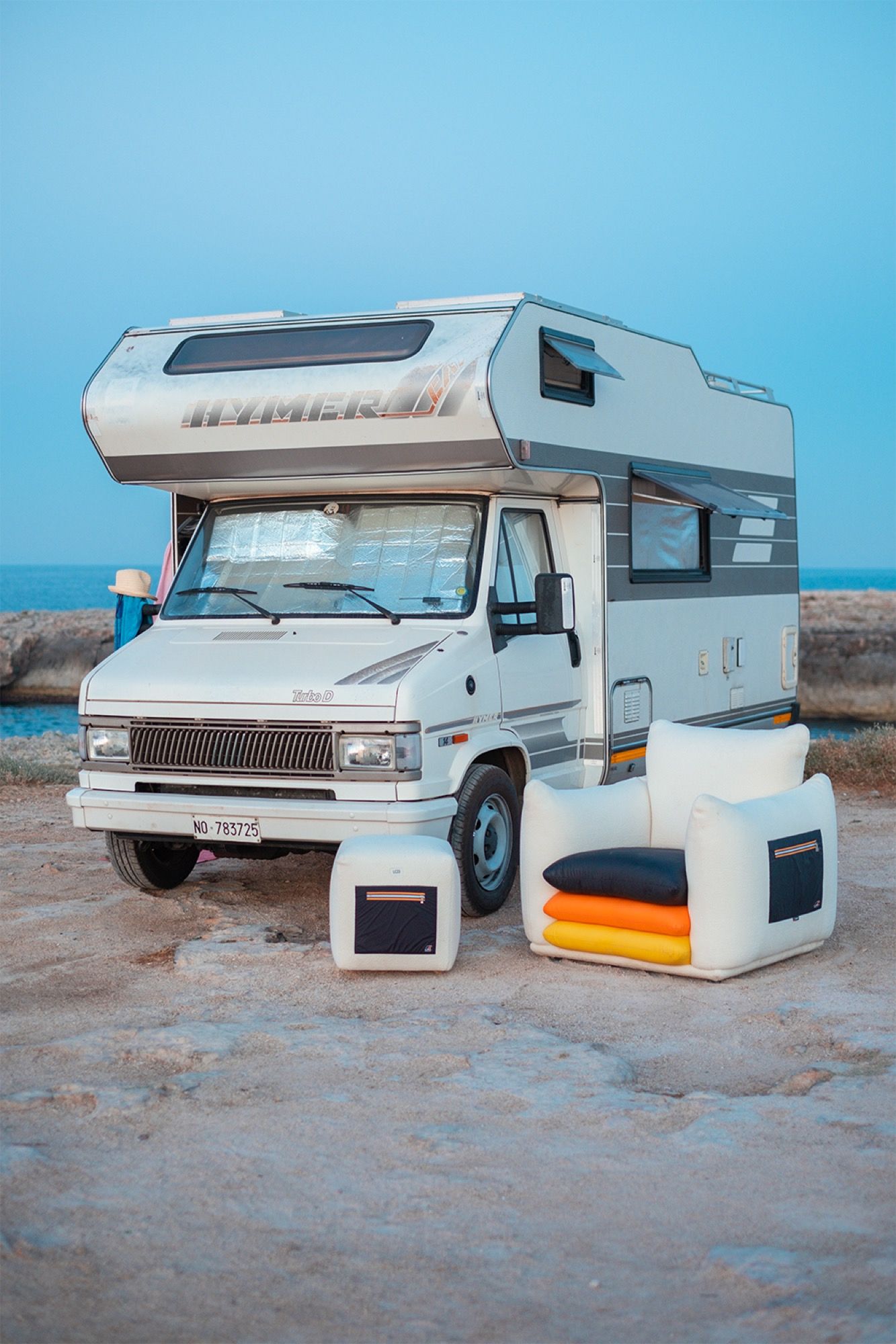 The K-Way x LC23 armchair and pouf are available on the k-way.com online store in a limited edition.