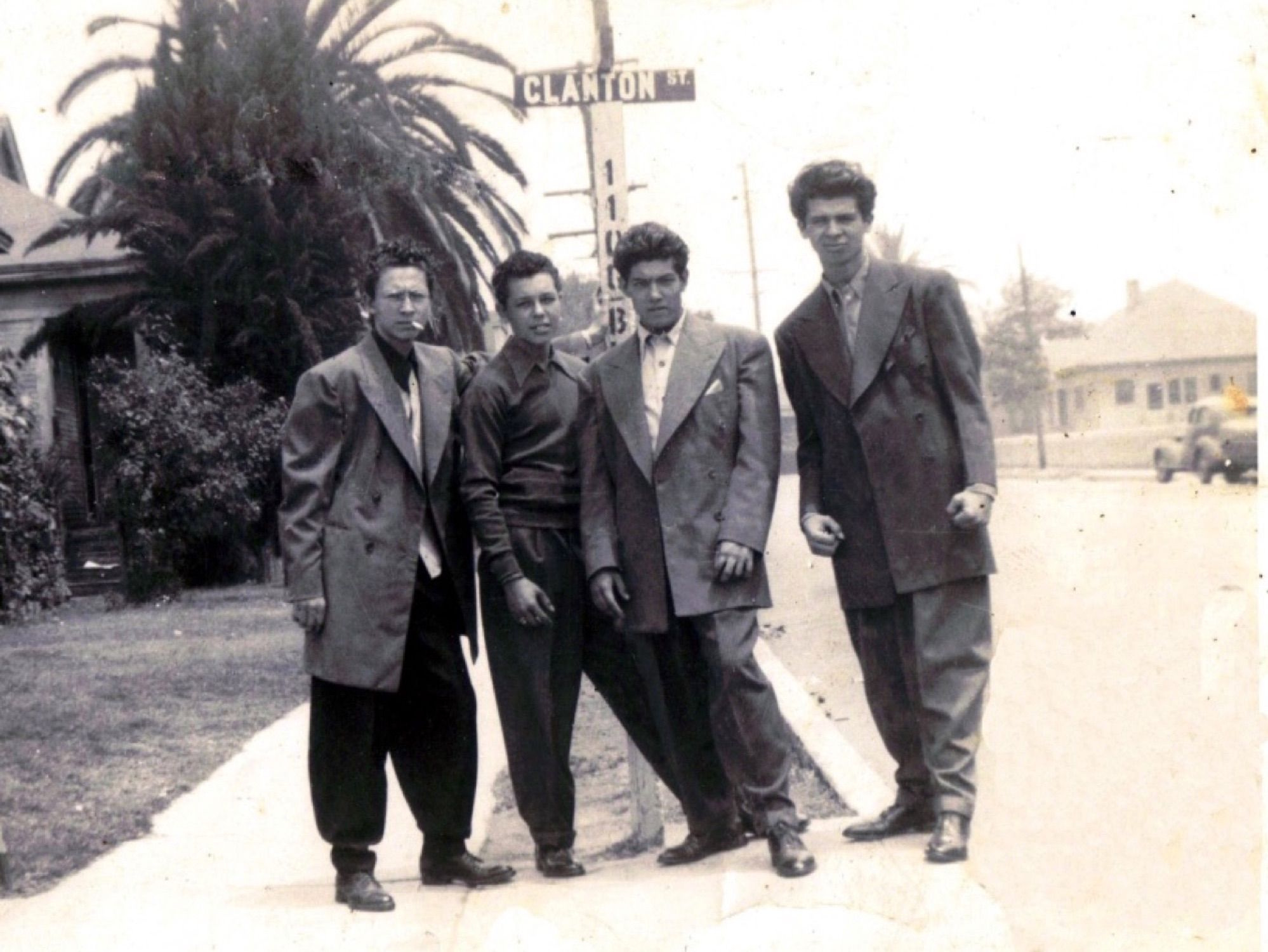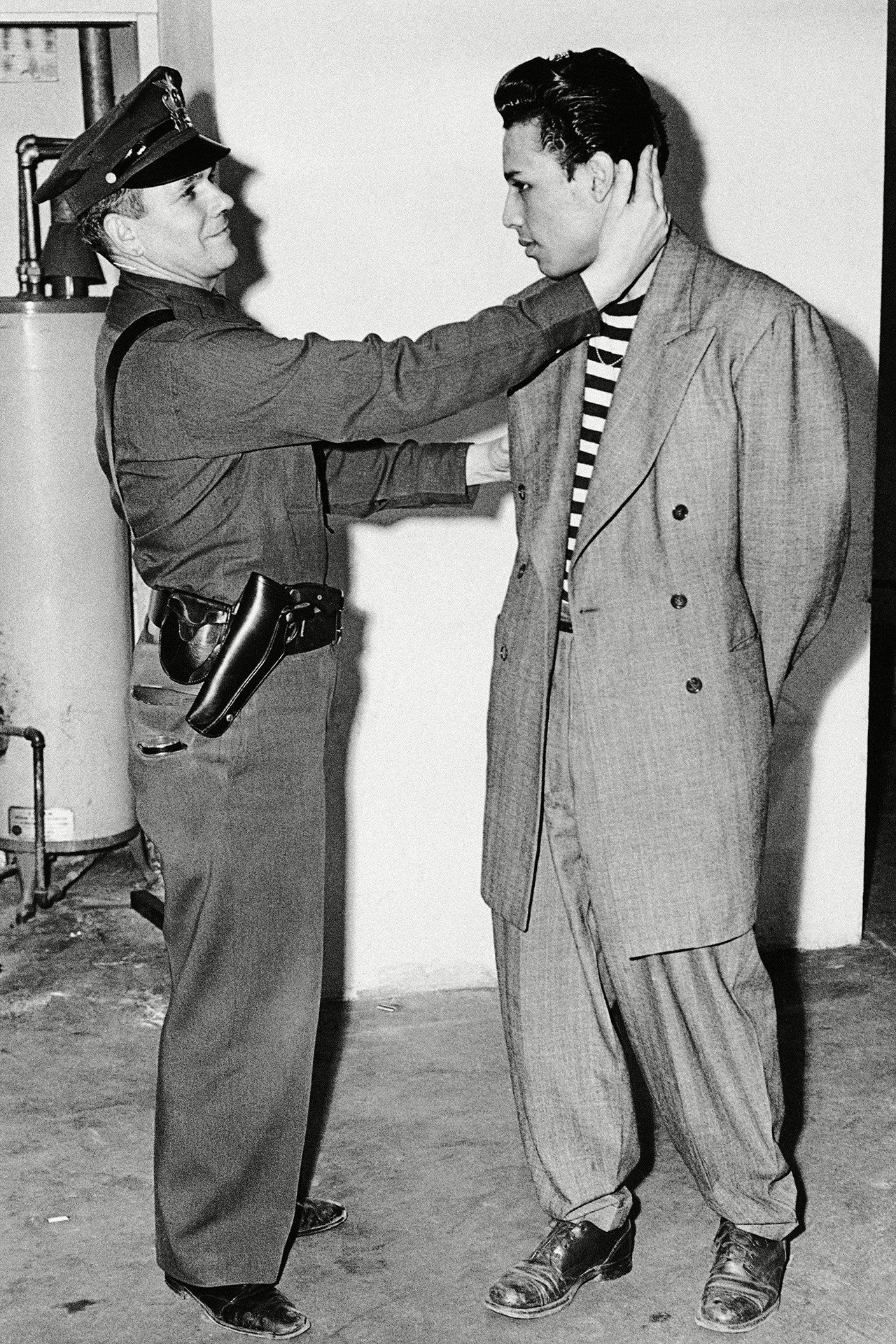 The exact origin of sagging as a style is actually complex, but it always refers to black culture. According to Niko Koppel of The New York Times and Paddy Madison of Menswear Style, the trend originated in American prisons, where inmates were assigned uniforms that were often too large and without belts for suicide prevention. Wearing trousers that were too loose that left the underwear uncovered therefore became a habit that the ex-inmates brought home from prison, making it then enter the stylistic language of the young people of the ghettos and, from there, in hip-hop. But in an interview with NPR, fashion historian at the University of Massachusetts, Tanisha C. Ford proposes a different hypothesis: in the '30s a type of baggy suit called zoot suit became popular in California among African Americans and Latin Americans and the fashion of trousers too wide would therefore derive from the habit of buying second-hand clothes that were then readjusted at home. The zoot suit was associated by the racist rhetoric of the time with street crime, ghettos, dance halls frequented by African Americans and Mexican-Americans – creating the link between oversized trousers and crime that still leads many to associate saggy pants with gangs.