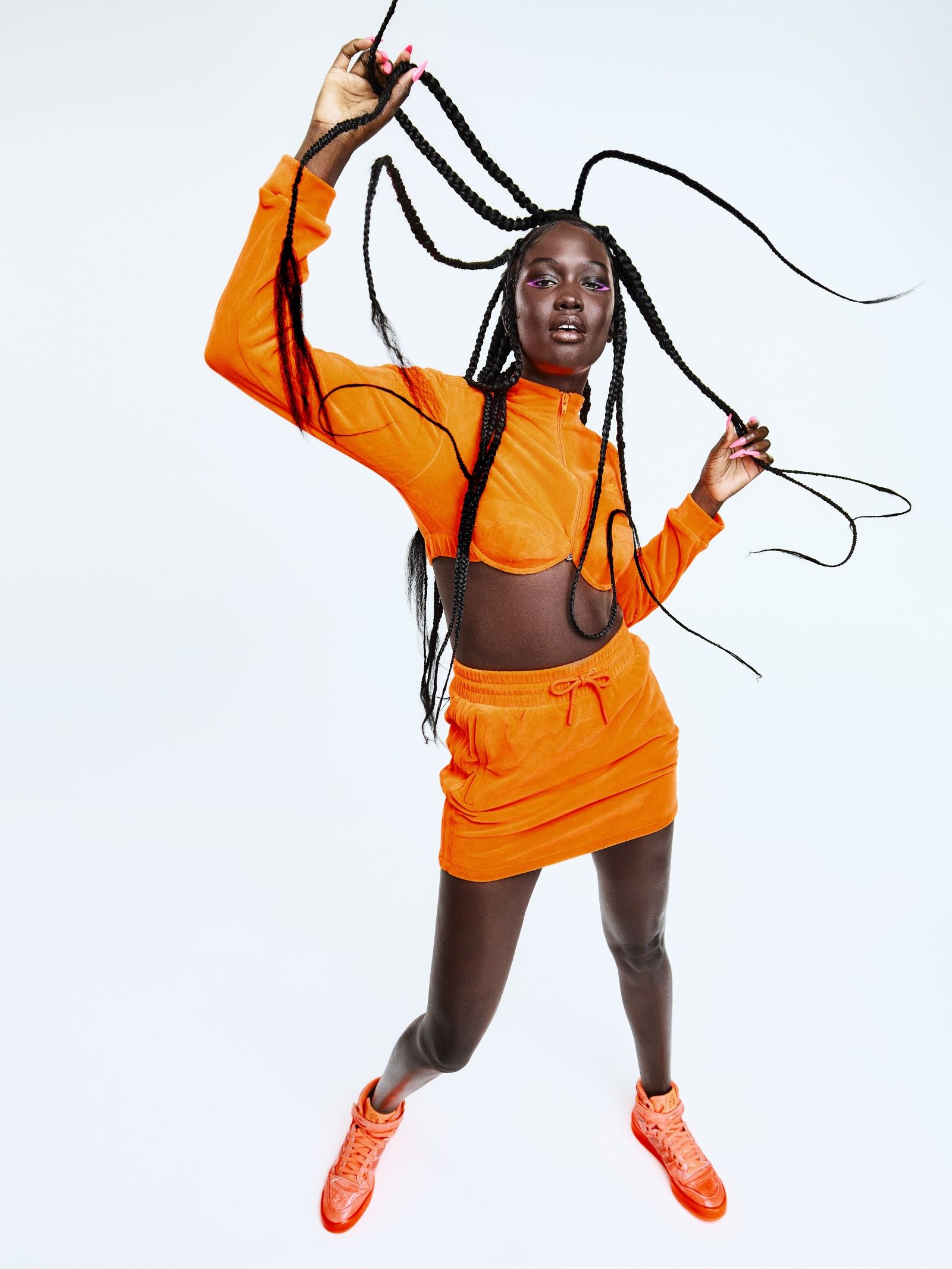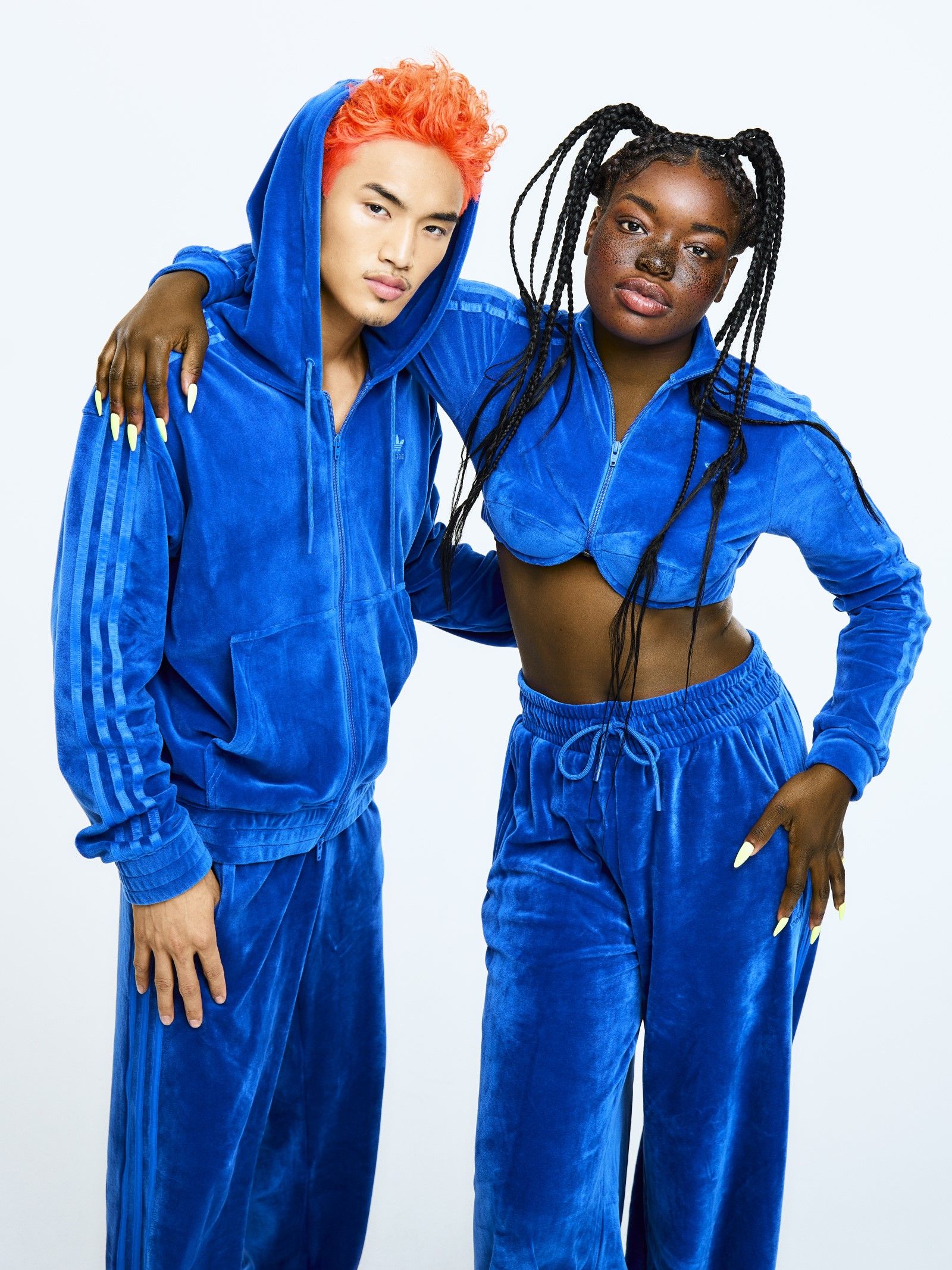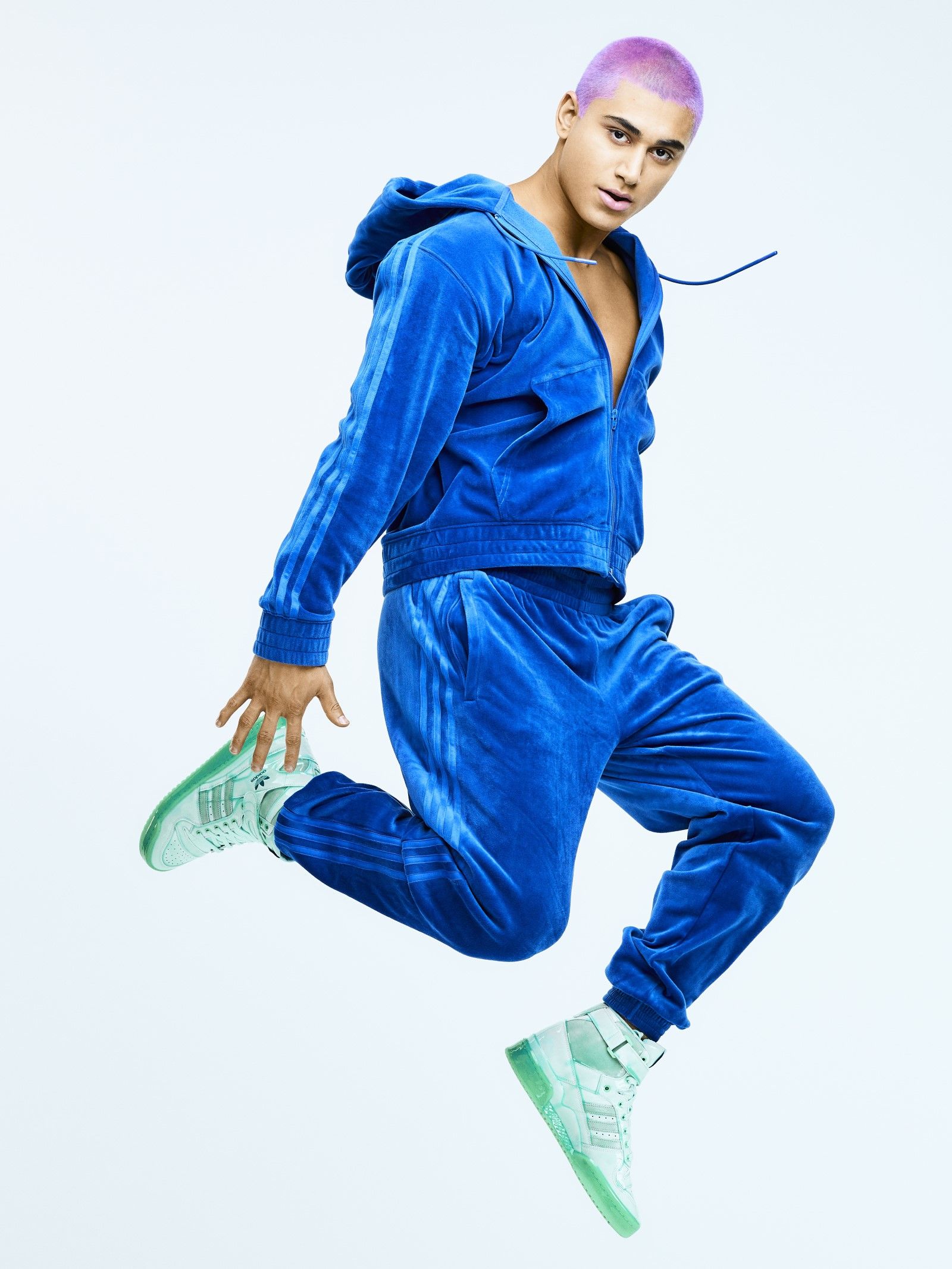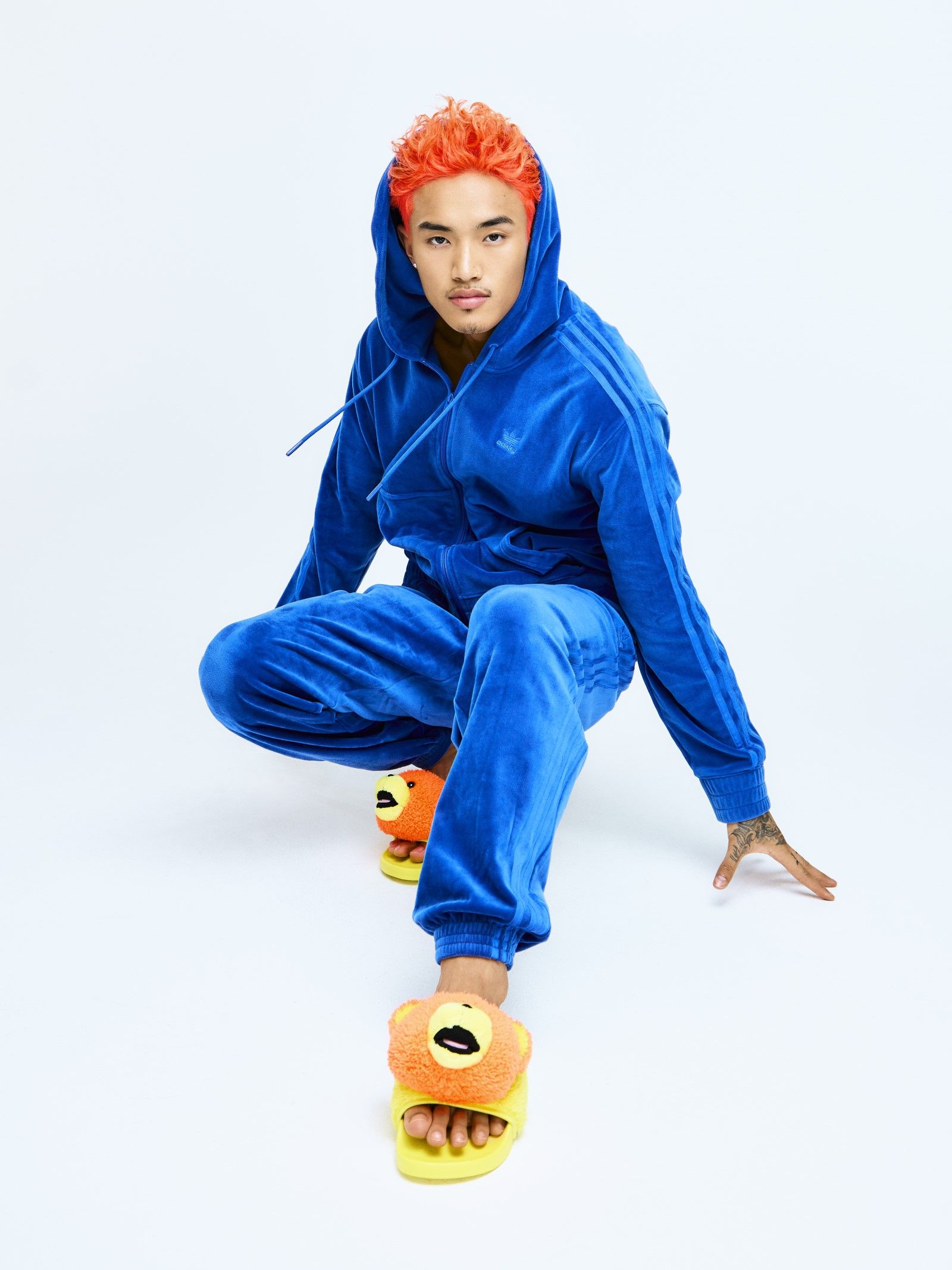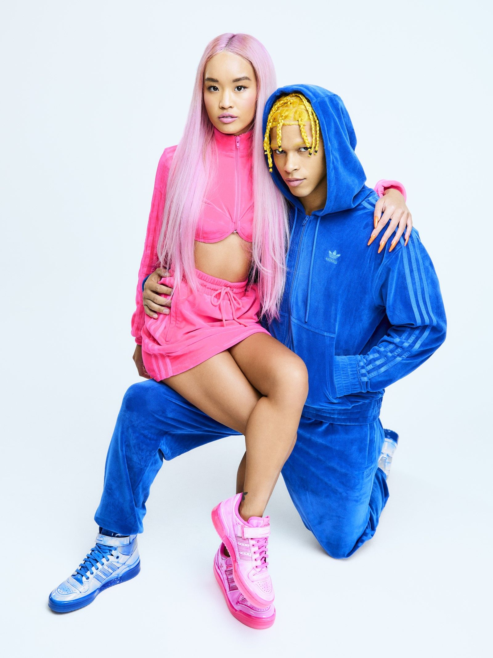 The basis of the collection is made up of velvet tracksuits present in four colorways: Solar Yellow, Solar Pink, Blue and App Signal Orange. In the same shades, new versions of the adidas Originals Forum High and Forum Low silhouettes have also been produced, whose upper has a glossy coating reminiscent of candy.