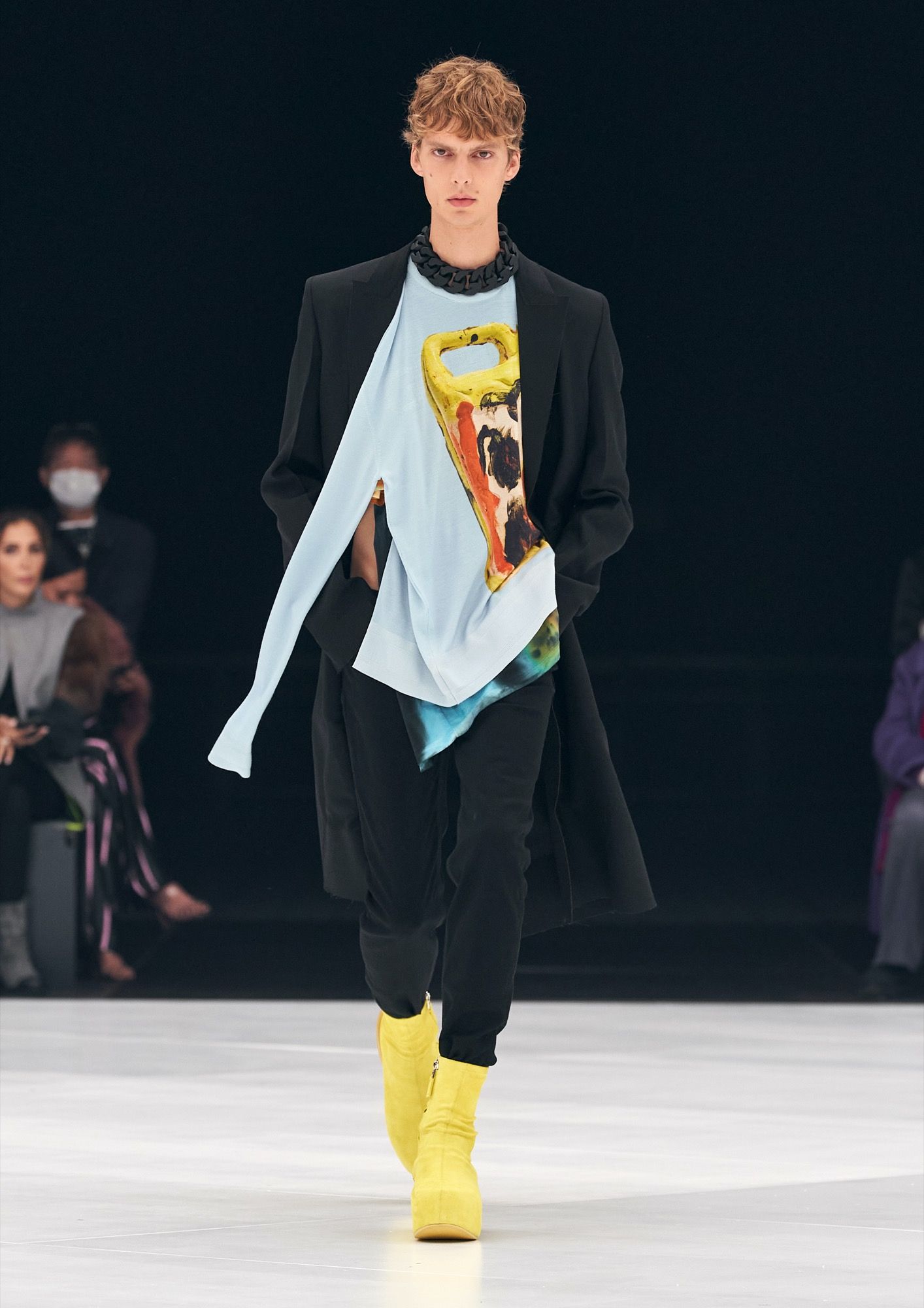 The collection is a mix of luxury and utility: the silhouettes for women and men explore the tension between extravagance and discipline. Material experimentation and silhouette construction combine with an intense contrast in the clothing. Raw edges with clean cuts add a sense of modernity, delicate broderie anglaise creates contrast while tulle and transparencies add lightness.
