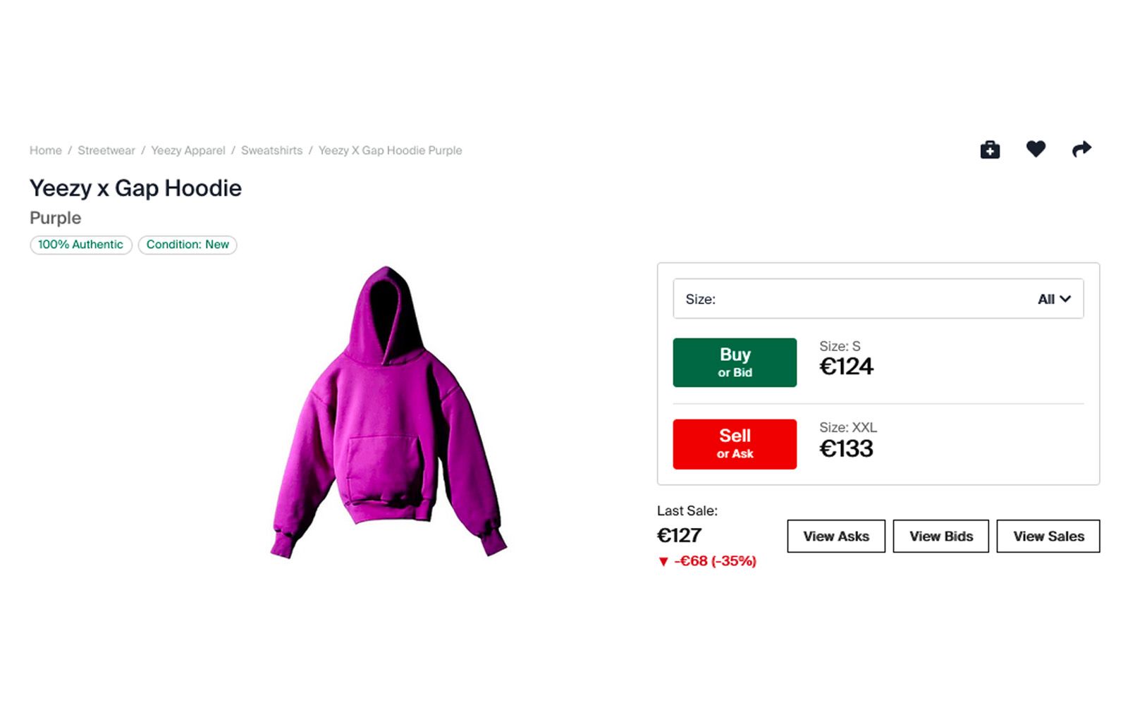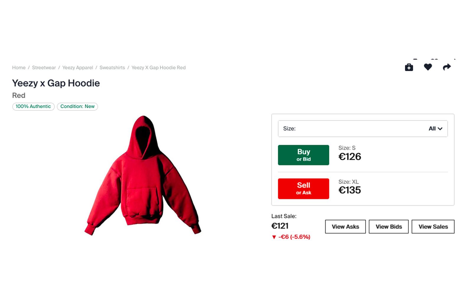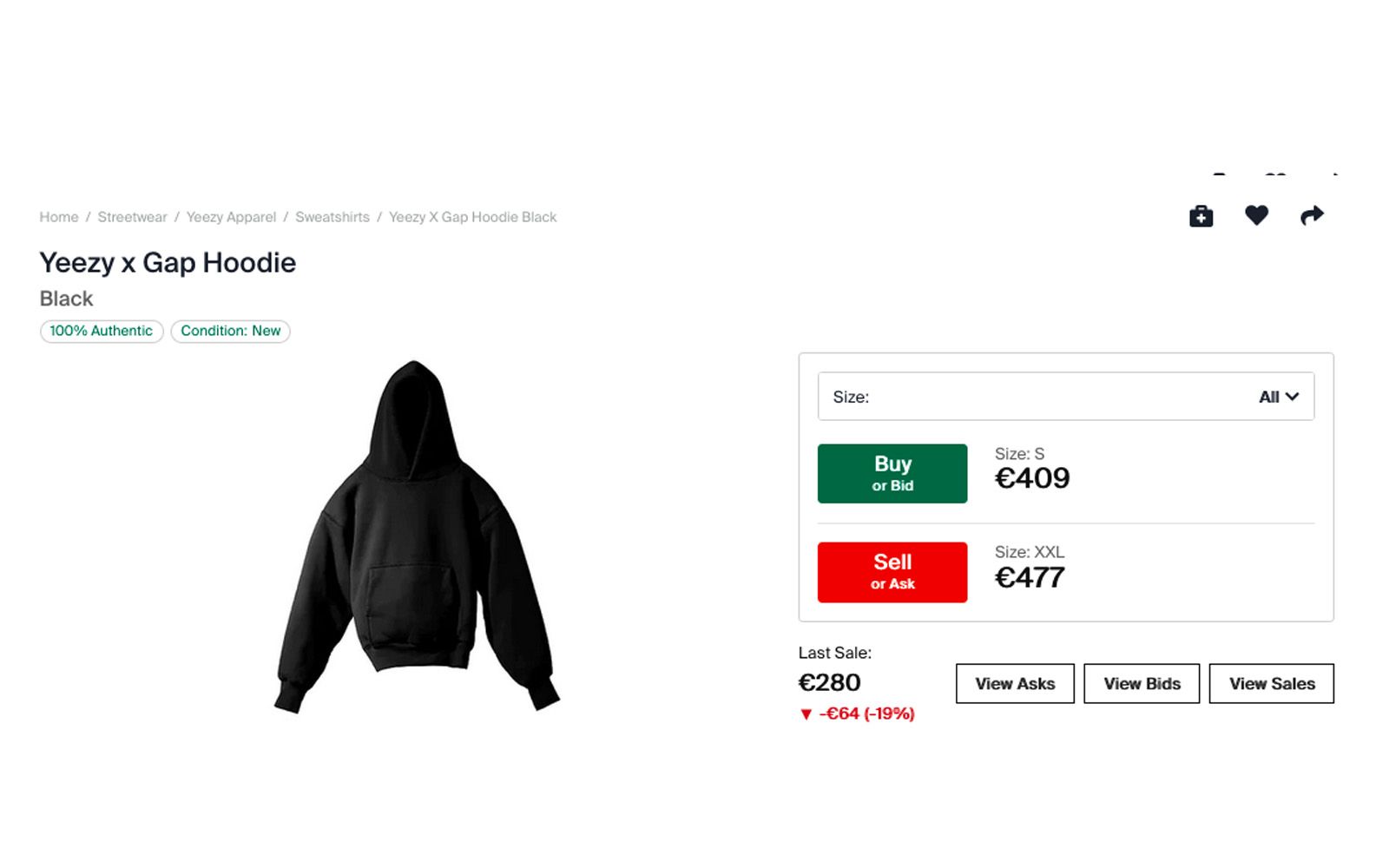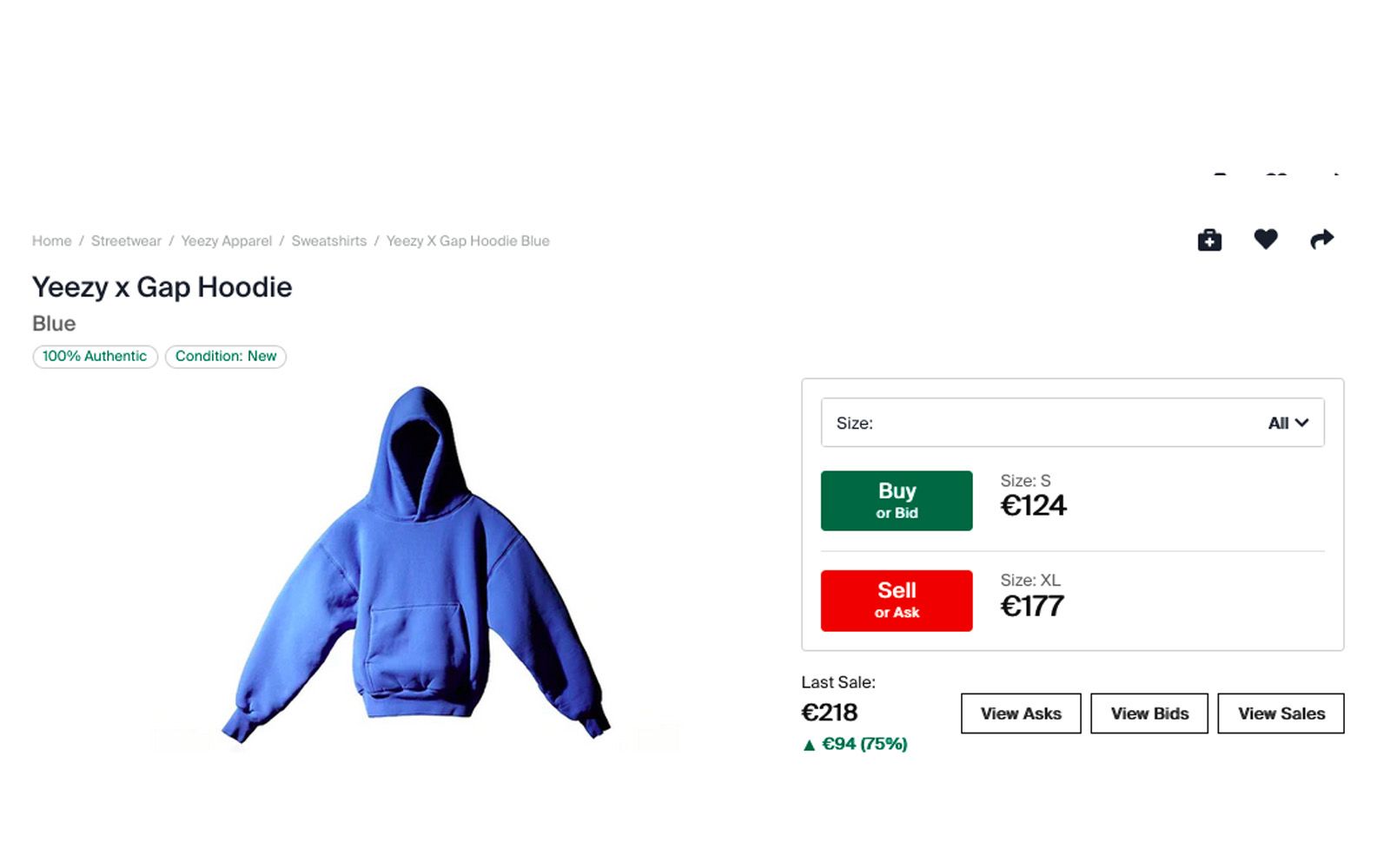Despite lukewarm reviews a few weeks ago, it seems that success for the hoodies part of the Gap-Yeezy collab has finally arrived. On StockX, the hoodies are on sale for almost double the retail price, with larger sizes such as XL and XXL among the most sought-after by shoppers on the resell site as a response to the "controversy" over the overly cropped fit seen in early reviews of the hoodies that arrived online. According to StockX senior economist Jesse Einhorn telling BoF, the Yeezy x Gap hoodies are currently selling as well as the Yeezy 350, one of the most popular silhouettes from the collab between Ye and adidas.