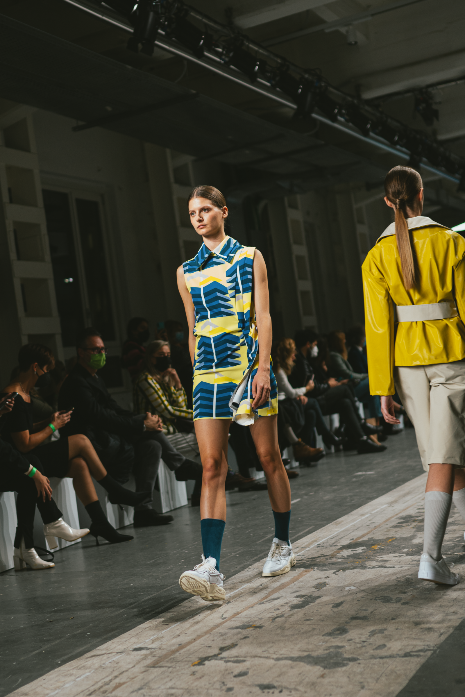 «Sustainability is the main focus, as well as the variety of fabrics which is a reflection of the diversity of individuals that walk the street. The title of the collection is Personas and this relates to how some aesthetic identities inform us stylistically but also in how some certain social situations we might adopt a persona in order to portray a certain social image».