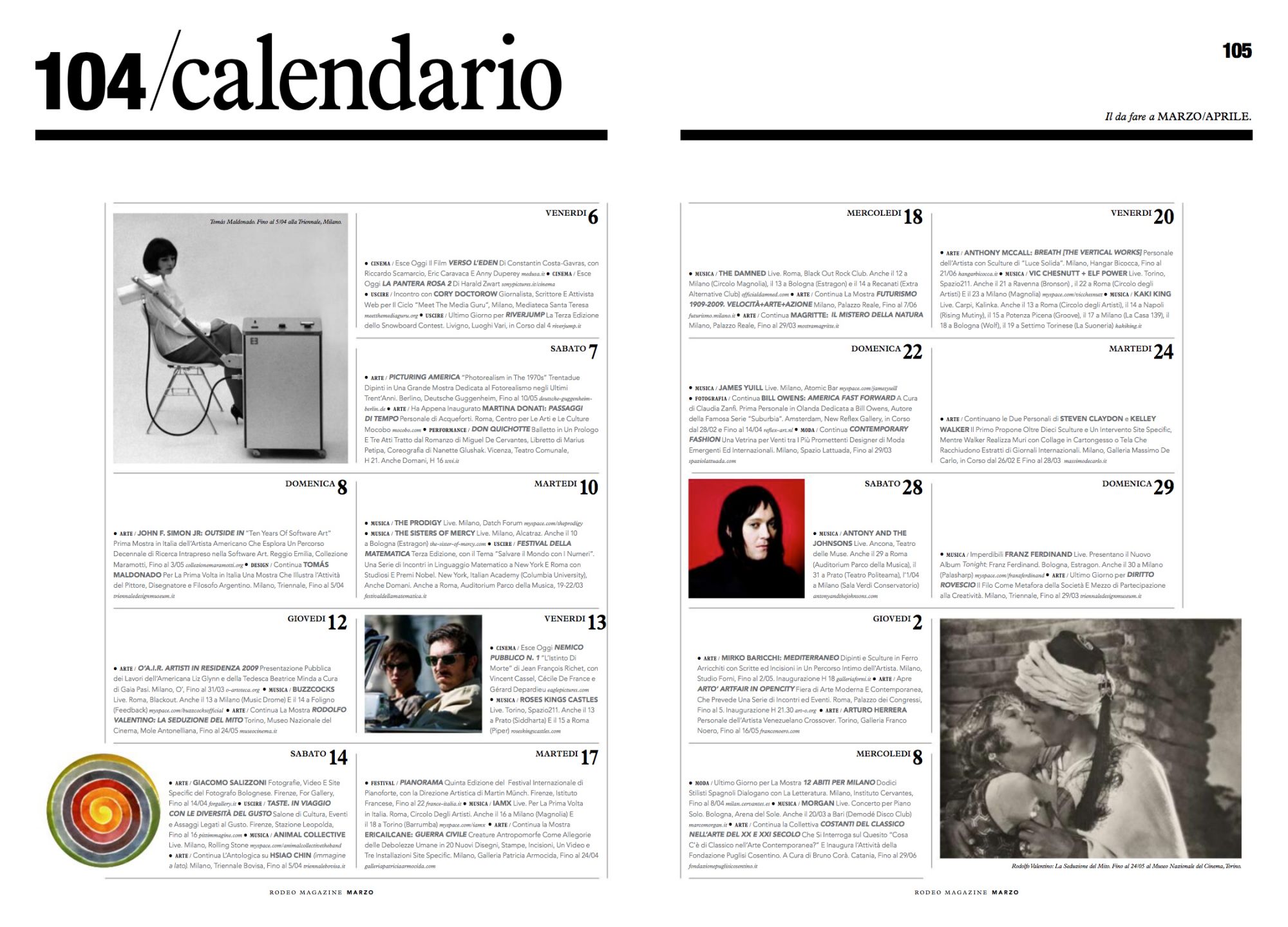 Rodeo Magazine Art, architecture, cinema, literature and fashion, lots and lots of fashion. The articles and photographic editorials of Rodeo Magazine made an entire generation of modern stylists (Lotta Volkova, does that ring a bell?), photographers and creative director’s dreams, including cover stars and special features. Distributed throughout Europe, the monthly magazine established itself as a showcase for ready-to-wear and pop culture in general, dedicated to providing a free and critical point of view on the initiatives of brands, designers and creative minds of the time, with the aim of celebrating a well-defined aesthetic and provoking conscious reflection in readers. Among the favorite contents, it is impossible to forget the Calendar.