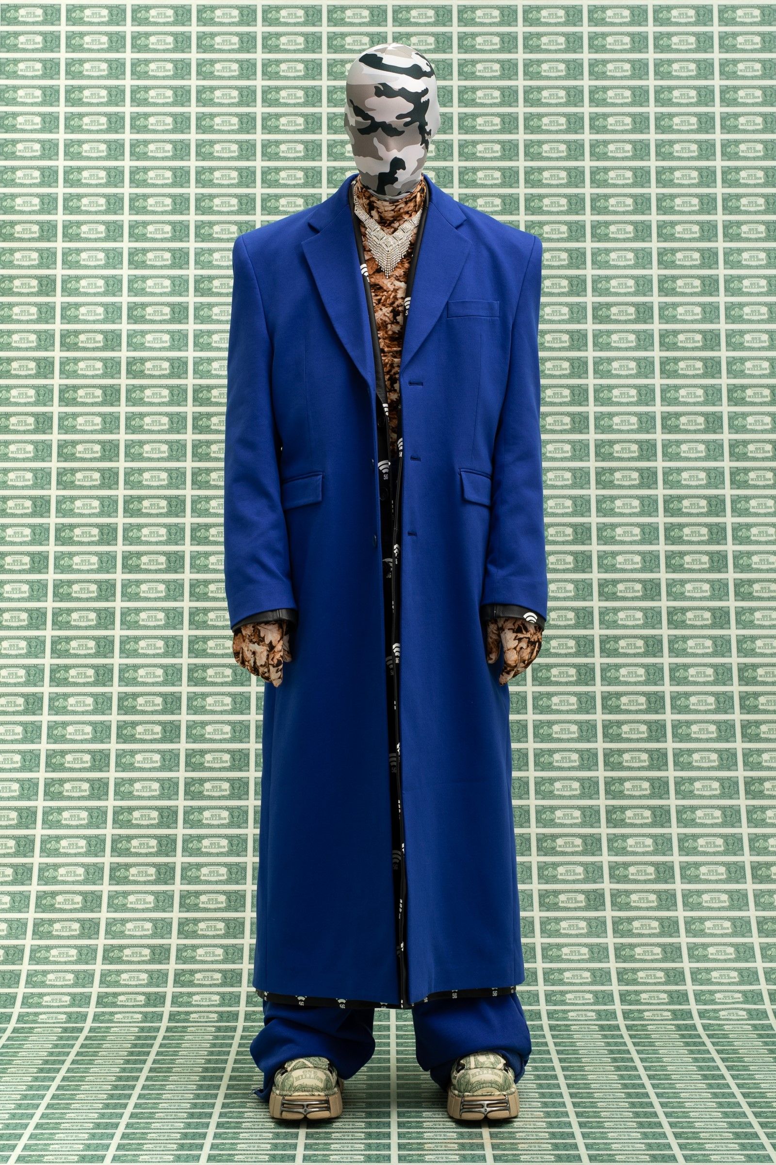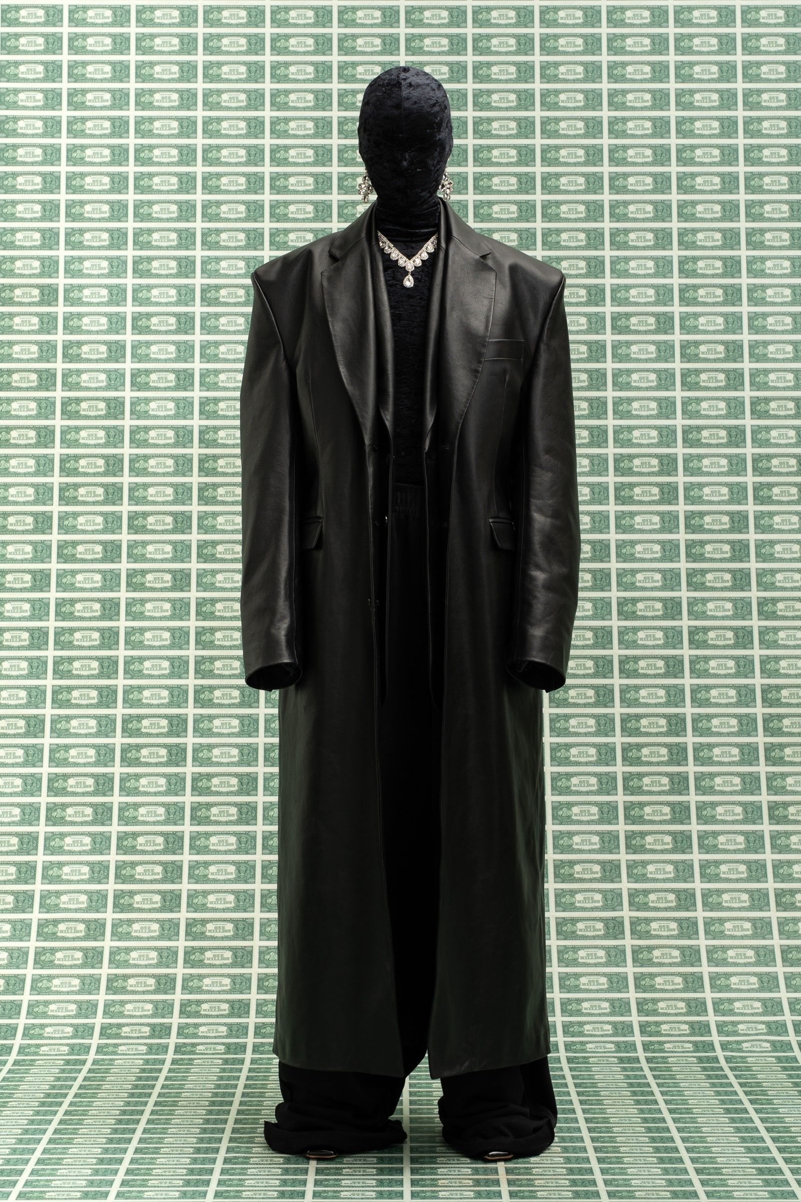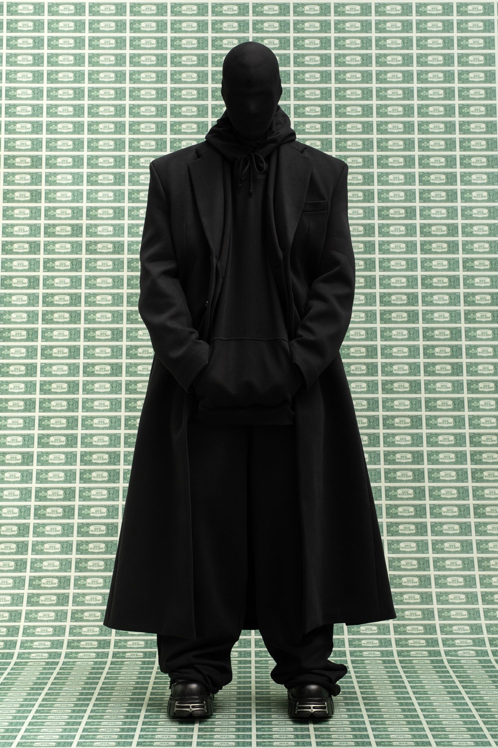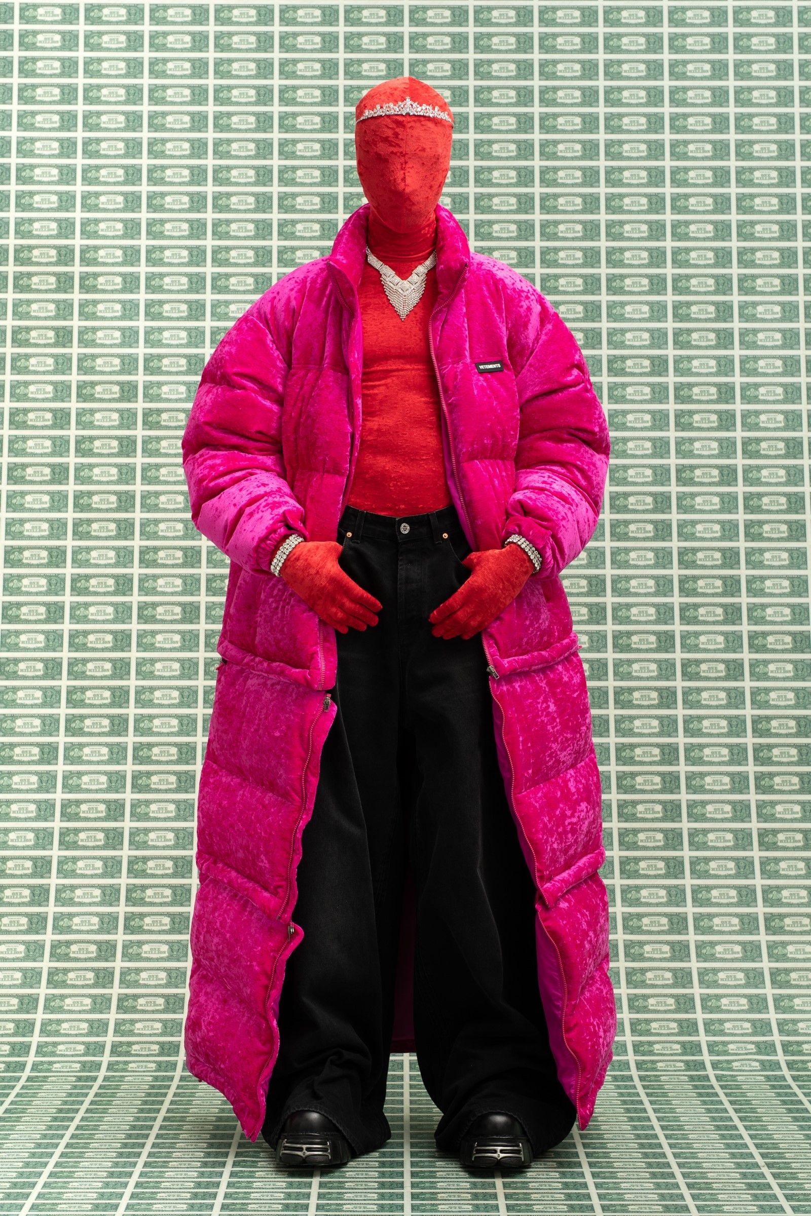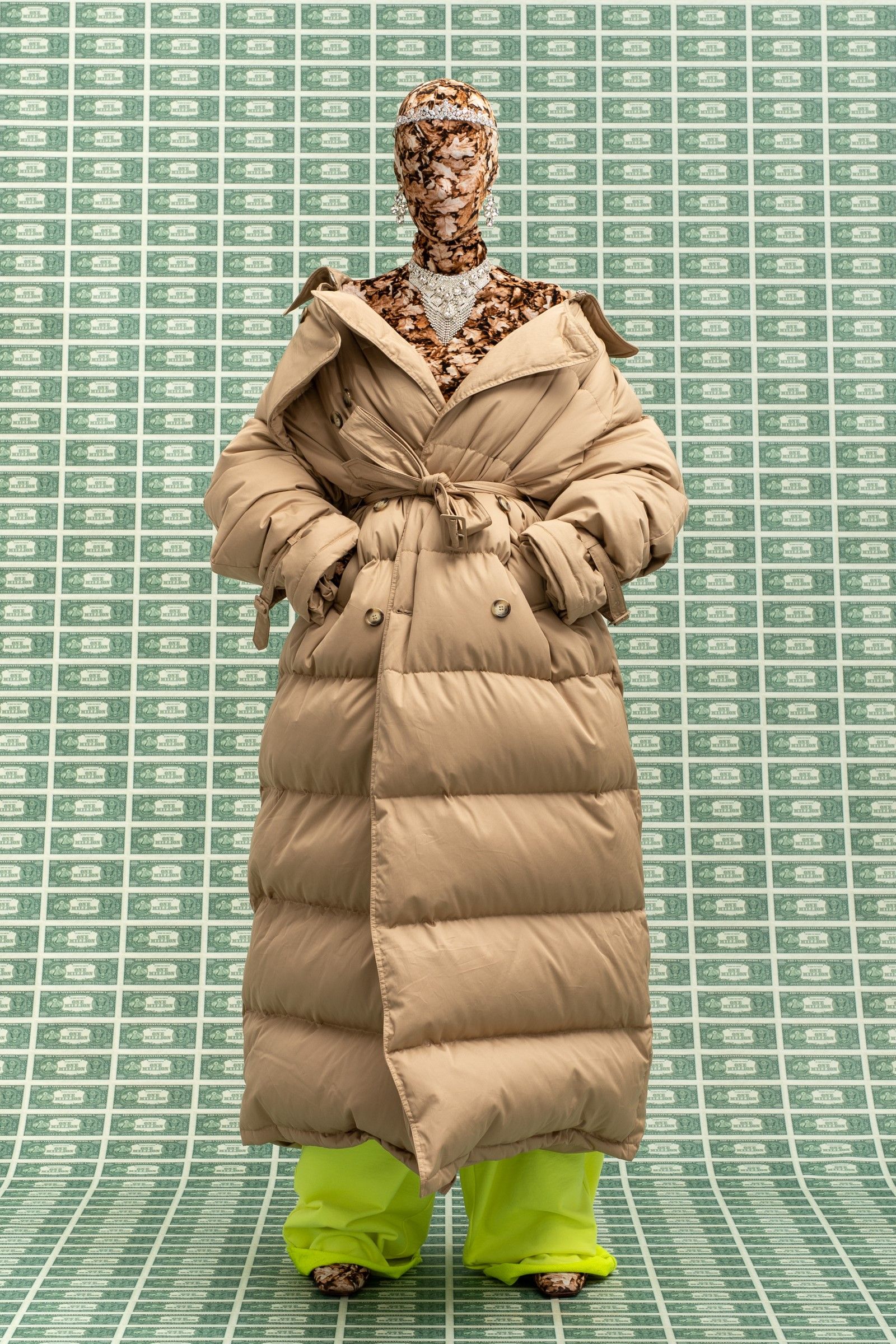 The brand therefore aims to create «high fashion for the era of 5G high speed internet» and therefore contemporary, observant of the most recent phenomena of global culture such as, for example, conspiracy theories, Bitcoin and OnlyFans - but also bearer of a new idea of savoir faire in which technology such as 3D pattern modification, the modularity of clothes and the fusion of different categories together as it happens with trench coats that have the inside of a down jacket. A very high purpose on paper that, however, translated into a lookbook, becomes a kind of compilation of the greatest hits of Demna Gvasalia, former creative director of the brand, not to mention a very cheeky copy of what Balenciaga has come to be this year: the quilted mega t-shirt, the "hourglass" jackets, the tight velour tights or the coats draped and open around the shoulders and the bathrobe-coat are taken straight out from the latest couture show of Balenciaga; many of the other 72 looks, on the other hand, recall Demna's stylistics very closely – although there are exceptions.