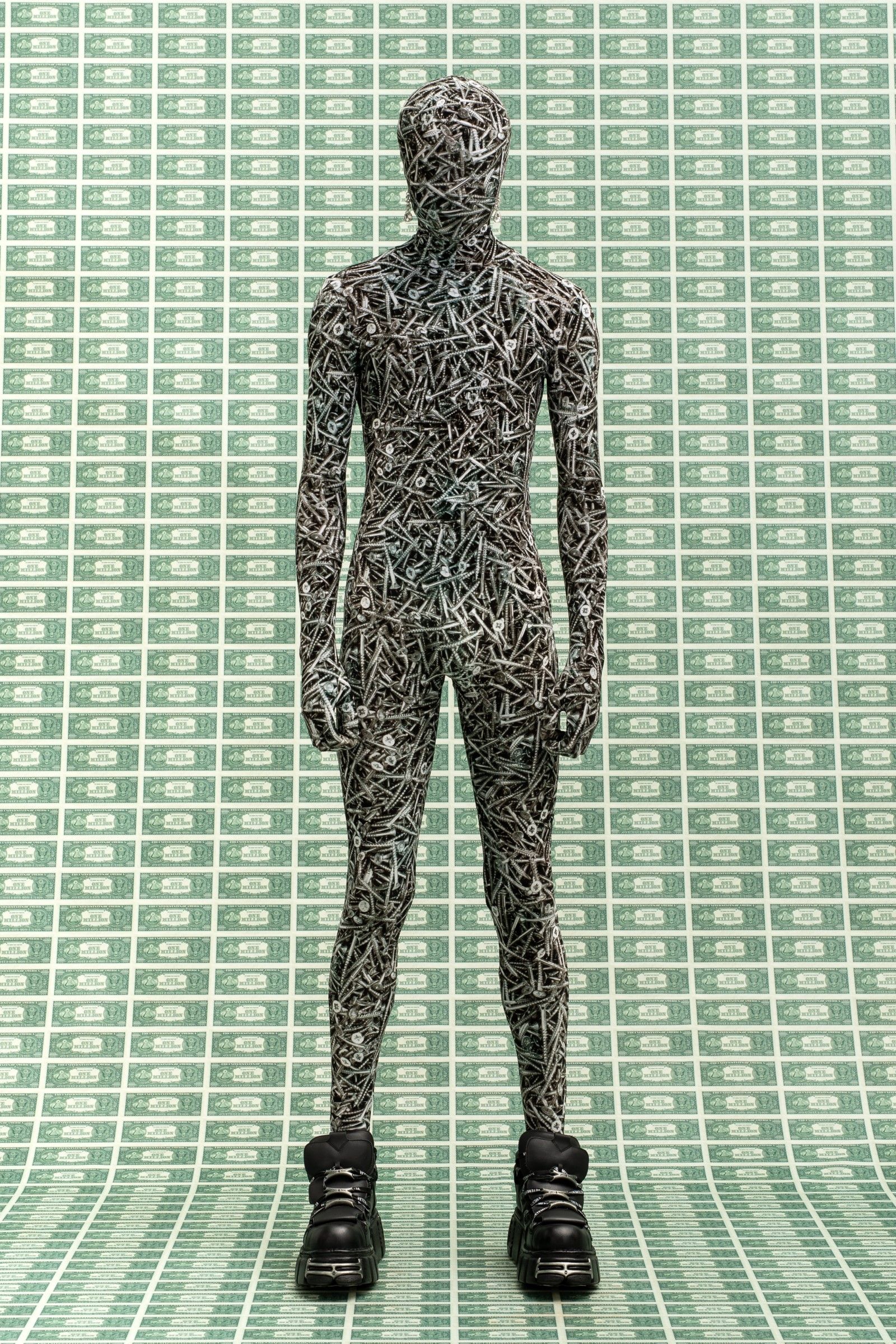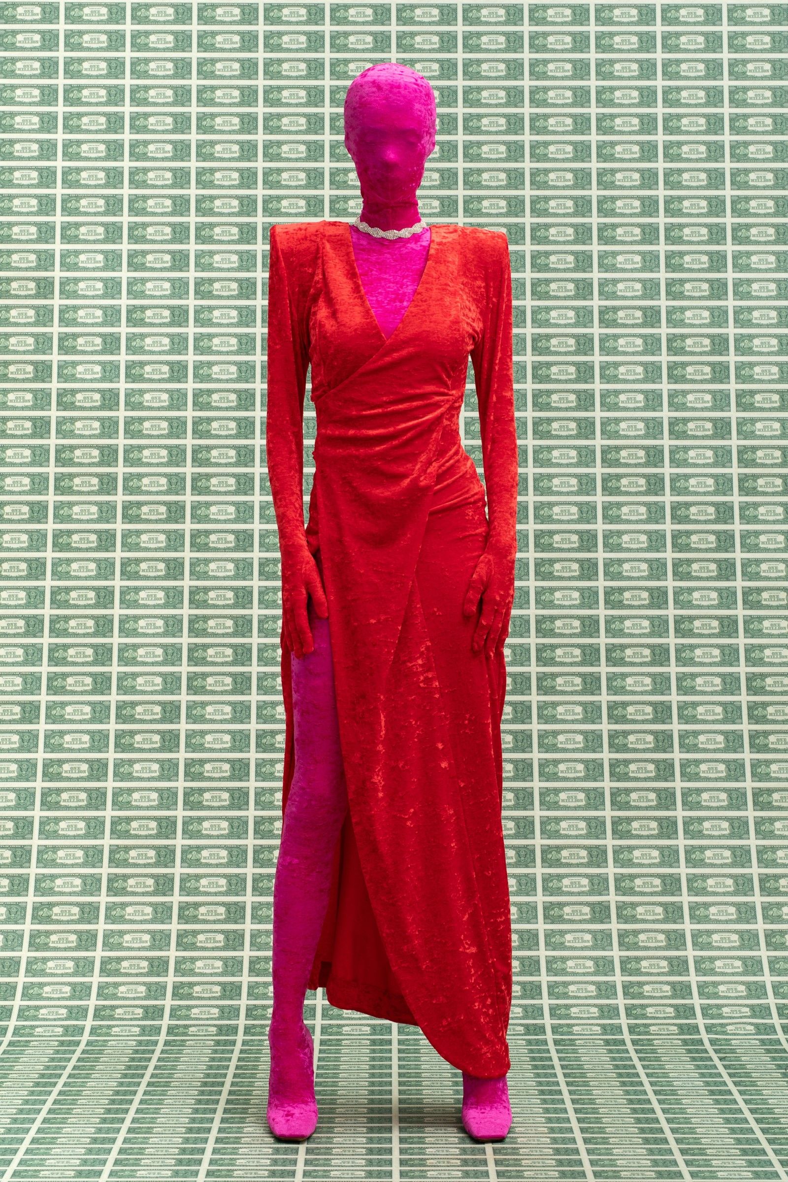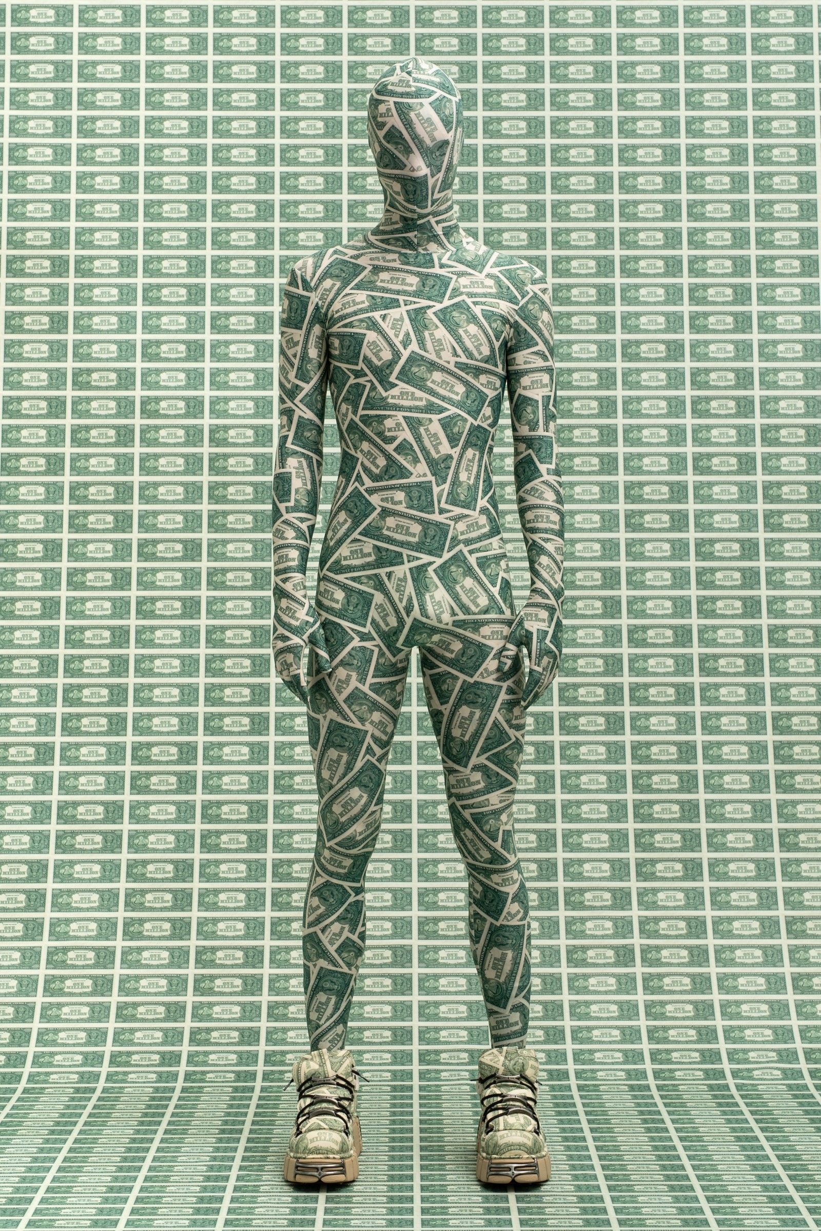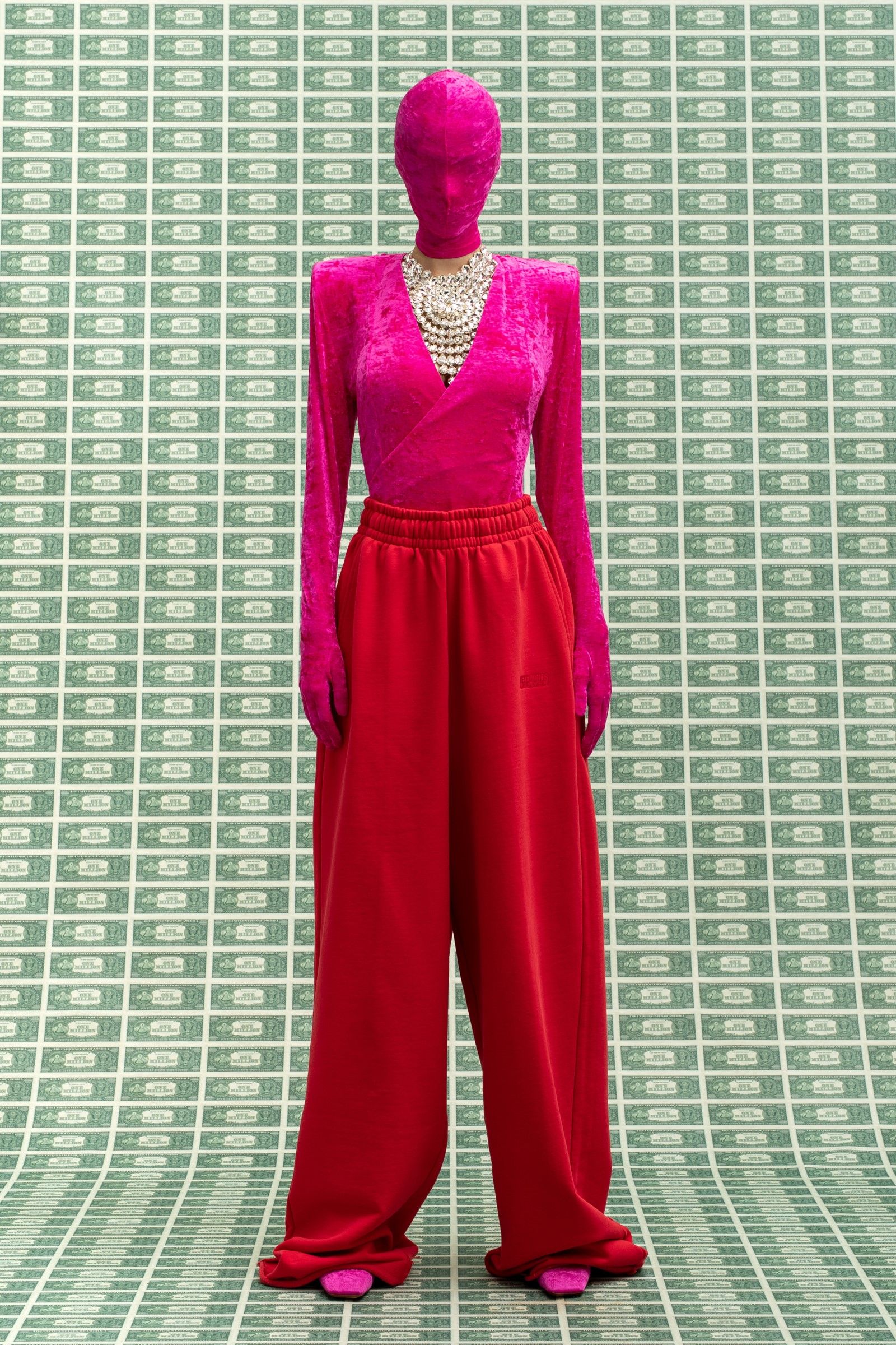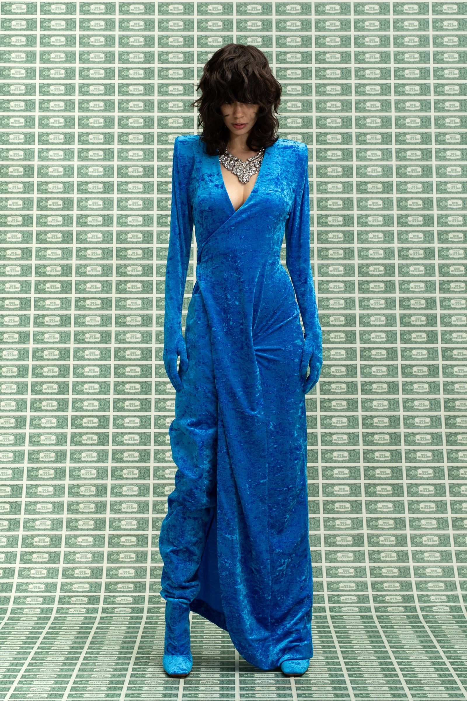 The brand therefore aims to create «high fashion for the era of 5G high speed internet» and therefore contemporary, observant of the most recent phenomena of global culture such as, for example, conspiracy theories, Bitcoin and OnlyFans - but also bearer of a new idea of savoir faire in which technology such as 3D pattern modification, the modularity of clothes and the fusion of different categories together as it happens with trench coats that have the inside of a down jacket. A very high purpose on paper that, however, translated into a lookbook, becomes a kind of compilation of the greatest hits of Demna Gvasalia, former creative director of the brand, not to mention a very cheeky copy of what Balenciaga has come to be this year: the quilted mega t-shirt, the "hourglass" jackets, the tight velour tights or the coats draped and open around the shoulders and the bathrobe-coat are taken straight out from the latest couture show of Balenciaga; many of the other 72 looks, on the other hand, recall Demna's stylistics very closely – although there are exceptions.