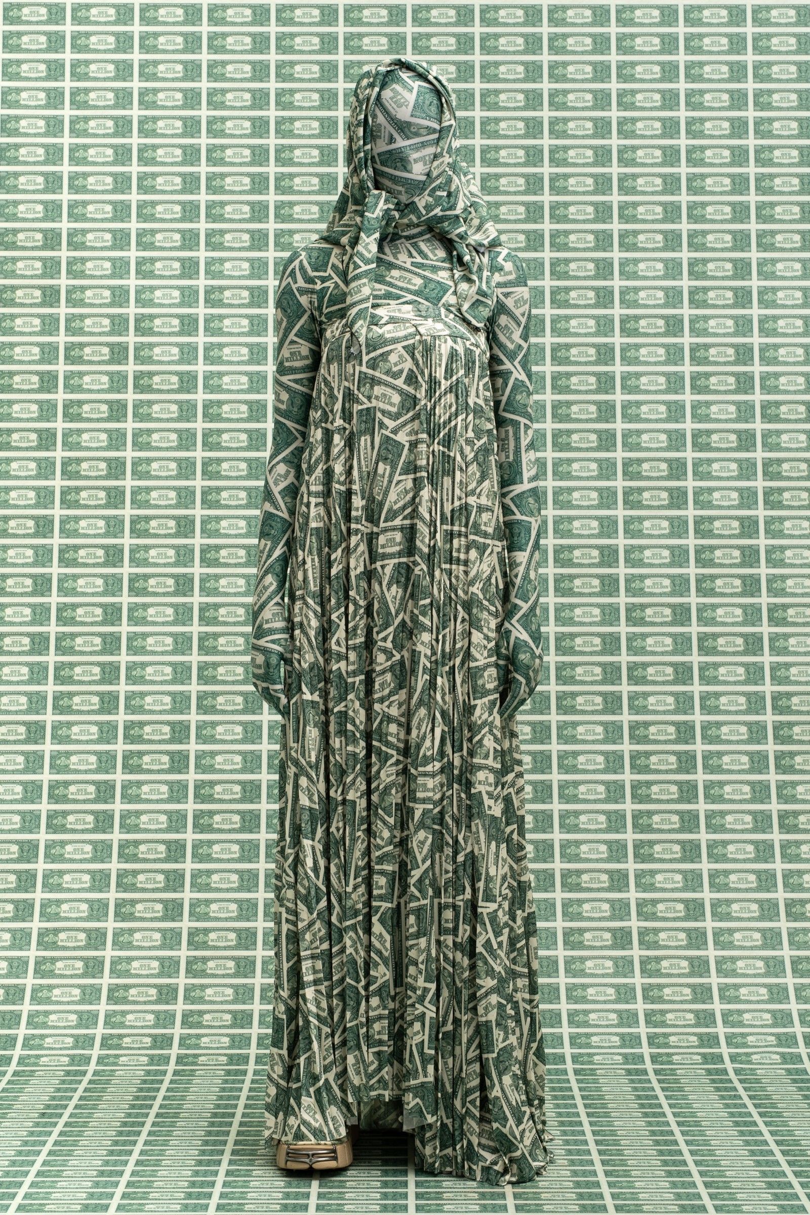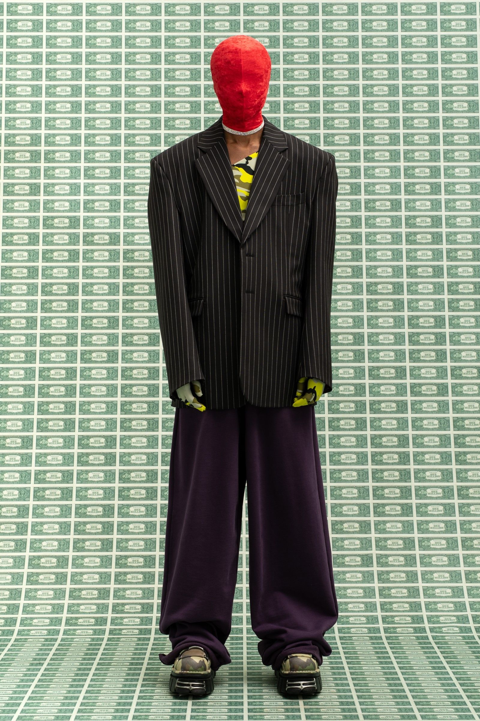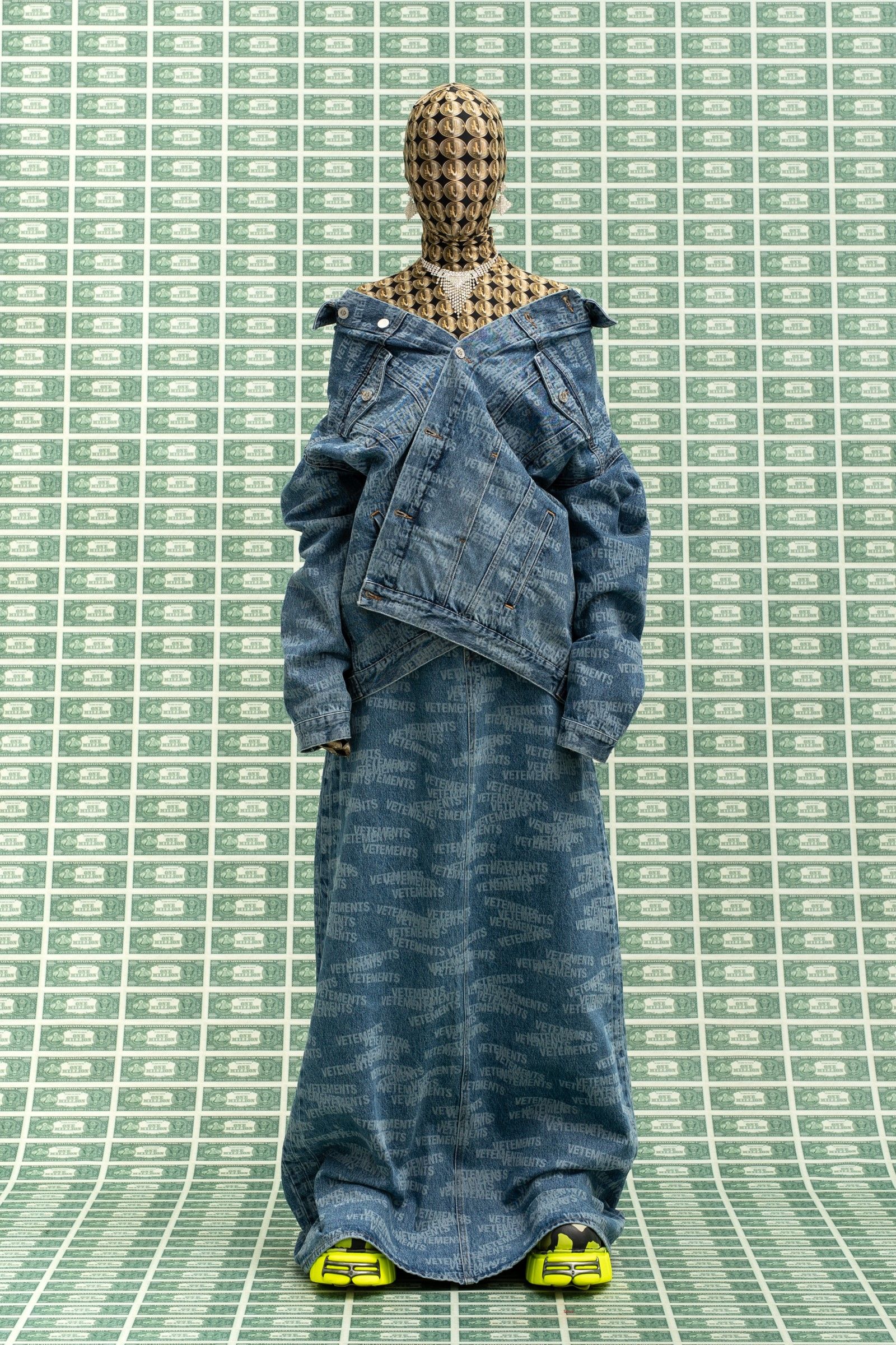Again, the best thing about Vetements' latest FW22 lookbook is the show notes. A file that simulates a Wikipedia page, in which the brand's creative team ponders about «the illusive nature of wealth» in the age of bitcoin and the Internet, where anyone can become a millionaire by chance or bet, where privacy has become so poor as to be defined «today’s true luxury» while conspiracies about aliens, 5G technologies and flat earth spread like a virus. A world that can sound, depending on the point of view, futuristic or dystopian, very far from the era in which «couturiers focused on a new type of clients - industry tycoons and their families, who made money with everything from oil & real estate to butter & chocolate bars» yet strangely similar to it, with the shift that is taking place from the old to the new millionaires and therefore from an old to a new luxury.