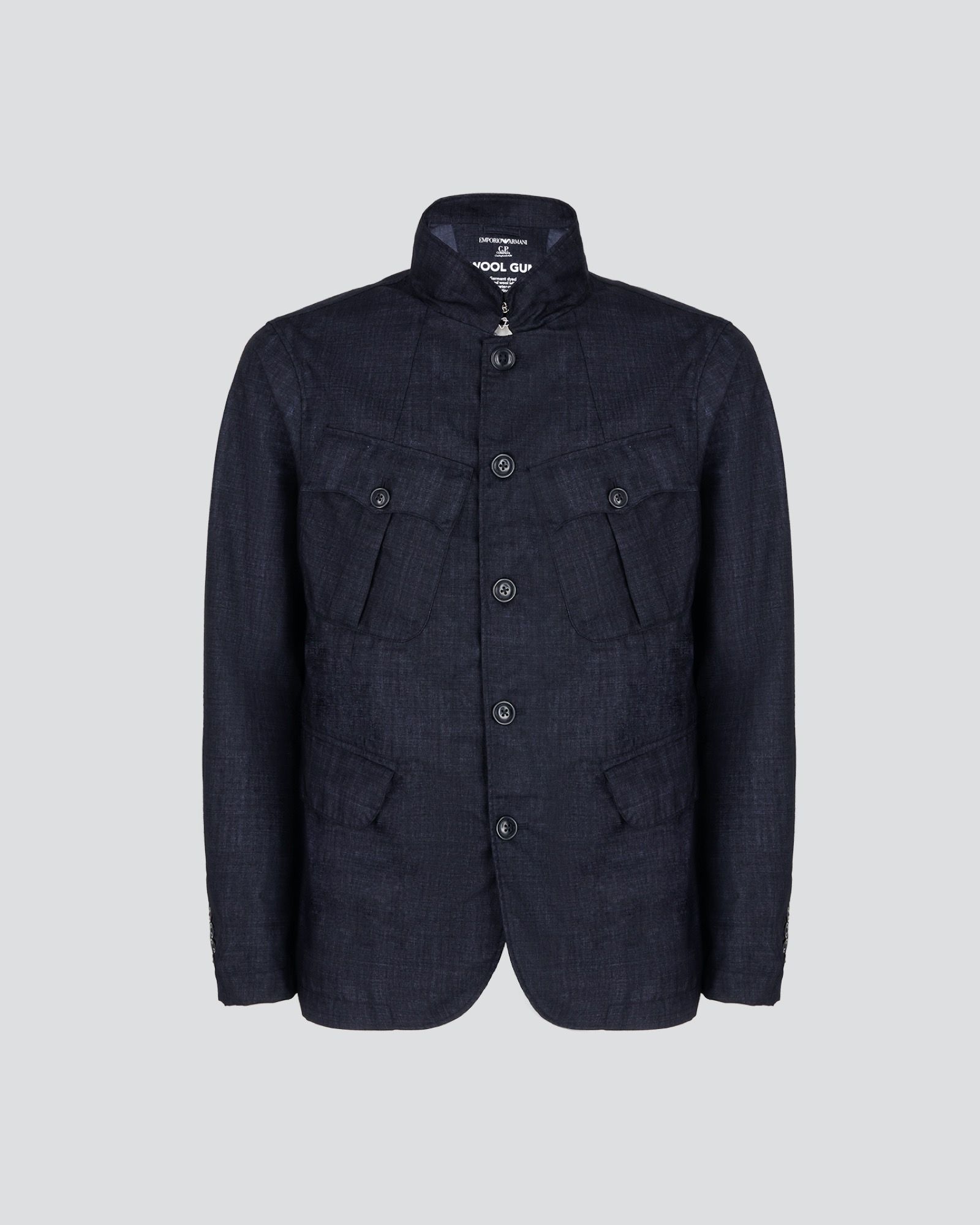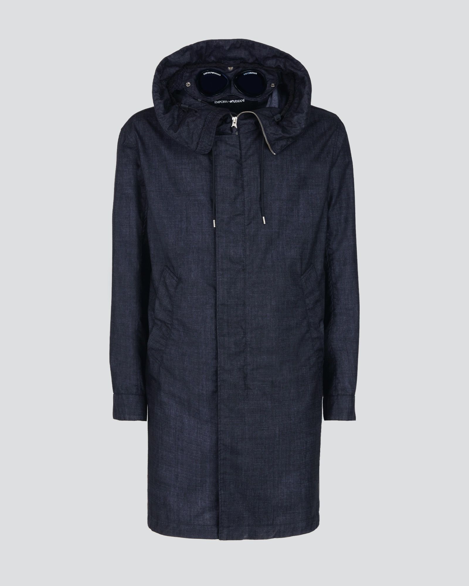 Developed by four hands, the collection represents the DNA of both brands, respecting the heritage but creating innovations and combinations. Emporio's iconic pieces such as the bomber jacket, raincoat and stand-up collar jacket are fused with C.P. Company's signature lens-into-the-cap parkas, blousons and anoraks, while the palettes of deep blues and whites are a full Armani reference. The materials, from WOOL GUM waterproofed wool to A.A.C. laser-cut microfiber, have a performance quality that energizes the rarefied and essential aesthetic.