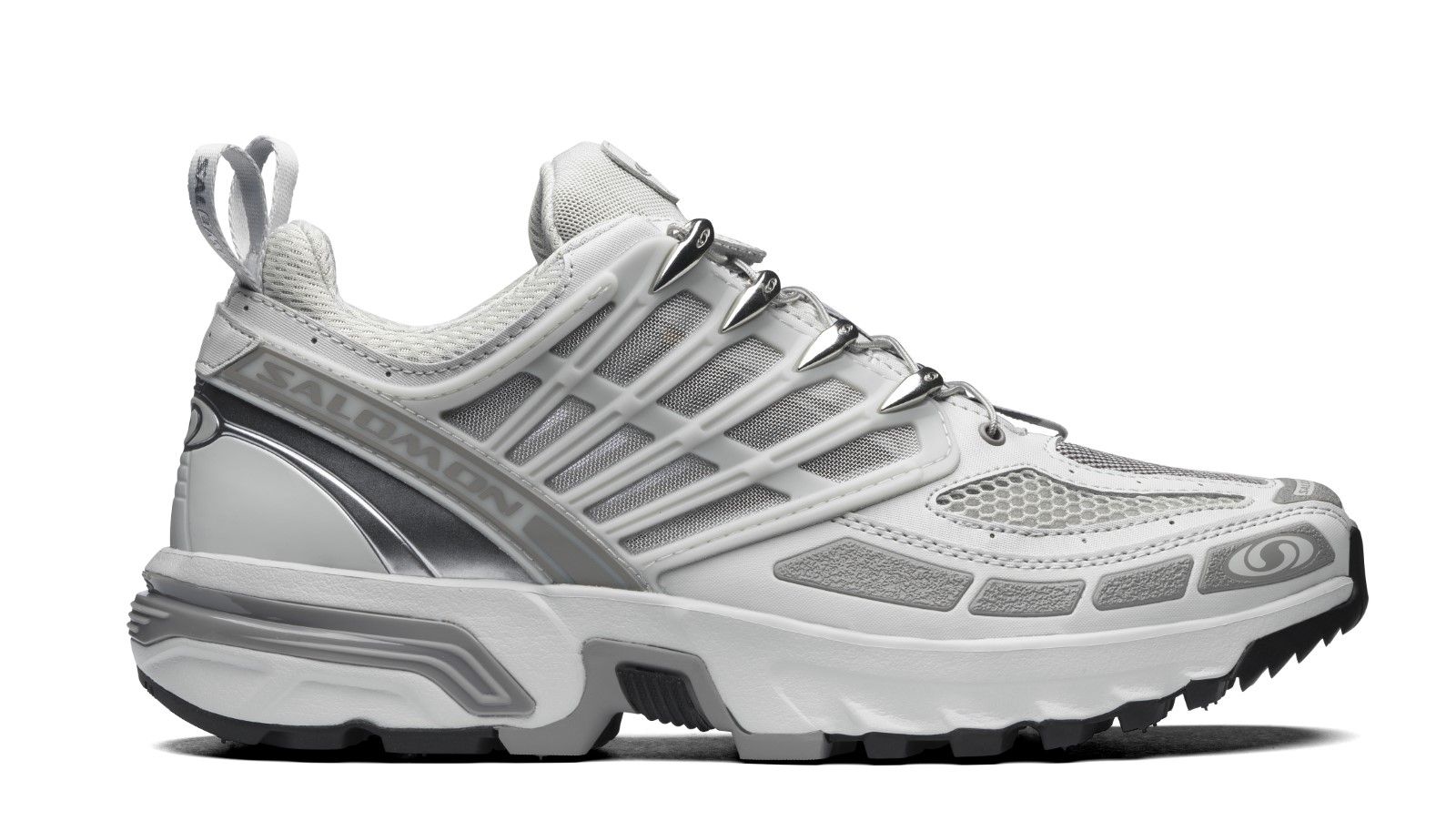 The shoe takes its name from the Agile Chassis System technology, a grip and cushioning system that is one of Salomon's most recognizable signatures and guarantees a unique performance of its sneakers. The silhouette has been updated with a Kurim upper where a series of strategically placed ventilation holes ensure constant ventilation and comfort. The new Metal/Frost Gray/Silver colorway is also enriched by a series of metal sconces that add an extra edge to the design of the shoe, halfway between normcore and aggressiveness.