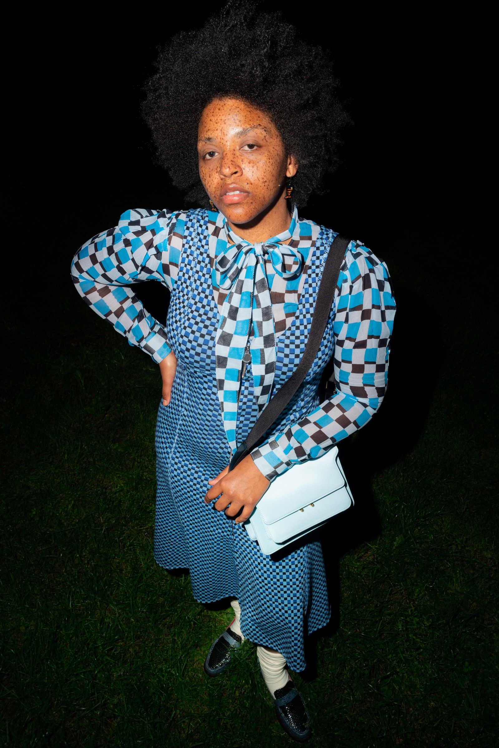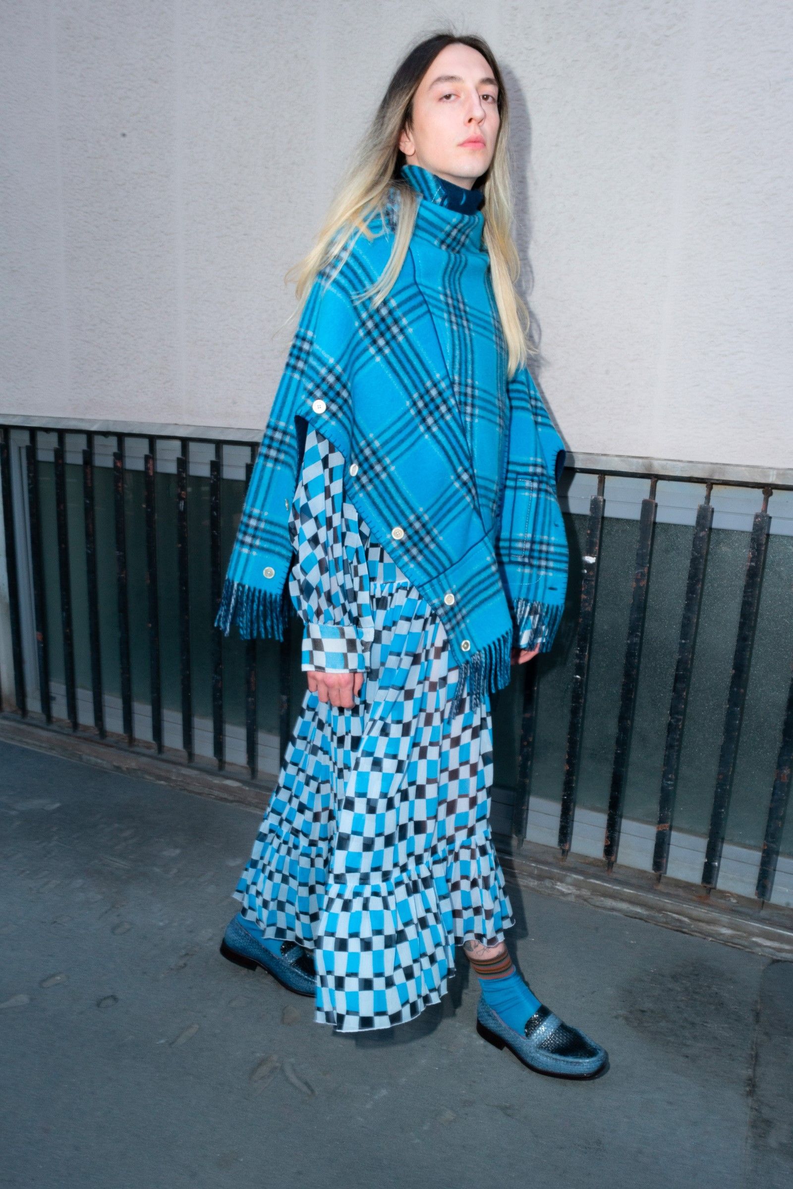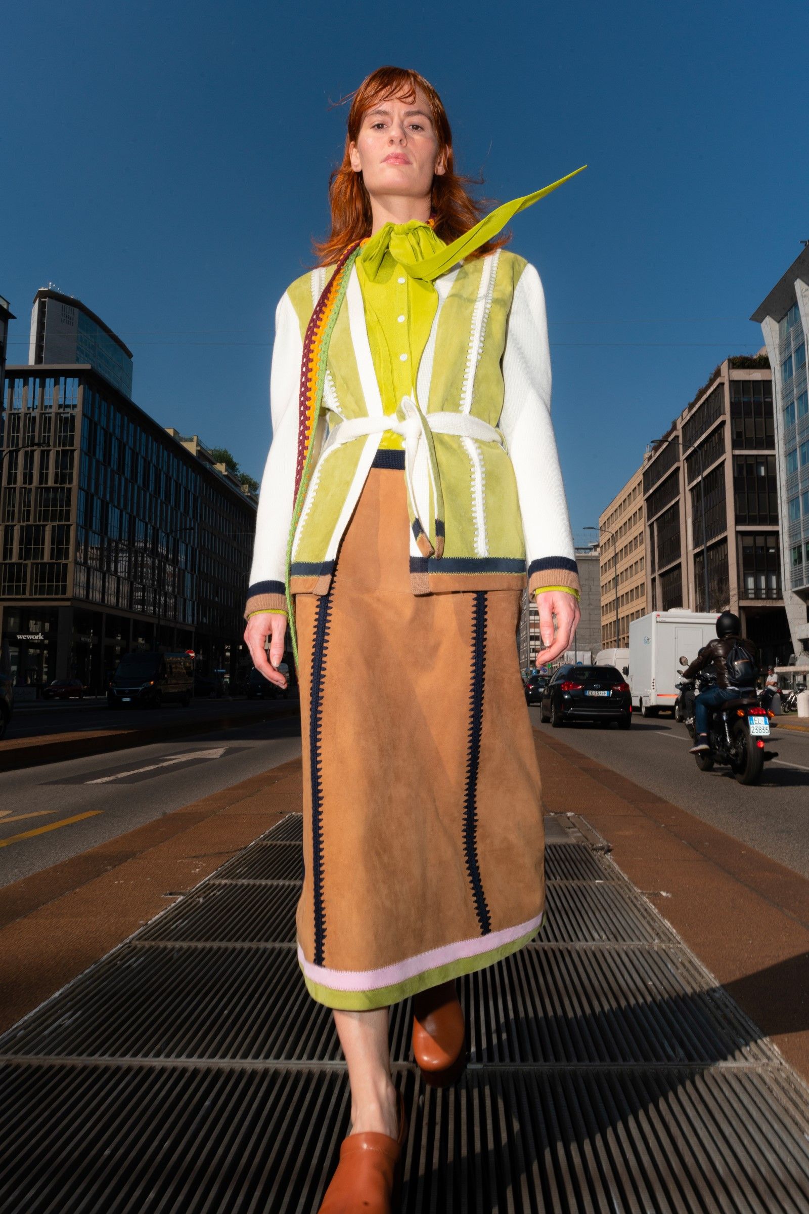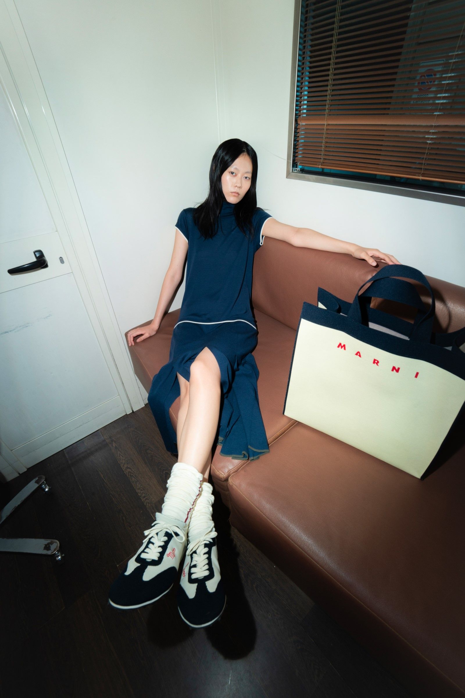 Between accumulations of prints, textures and layering multiplied; loafers and GAT sneakers; tartan, chess and pied-de-poule, Marni's parade of faces winds through Milan and through the pages of the lookbook. Speaking to Vogue, Risso said that he had made the protagonists themselves decide on the location and look of the shots – all to create the collective portrait of a community but also to promote that sense of open work, circularity of experiences and knowledge that is the basis of the work of the creative director and that was elevated to epic levels during the SS22 show of last Milan Fashion Week, perhaps the best seen in the city during the week for sophistication, for concept and for the ability to create an authentic sense of happening.