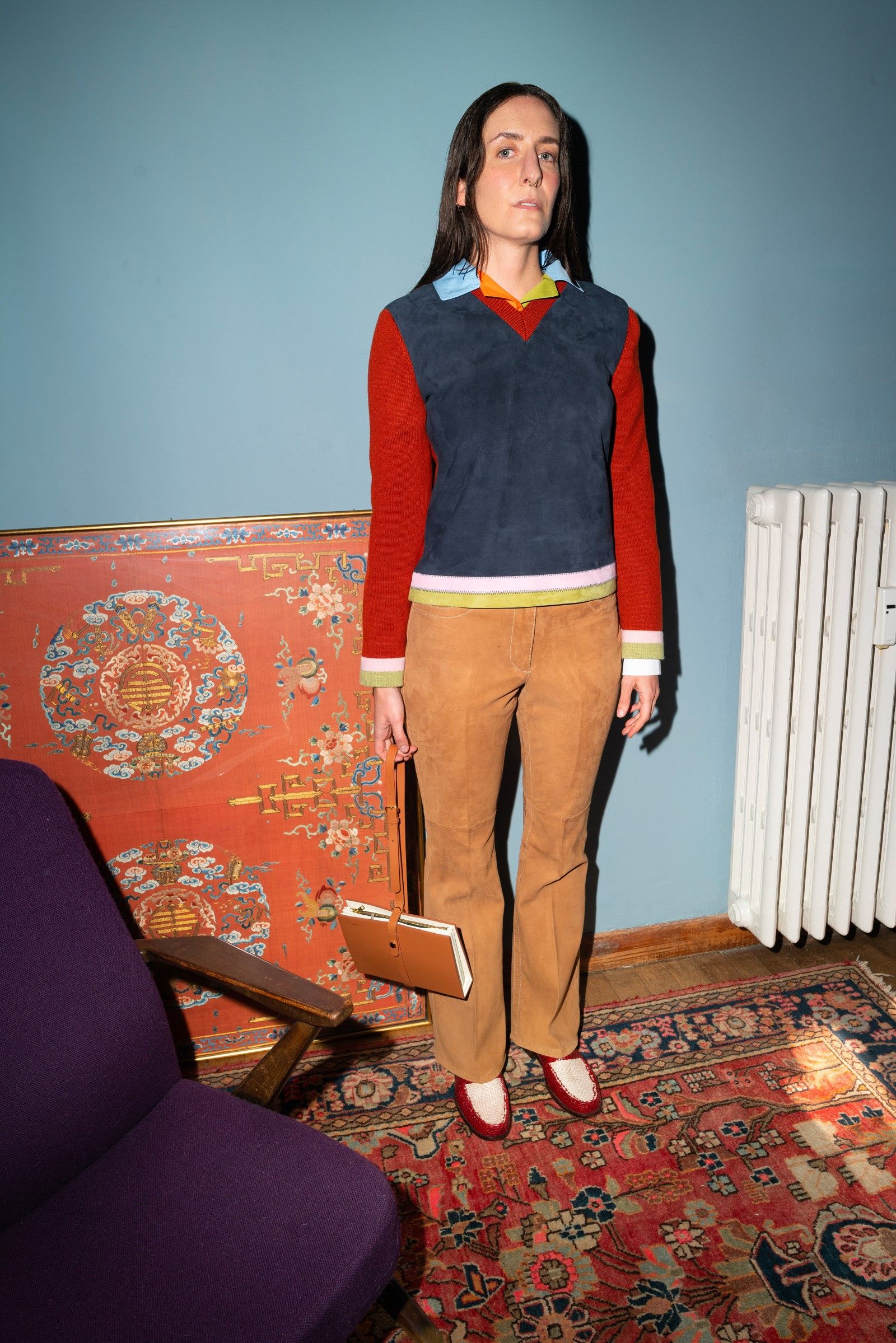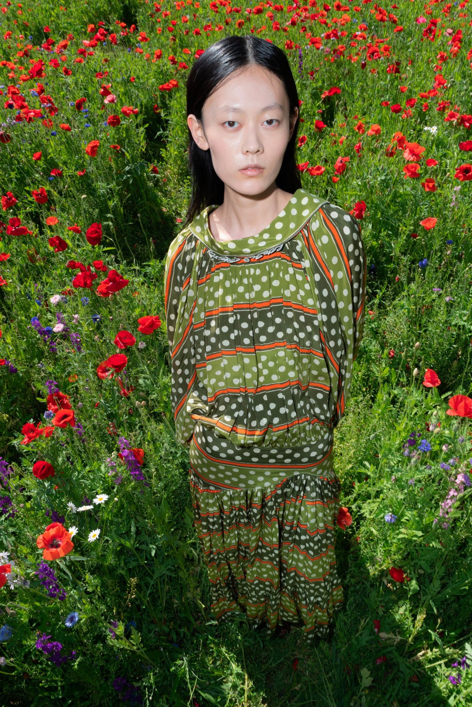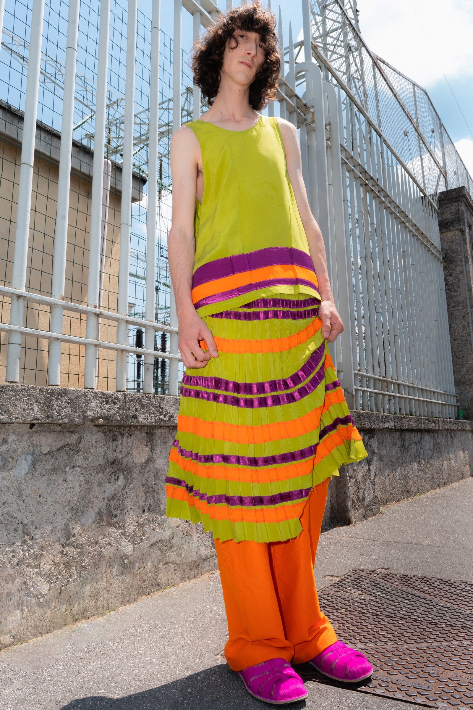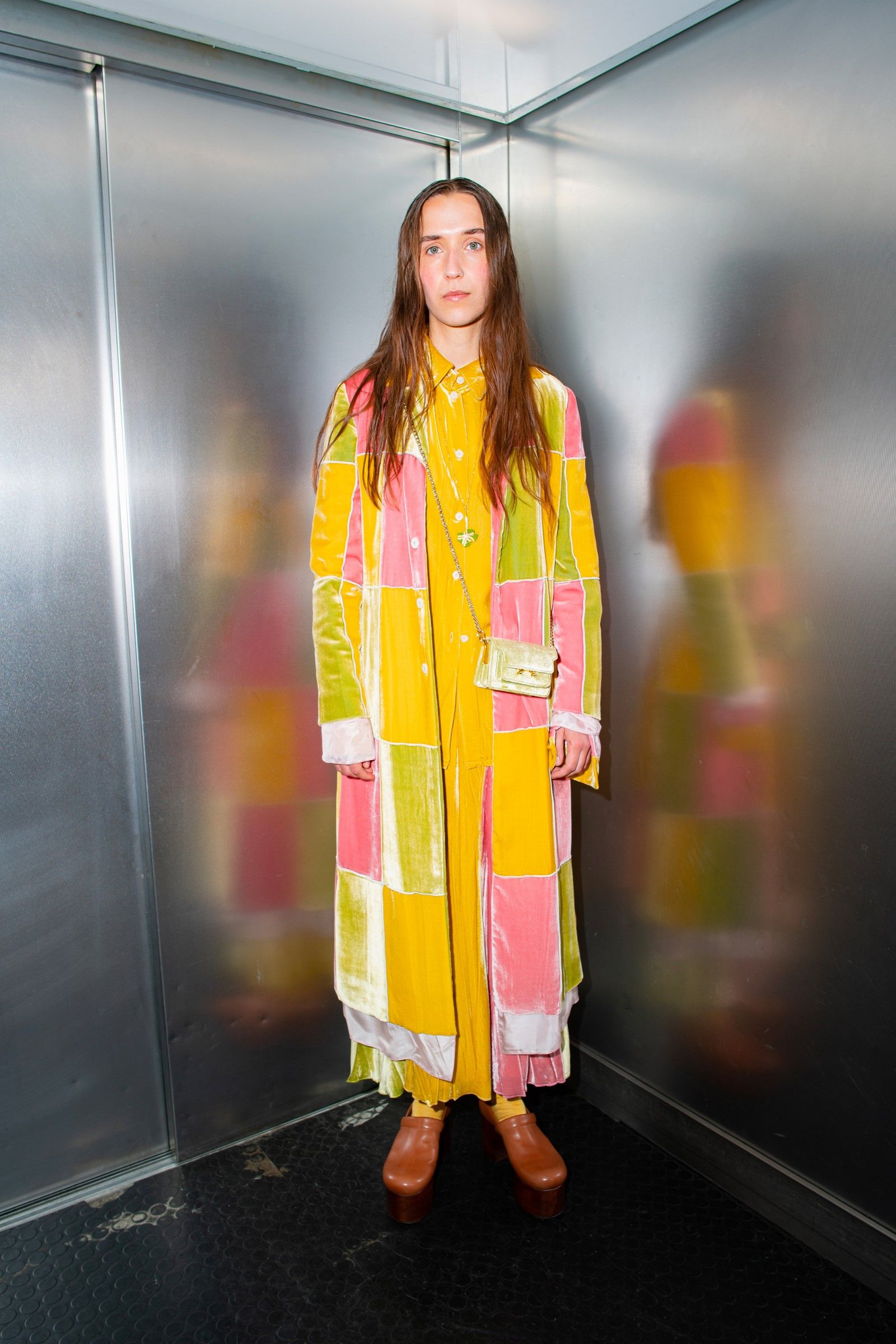 Between accumulations of prints, textures and layering multiplied; loafers and GAT sneakers; tartan, chess and pied-de-poule, Marni's parade of faces winds through Milan and through the pages of the lookbook. Speaking to Vogue, Risso said that he had made the protagonists themselves decide on the location and look of the shots – all to create the collective portrait of a community but also to promote that sense of open work, circularity of experiences and knowledge that is the basis of the work of the creative director and that was elevated to epic levels during the SS22 show of last Milan Fashion Week, perhaps the best seen in the city during the week for sophistication, for concept and for the ability to create an authentic sense of happening.