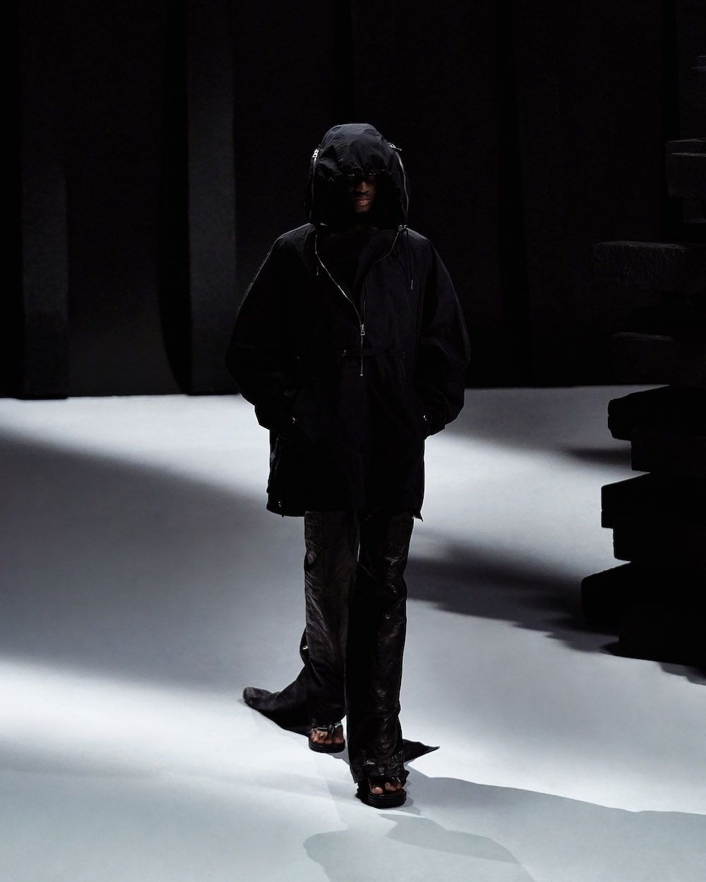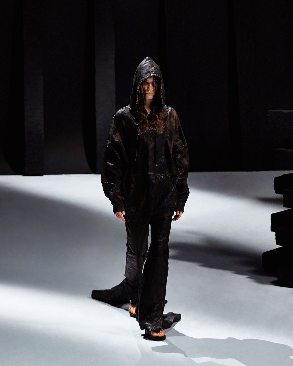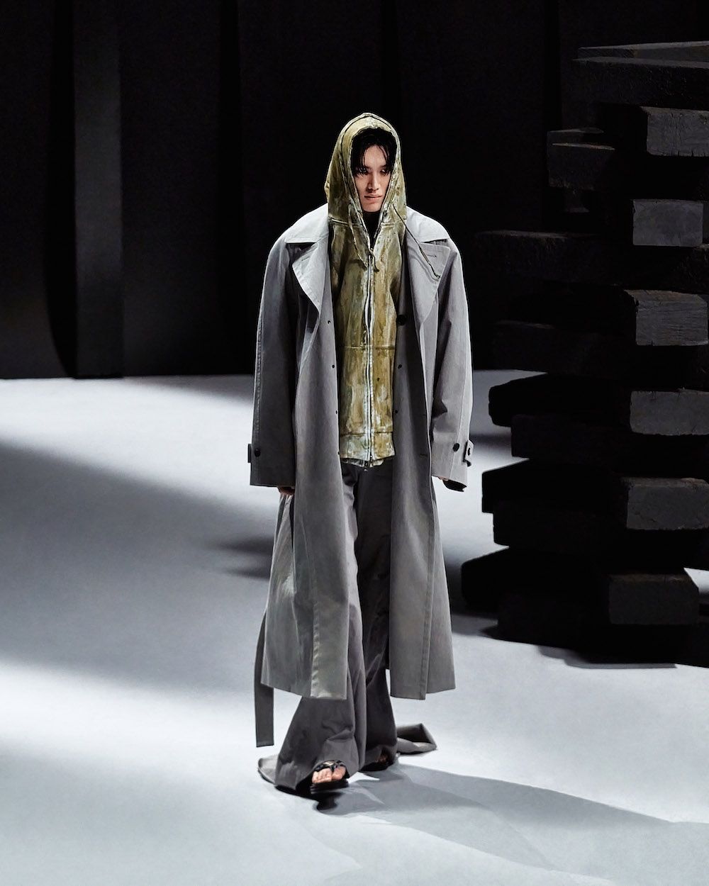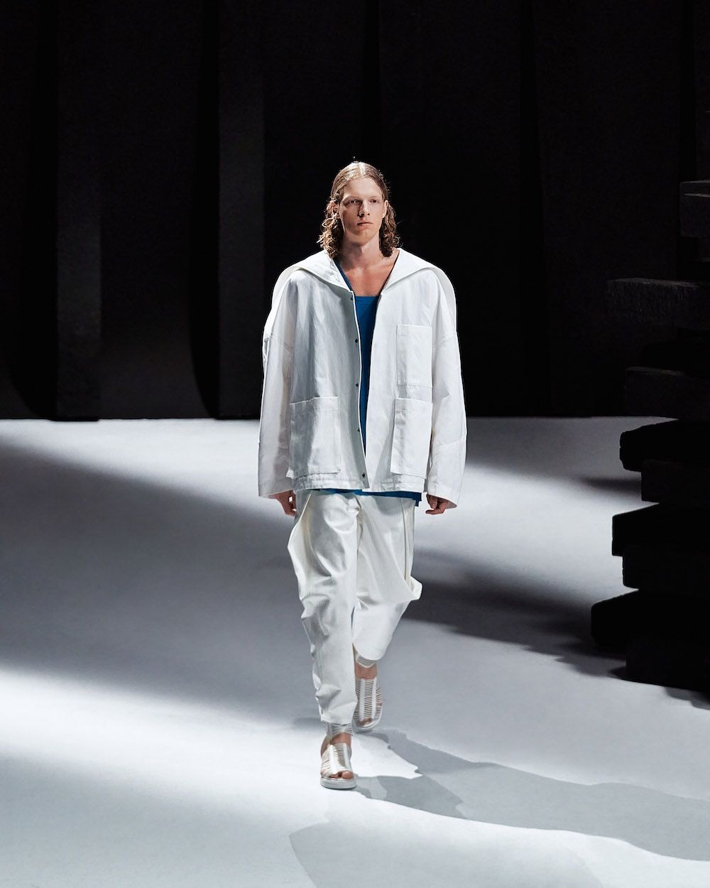 Founded in 1993 in Seoul, Songzio became famous for its total black looks, for having dressed the most important characters in the Korean entertainment industry (from k-pop singers to actors such as Cha Seung-won and Lee Soo-hyuk), as well as the main spoke-person of high fashion menswear in Korea. From the borders of South Korea, the brand began its international expansion during Paris Men's Fashion Week in 2006 and hasn't stopped since. The new SS22 collection, entitled Apparition, is inspired by the vision of a dark night illuminated by a thin white fog and explores the contrasts on which the brand has built its aesthetic: dark and light, order and disorder, East and West.