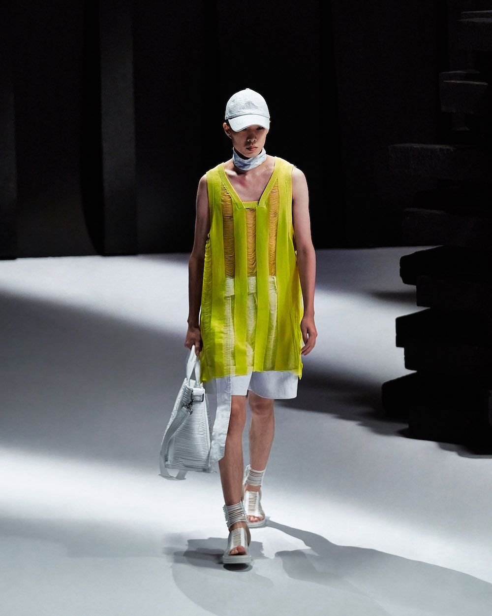 For this collection, new production technologies have been used, such as the idea of applying thin metal threads behind linen and leather, garments are hand-painted, heat-transformable sports fabrics, which change color at the slightest contact with heat. Instead, prints and fabrics were made in the ateliers of the brand's artisans. A collection that speaks of artisan excellence and tradition, with a fixed gaze to the future.