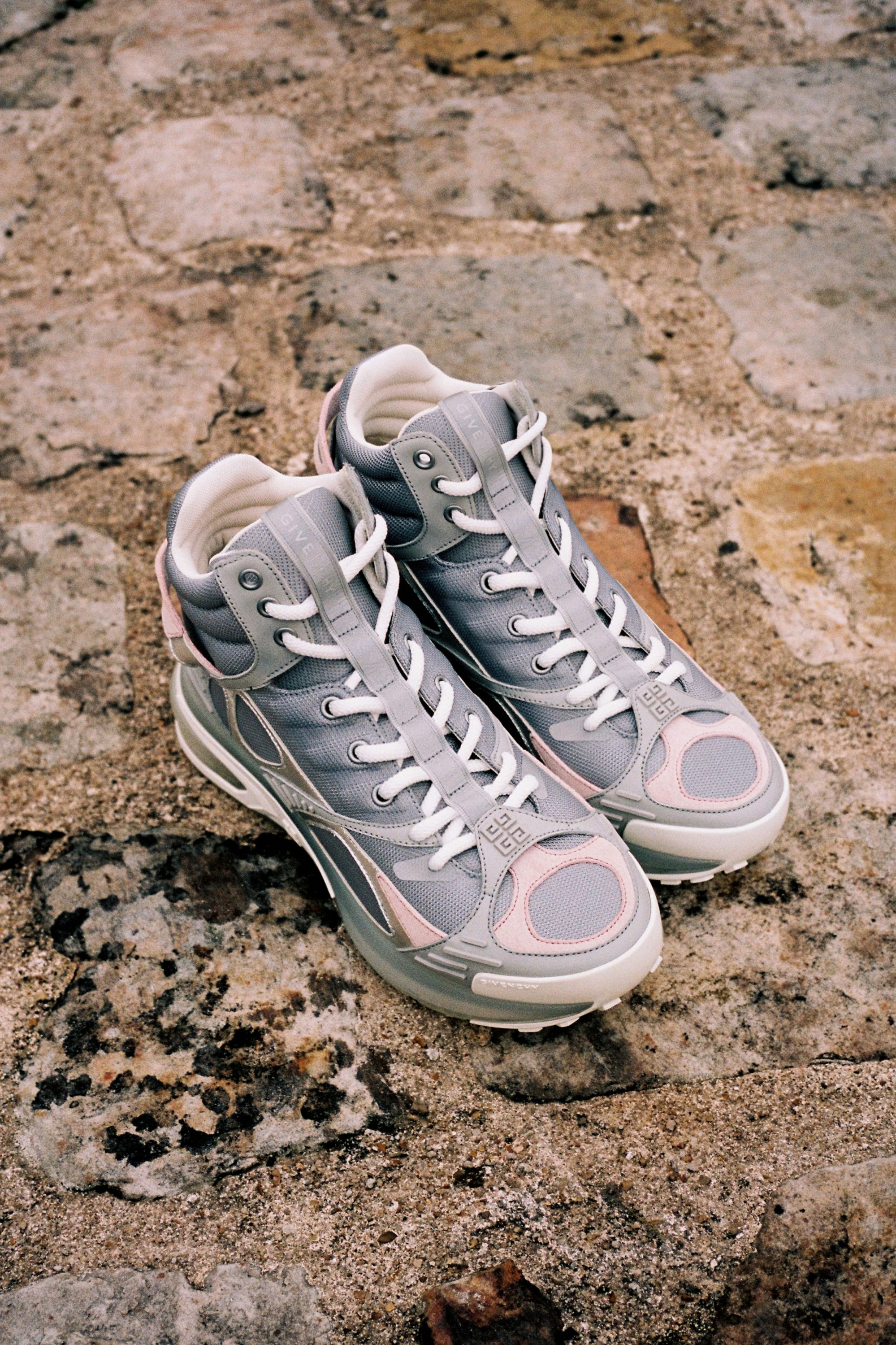 The GIV1 TR has a completely new design in mesh and leather. Available in both high and low versions, this model is a more technical iteration of the classic GIV1 sneaker, characterized by the same iconic sole and colors ranging from cloud gray, graphite, steel blue and black to light gray with yellow fluo reflections. The original GIV1 also returns with exclusive styles, including some made in collaboration with the artist Chito, a white version, all in leather, is decorated with a 4G motif made with spray paint complete with the artist's airbrushed signature on the sneaker. black leather with white profiles, while an e-commerce exclusive version is partially painted black.