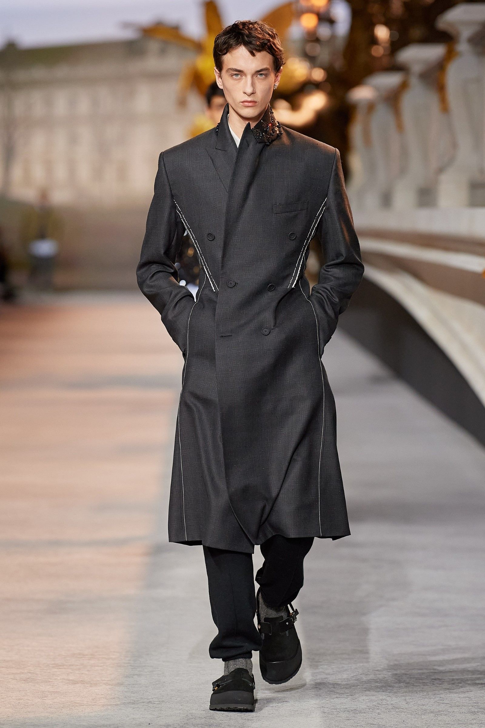 The fashion month that opened in January 2022 with Milan Fashion Week and ended yesterday with Kenzo's FW22 show had an unexpected breakout star in a German model named Viktor Khrom who was spotted in all the flagship shows of the season: Fendi, Prada, Jil Sander, Louis Vuitton, Dior, Hermès. His presence was particularly interesting because Khrom, although at his debut as a model, had already made his appearance in pop culture under the name of Viko63 of native Germany with a live session that on TikTok obtained 1.5 million views in two weeks in September and that today has 3.4 million. The song is a mix of techno and rap named Mucho Gusto, which Khrom sings wearing a red Lacoste sweater, oversized jeans and a glass of wine in his hands, accompanied by the inevitable cigarette. Twitter user @Ahman_patron described the singer by writing: «That's exactly how I imagine the Berlin students of Kreuzberg or Friedrichsain» while @fanex030 commented TikTok: «This is how hipsters who drink wine at the park look like». While the audience debated whether it was cringe or new talent, the live session became a fairly popular meme in Germany, a Halloween disguise, a challenge was launched on TikTok to imitate him and Khrom landed on Spotify with almost 700,000 monthly listeners and 10 million listens for his most popular tracks.