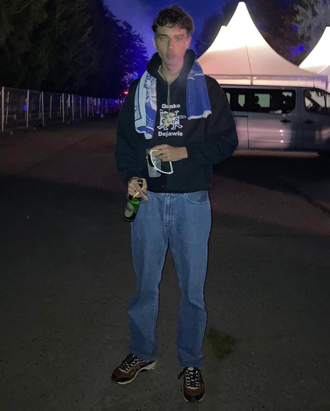 The beginning of Khrom's parable, by the way, vaguely resembles that of Evan Mock who became a viral sensation after Tom Sachs filmed him during a skate session at the age of 18, sending the video to Frank Ocean who further propagated his fame by finally landing him on the Louis Vuitton catwalk. Just as Mock's celebrity status suddenly seemed to appear on the horizon after his catwalk debut, Khrom also had, in terms of modeling, a very intense season that came after the announcement of a national tour in Germany next April. Meanwhile, before the actual fame, there is the next best thing: virality – obtained for something else, just as it was for Mock, through the repost of another celebrity, in this case the rapper with 2.6 million followers Bonez MC. The opinion around him is divided: in yet another tweet commenting on his success a user shows the screen of two opposite comments on Youtube, one that marks the live session as «absolute scheiße» (we don't need to translate that) and another one defines it «ein Masterwerk». The point is precisely this: the song is catchy, a no brainer to listen to unpretentiously – but what went viral was not the song, but the singer and his character.
