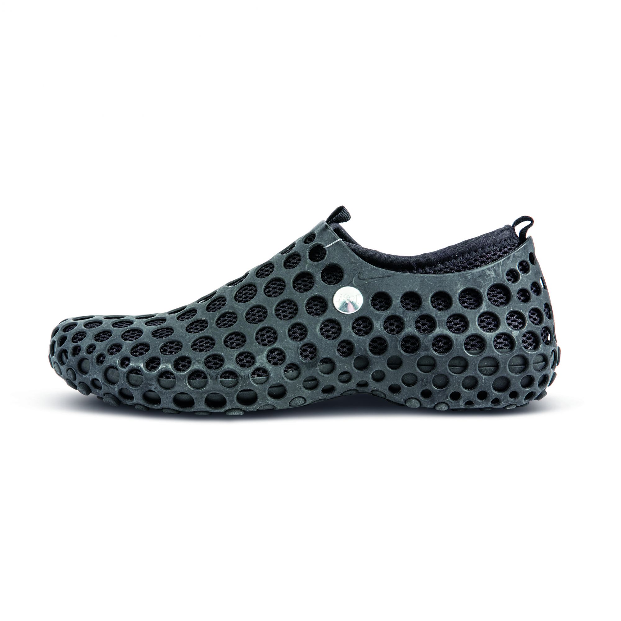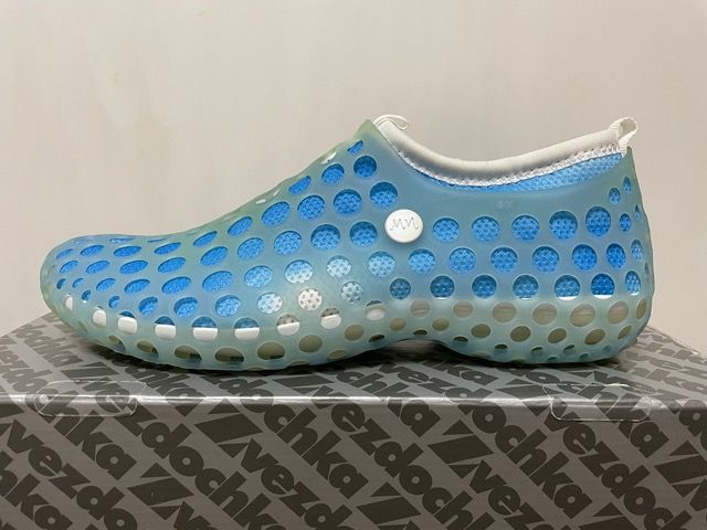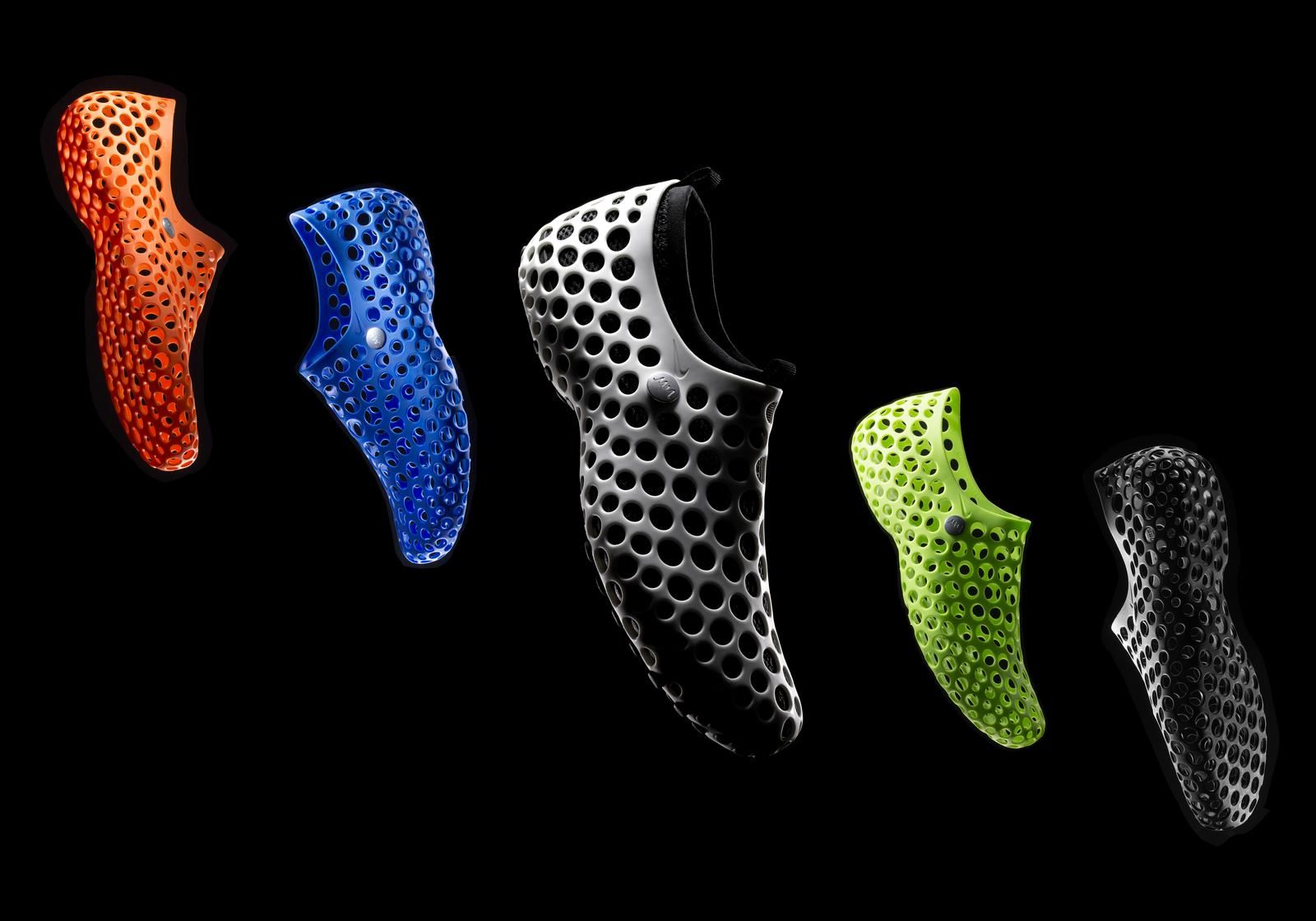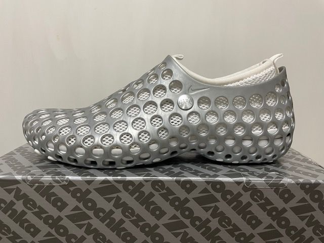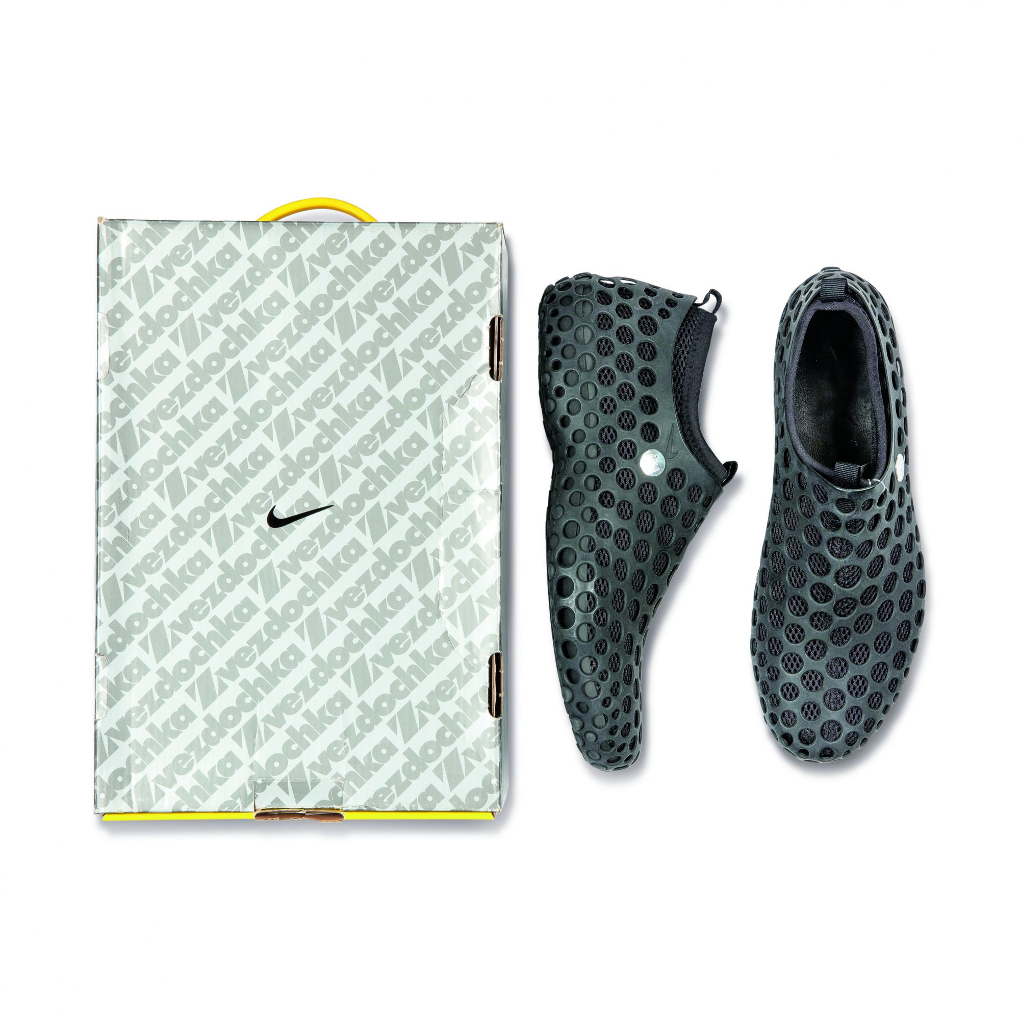 The Zvezdochka was designed with a complex 3D printed modular shape modeled entirely on a computer, consisting of a flexible monobloc TPU upper, combined with a replaceable mesh sock, and a rubber sockliner equipped with grooves to bind the two components together. The interior sockliner also features a Nike Zoom Air unit embedded in the heel to improve cushioning. Moreover, thanks to its modular structure, the shoe is convertible for various needs and environments.