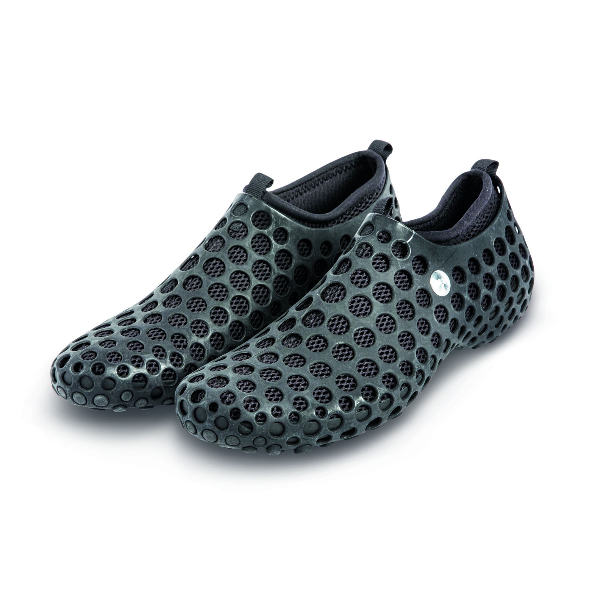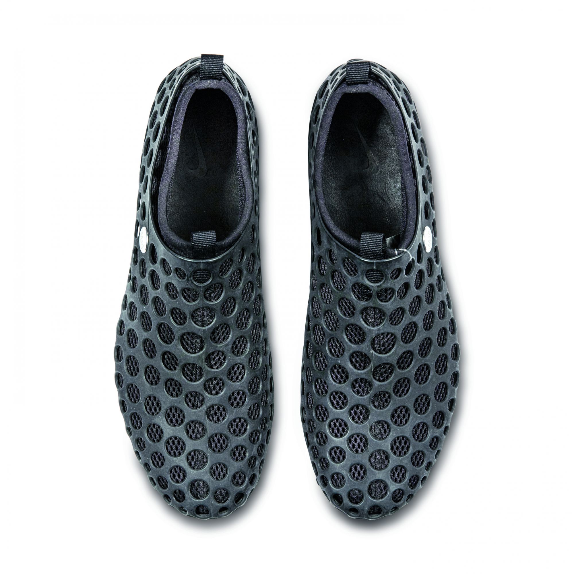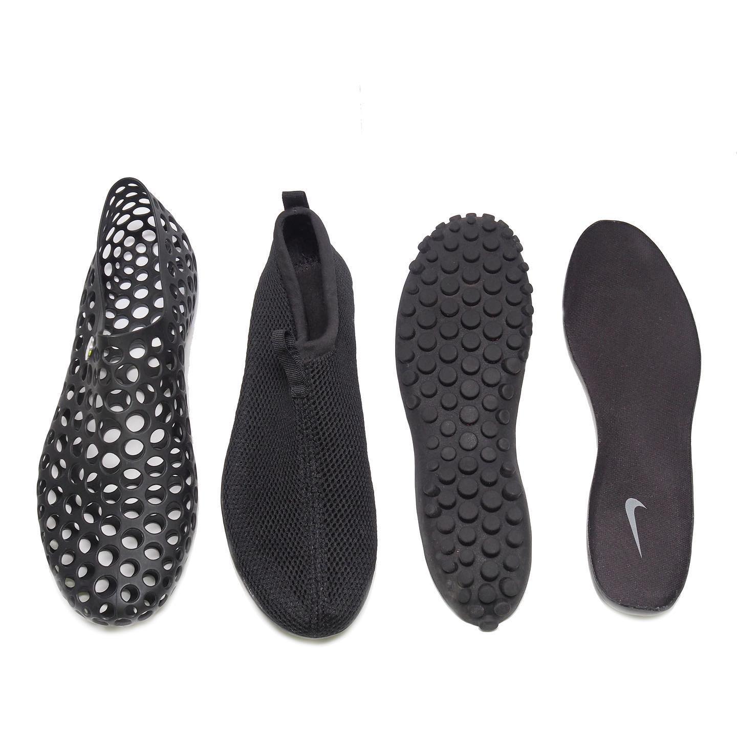 The Zvezdochka was designed with a complex 3D printed modular shape modeled entirely on a computer, consisting of a flexible monobloc TPU upper, combined with a replaceable mesh sock, and a rubber sockliner equipped with grooves to bind the two components together. The interior sockliner also features a Nike Zoom Air unit embedded in the heel to improve cushioning. Moreover, thanks to its modular structure, the shoe is convertible for various needs and environments.
